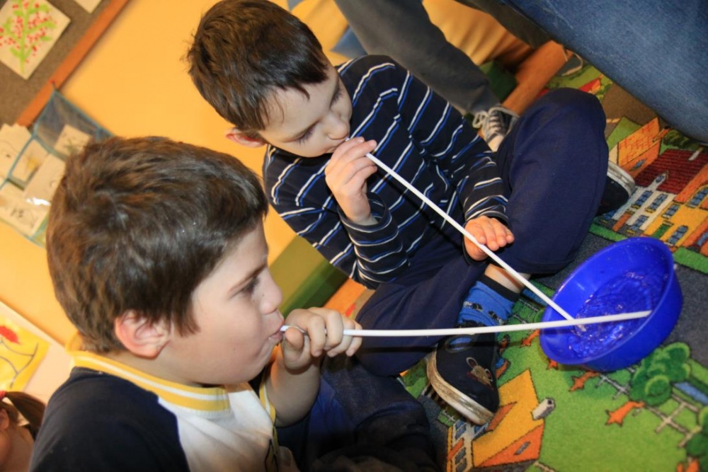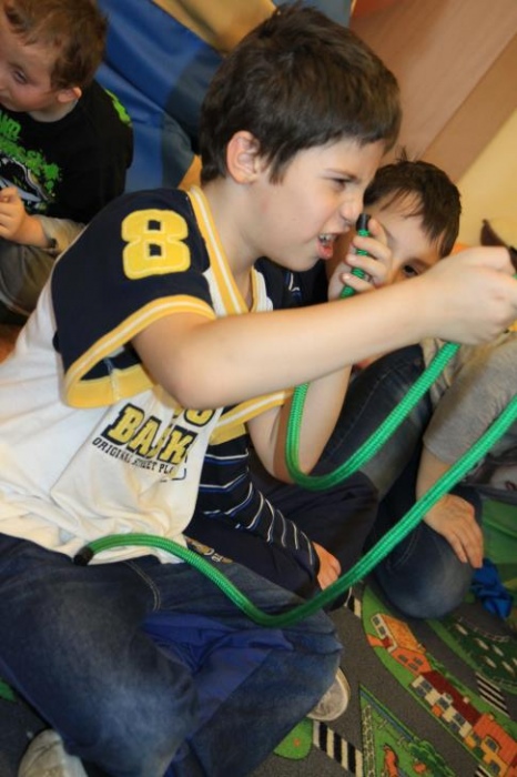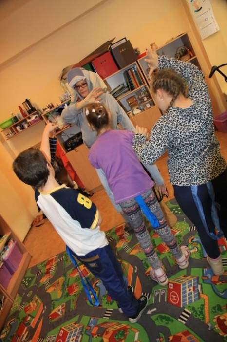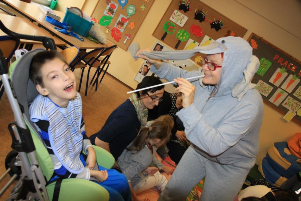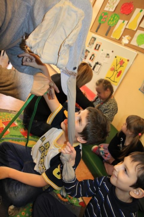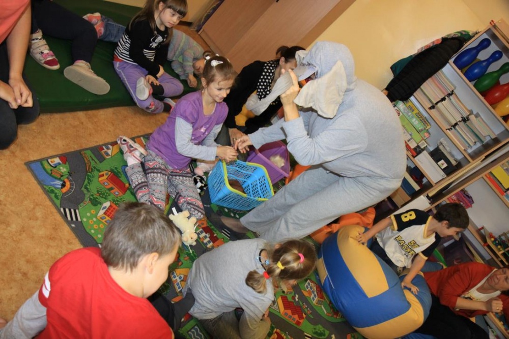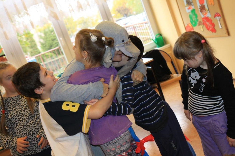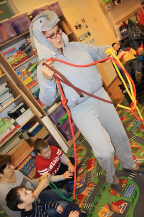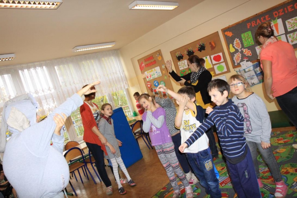 Wizyta w naszej szkole „Słonia Trąbalskiego” związana była oczywiście z Kampanią Społeczną „Cała Polska czyta dzieciom”. W miniony piątek pierwszoklasiści i uczniowie klas drugich spotkali się razem na wspólnym czytaniu. „Czarodziejski dzwonek” zgromadził dzieci przy wierszu J. Tuwima „Słoń Trąbalski”. Po wysłuchaniu wiersza dzieci dostały pierwsze zadanie. Wśród zwierząt - zabawek miały znaleźć bohatera wiersza, a następnie odpowiednio posegregować pluszaki, dzieląc na zwierzęta wiejskie i dzikie. Słoń Trąbalski całe szczęście nie zapomniał o spotkaniu - przyjechał, ale imion dzieci niestety już nie pamiętał... Uczniowie pomagali Słoniowi na różne sposoby odzyskać pamięć: było wiązanie supełka, „dmuchanie miechem” (chustą Klanzy), oblewanie wodą. Wspólny taniec „Czterech słoni, zielonych słoni” i masażyk pleców z „idącymi słoniami” nieco poprawił słoniową pamięć, a wszystkim sprawił wiele radości, o czym możemy się przekonać oglądając galerię zdjęciową.