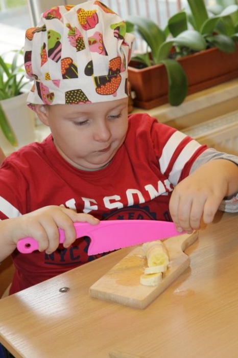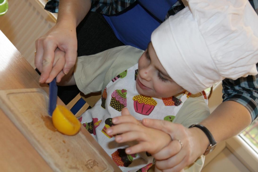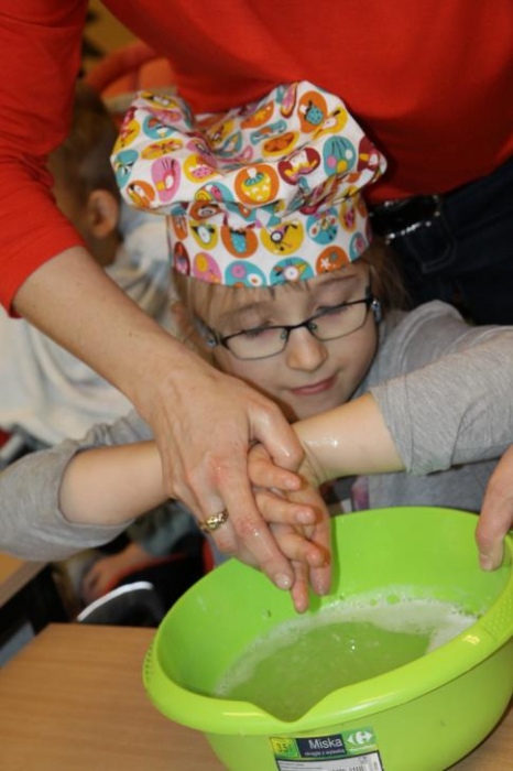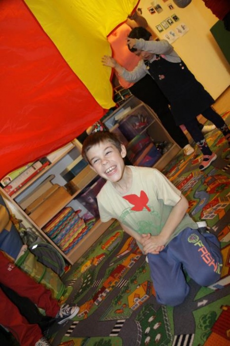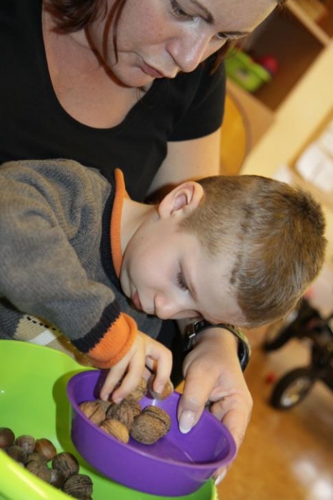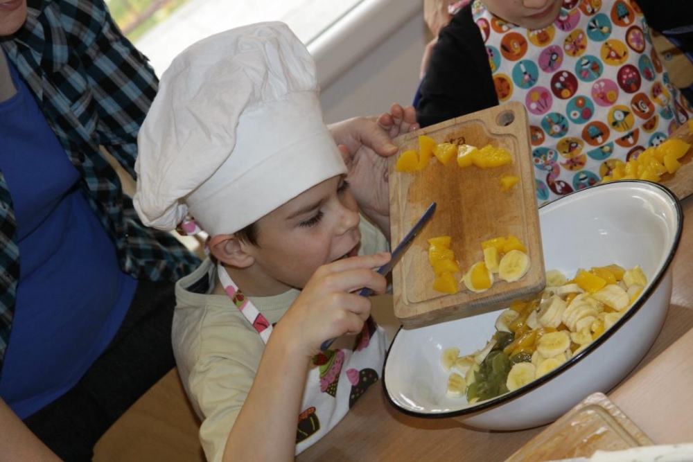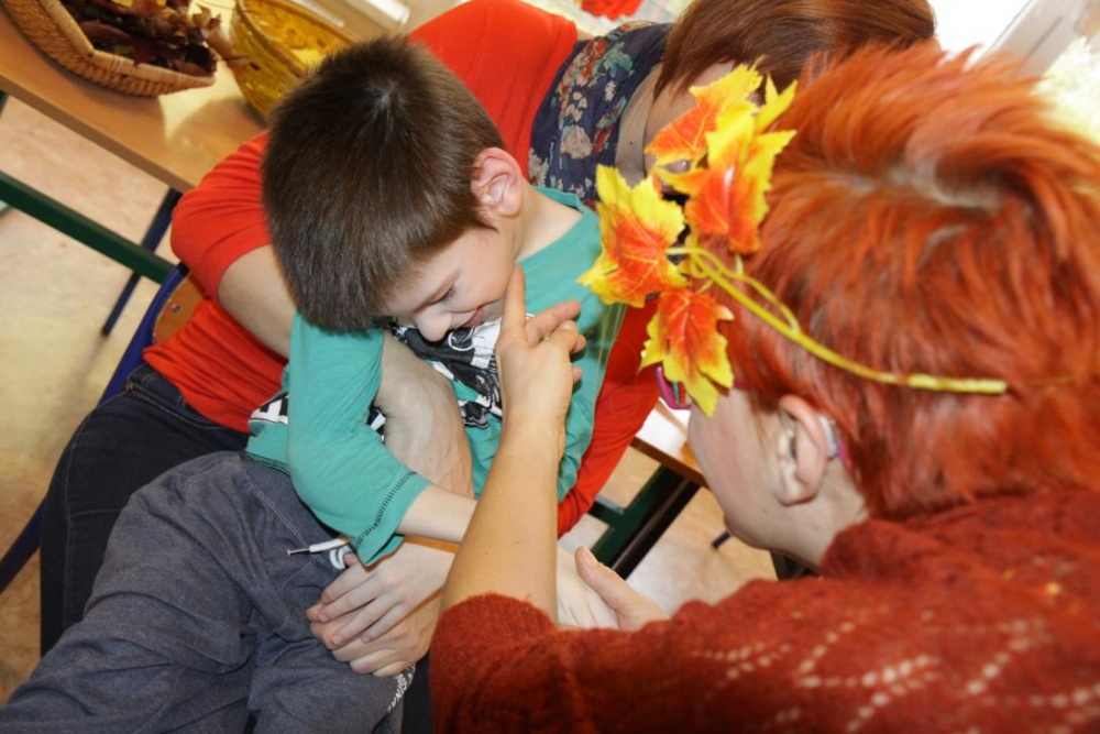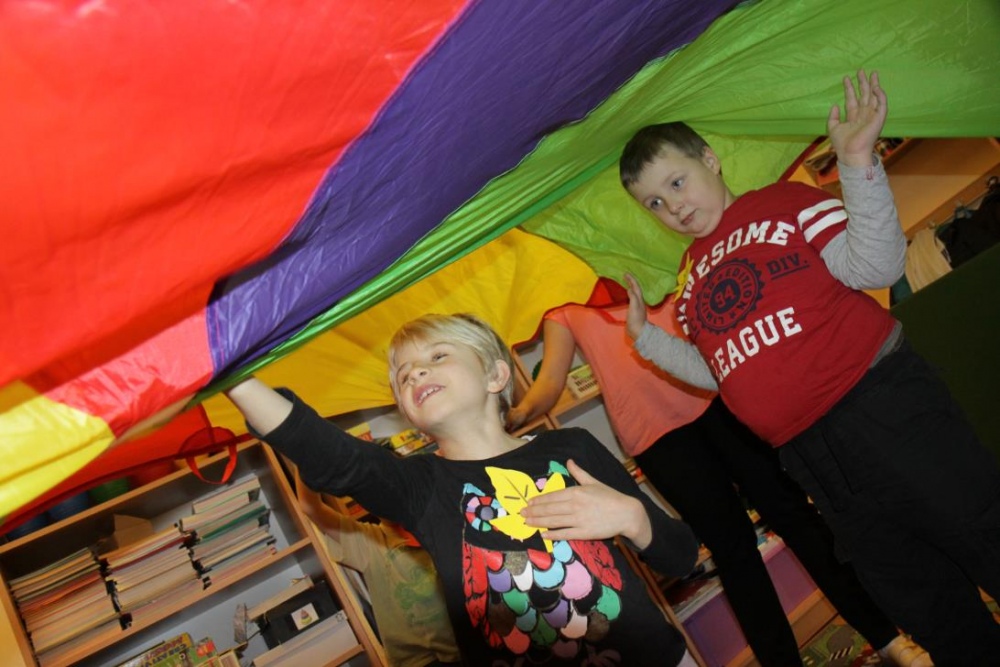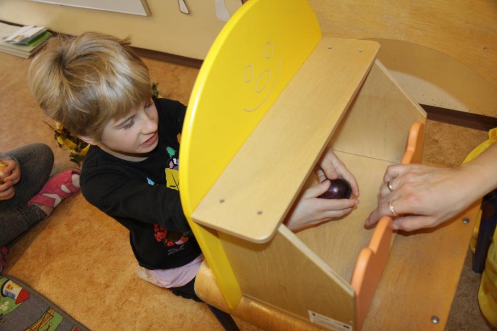 "Idzie jesień…”- śpiewem Przedszkolaki, pierwszoklasiści i drugoklasiści (kl. II bic) rozpoczęły konkurs z cyku "Cztery pory roku - JESIEŃ”. Dotknięcie różdżki i wspólnie wypowiedziane zaklęcie przemieniło wszystkie dzieci w kolorowe listki. Listki te wirowały, skakały, szumiały wraz z chustą Klanzy. Uczniowie mieli do wykonania również szereg zadań: układały liście według wielkości, segregowały i nazywały różne dary jesieni, pokonywały równoważnię "kłujące jeżyki". Ciekawa okazała się konkurencja ze „Zgaduj Zgadulą” z którą dzieci rozpoznawały dotykiem dłoni owoce. Jednak chyba najwięcej radości sprawiło dzieciom własnoręczne przygotowanie sałatki owocowej.