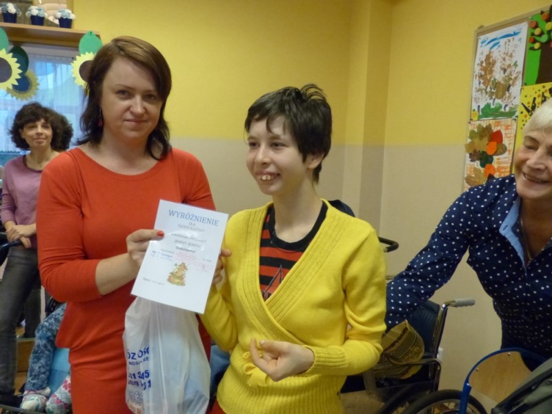 Reszta uczestników otrzymała dyplomy i nagrody za udział w konkursie: Jakub Andrzejewski - Kwade, Patryk Szymiczek, Filip Kuczera, Wojciech Liszka, Daniel Podleśny, Oliwia Matyja, Patryk Kołacz, Sebastian Holona, Patryk Zając, Patrycja Chromik, Dominik Traczyk, Adam Kus, Paulina Jeszka, Justyna Bunalska z WTZ nr 1.