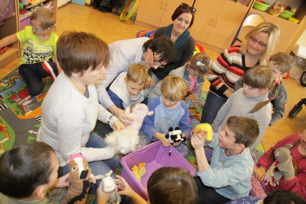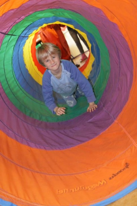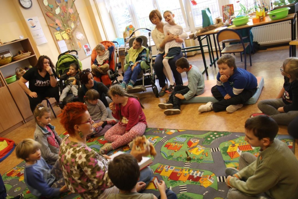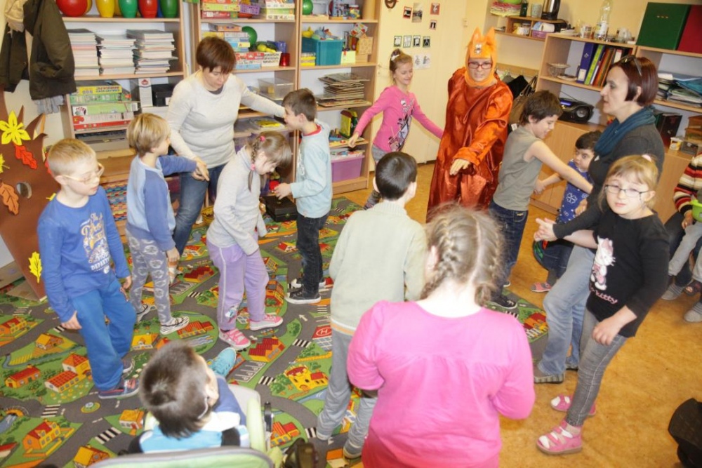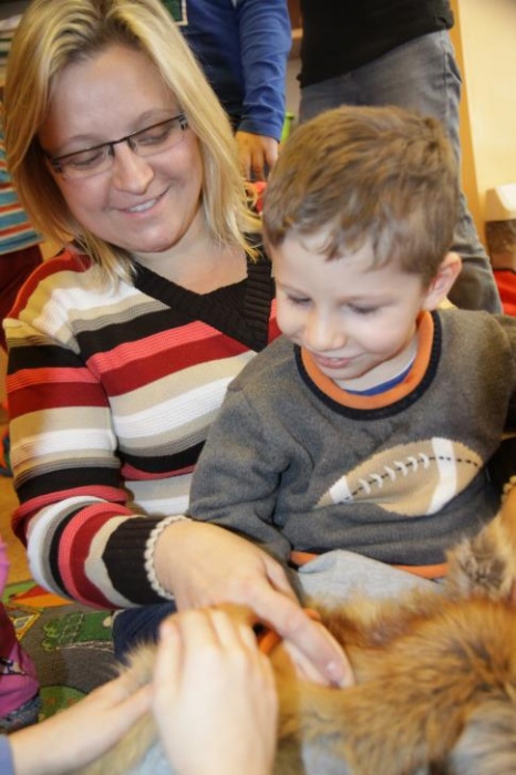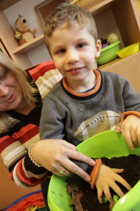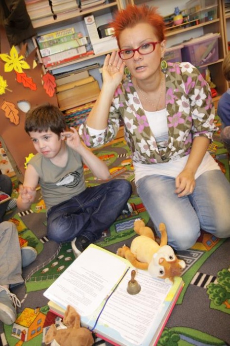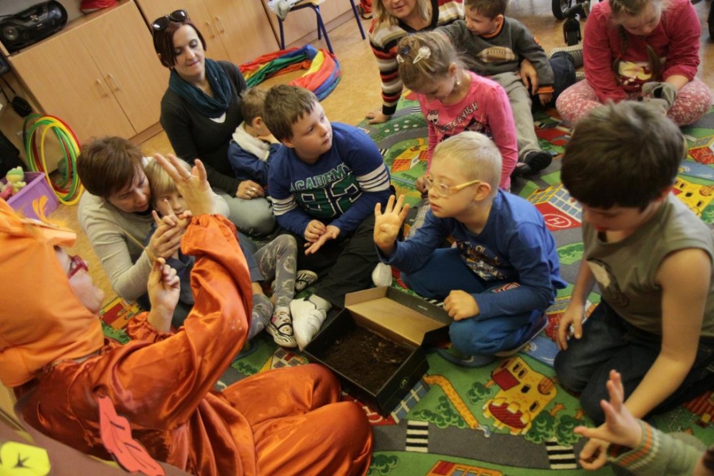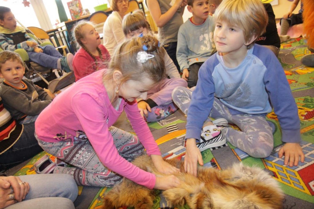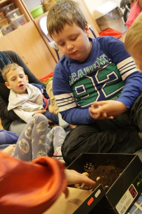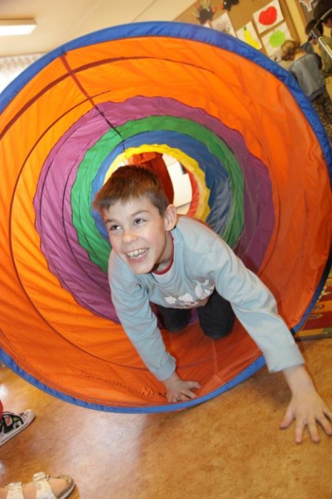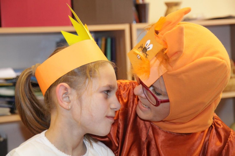 Przedszkolaki i uczniowie klas I i II w minioną środę pomagały robić zapasy wiewiórce Basi. Najpierw z zapartym tchem wysłuchały pouczającej bajki, a następnie wzięły się do pracy. Chętnie pomagały Basi w zakopywaniu zapasów w ziemi (orzechów, grzybów, żołędzi), utrwalając przy tym liczenie w zakresie 5. Był czas także na zabawę przy muzyce „Wiewióreczka mała...”. Jednak najwięcej radości sprawiła zabawa w tunelu - wielkiej dziupli, no i oczywiście poczęstunek, tym razem urodzinowowy, gdyż w tym dniu swoje 9 urodzinki obchodziła nasza koleżanka z kl. II b - Kinga.