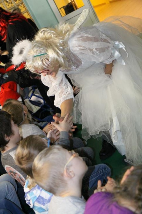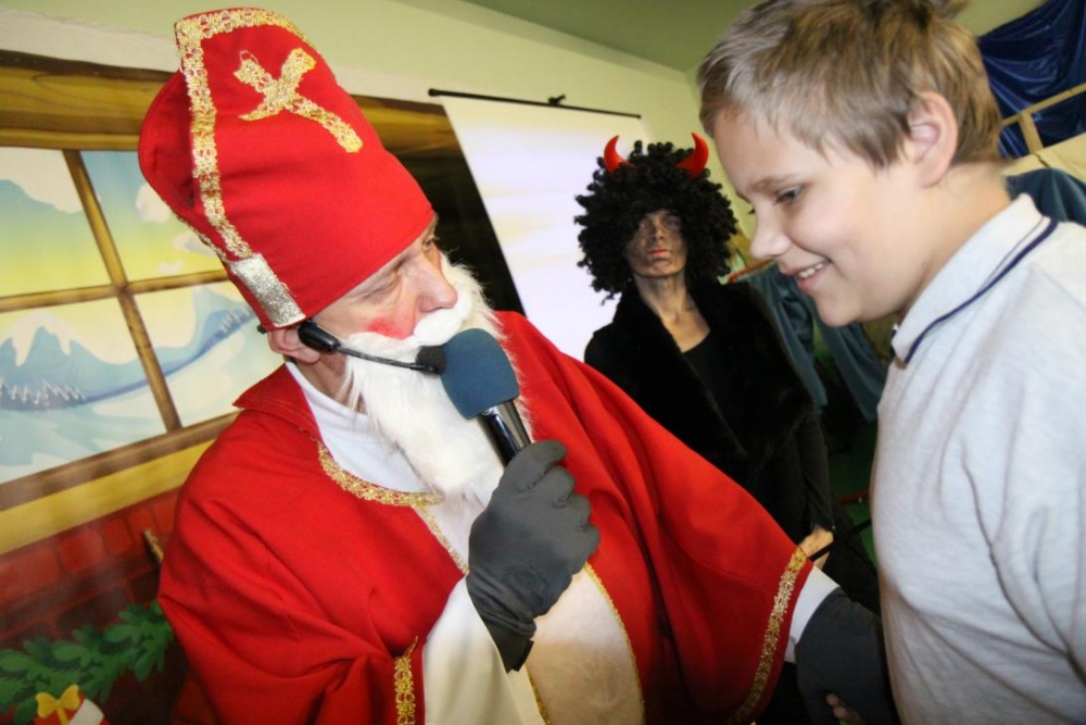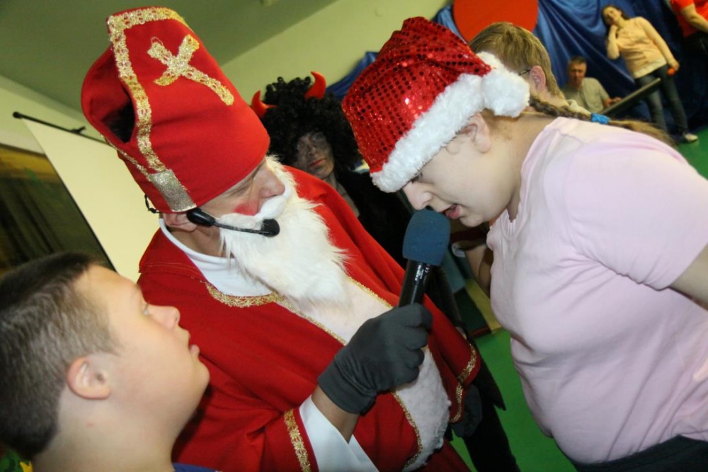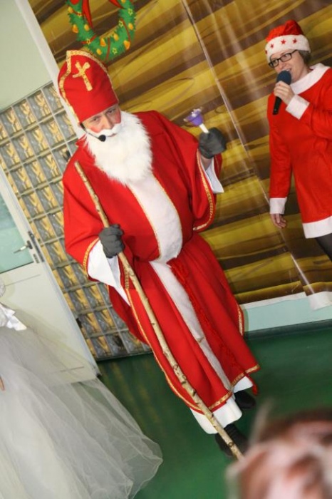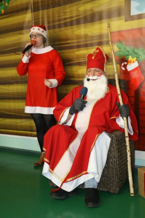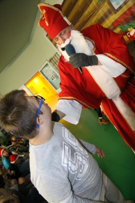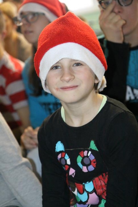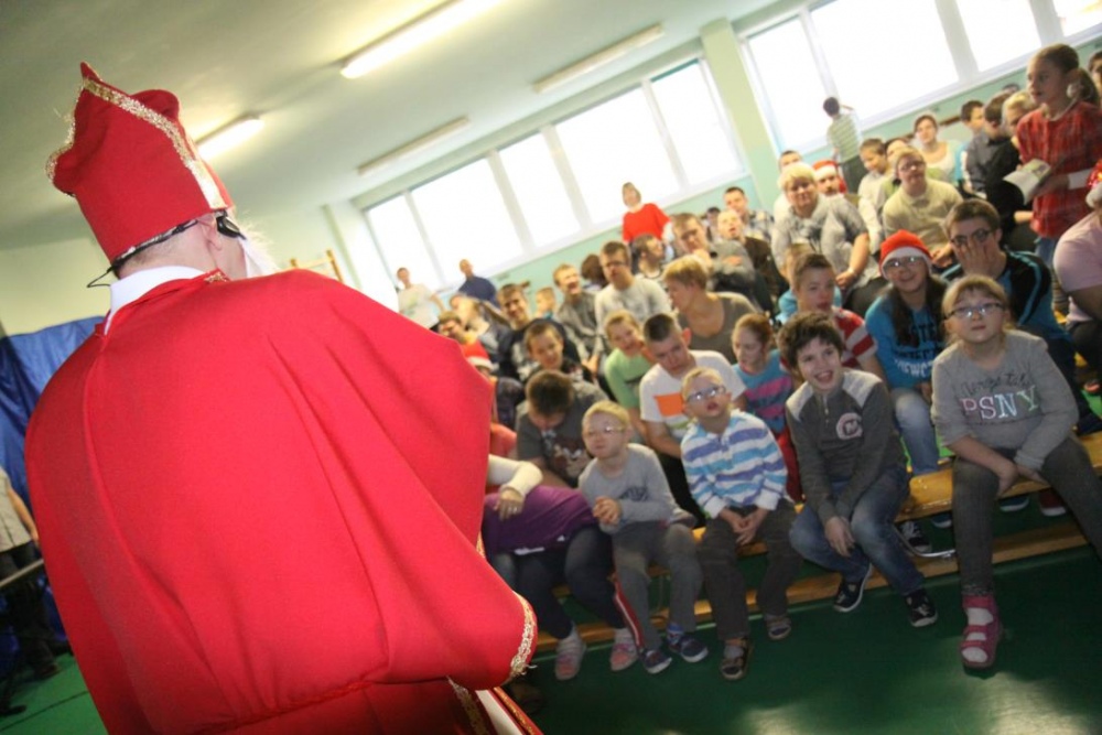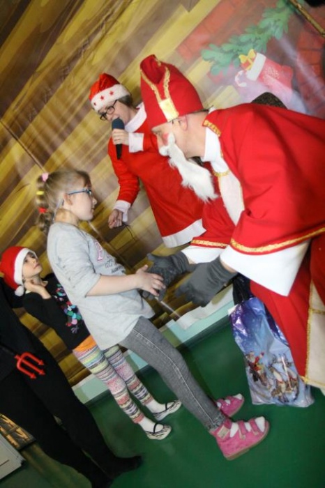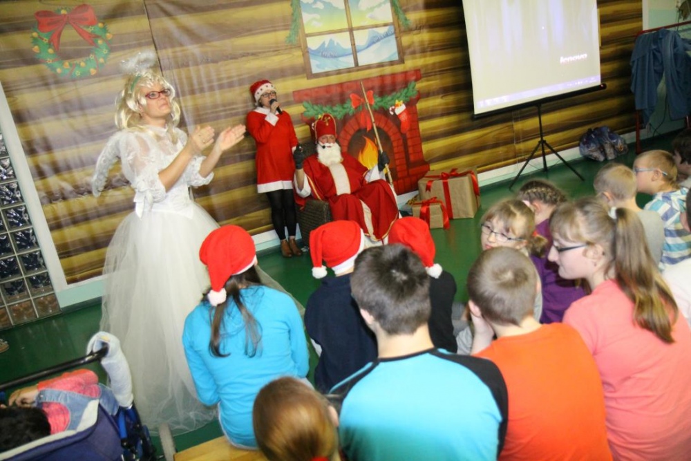 Wizyta Świętego Mikołaja odbyła się w ramach cotygodniowego szkolnego spotkania z piosenką, przygotowywanego i prowadzonego przez panie: Agnieszkę Antosz, Agnieszkę Malinowską i Joannę Sobik. Uczniowie pięknie zademonstrowali swoje umiejętności - śpiewali i tańczyli, świetnie się przy tym bawiąc. Na zakończenie wspólnie obejrzeli film pt. „Prawdziwa historia o Świętym Mikołaju”.