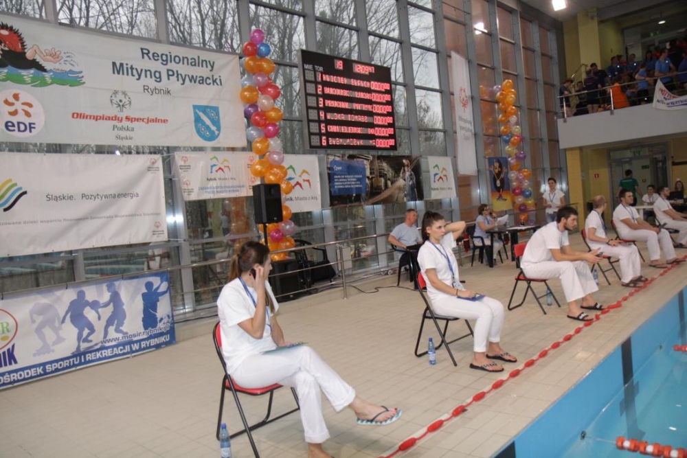 W zawodach wzięło udział blisko 150 sportowców z całego śląska. Nasi uczniowie reprezentowali działający przy szkole Klub Olimpiad Specjalnych "Promyk" Rybnik, którego ekipa w sumie liczyła 30 pływaków. Dla naszych uczniów udział w tych zawodach to podsumowanie cotygodniowych zajęć na krytej pływalni, które realizują pod okiem nauczycieli naszej szkoły.