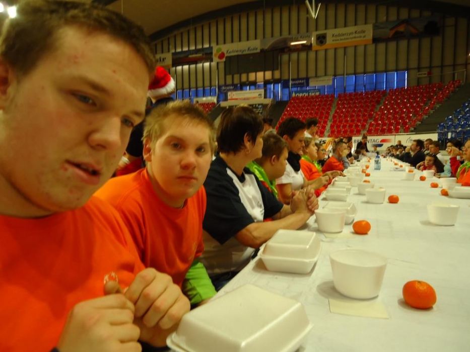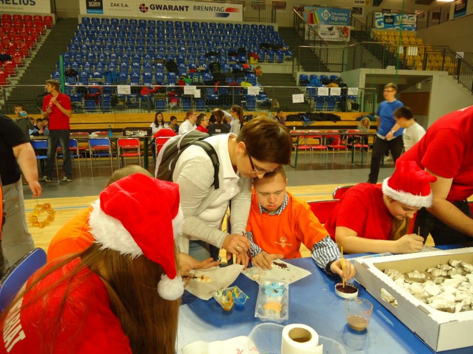 Po raz IV grupa naszych uczniów, wspólnie z Rodziną Olimpiad Specjalnych z całej Polski, spotkała się podczas Ogólnopolskiego Spotkania Integracyjnego "WIGILIA OLIMPIAD SPECJALNYCH" w Kędzierzynie Koźlu. Tradycyjnie podczas spotkania wszyscy uczestnicy wykonywali przeróżne ozdoby świąteczne, wspólnie śpiewali kolędy, cieszylli się świątecznymi upominkami. Kończący spotkanie wspólny świąteczny obiad wprowadził wszystkich zebranych w bożonarodzeniowy klimat. Dodajmy, że do "wigilijnego stołu" zasiadło blisko 500 osób, sportowców Olimpiad Specjalnych z całej Polski.