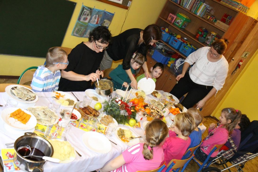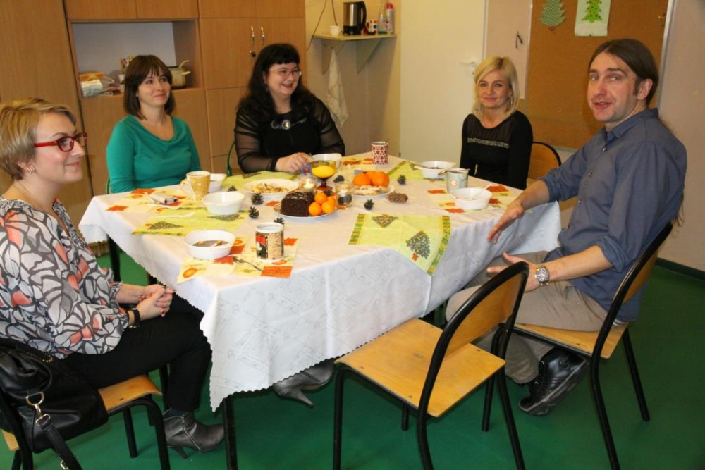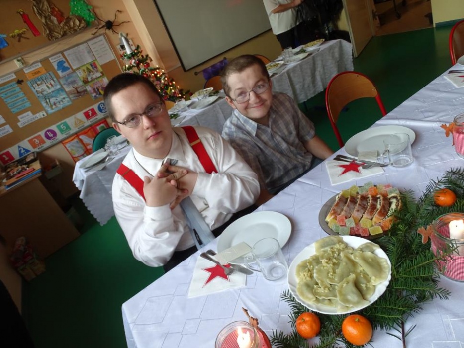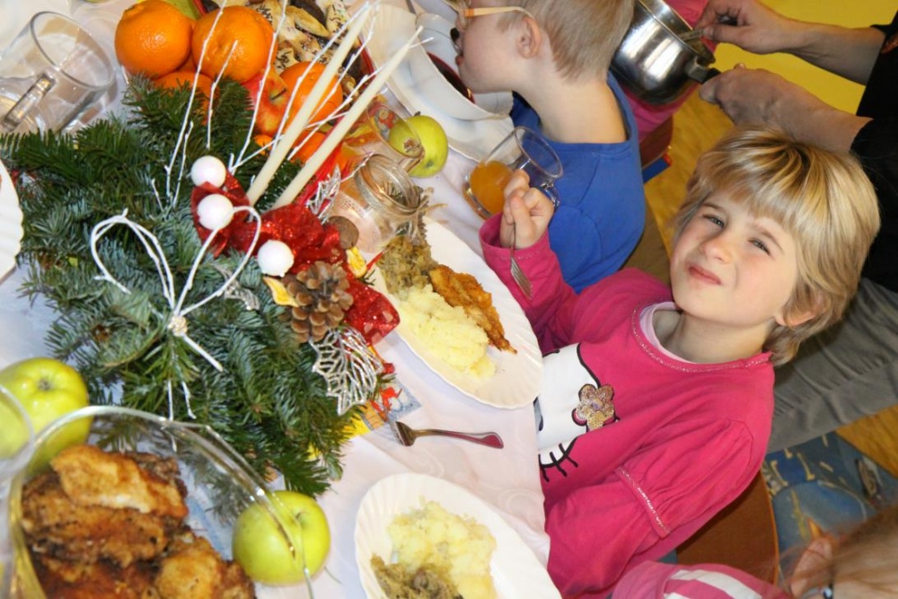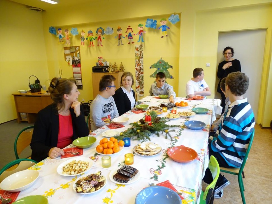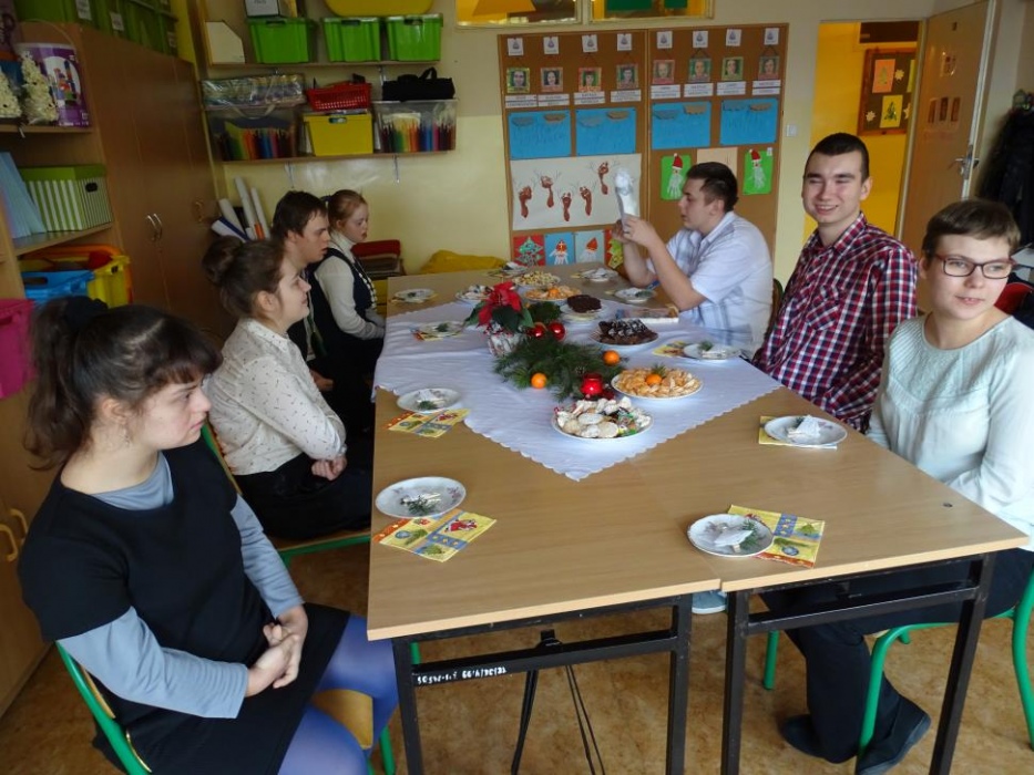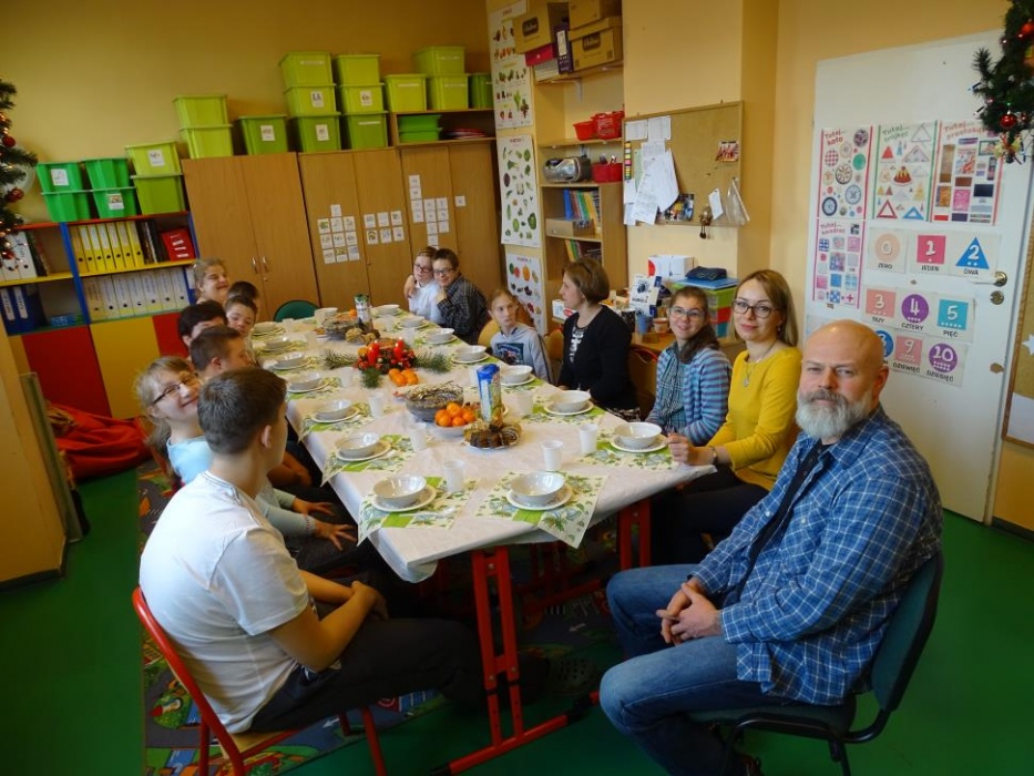 22 grudnia 2015r. w naszej szkole było niezwykle świątecznie. Uczniowie spotkali się na wspólnym kolędowaniu. Były śpiewy, akompaniament muzyczny w wykonaniu naszych uczniów, a także występ nauczycieli:) W klasach natomiast, spotkaliśmy się przy wigilijnych stołach, na których królował barszcz, pierogi z grzybami i ryba. Wcześniej, wszyscy składali sobie bożonarodzeniowe życzenia, łamiąc się opłatkiem.