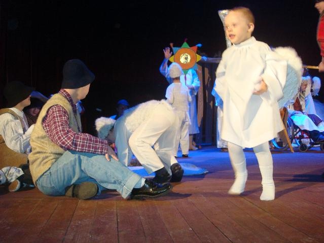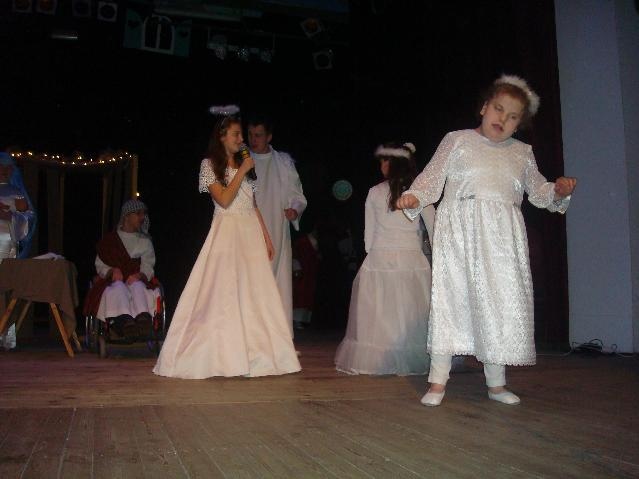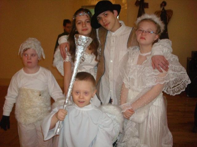 ,,Hej! Pasterze, Chrystus się wam narodził”! Okrzyk ten dobiegał do uszu każdego, kto znalazł się w okolicy sali gimnastycznej, która w grudniu na dobre zamieniła się w miejsce prób szkolnego zespołu ,,Baj”. Zgodnie ze szkolną tradycją świętujemy Boże Narodzenie, przygotowując między innymi szkolne przedstawienie jasełkowe. Jak co roku zaangażowani zostali uczniowie całego zespołu: od przedszkola po gimnazjum, a nawet oddziału rewalidacyjno - wychowawczego. Udział w jasełkach był dla uczniów ogromnym przeżyciem, co można było odczuć podczas prób, a chętnych było więcej niż ról.