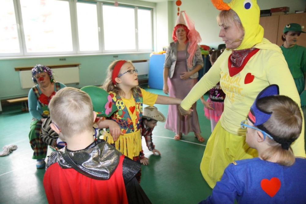 Przedszkolaki oraz uczniowie klas I-III szkoły podstawowej odbyli karnawałową podróż w Krainie Kolorów.