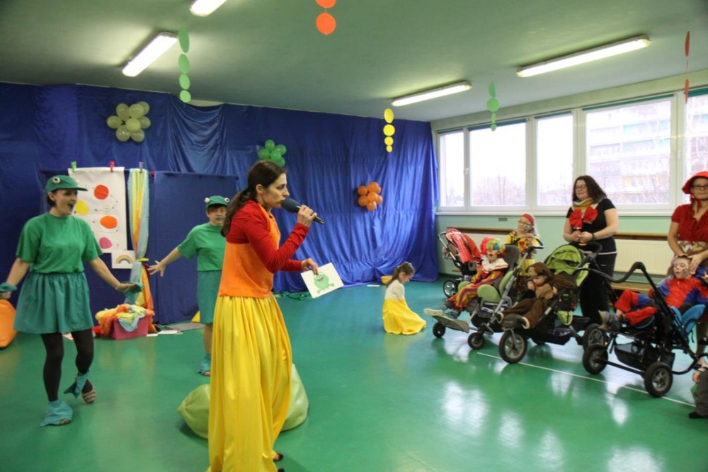 Na balik przebierańców dzieci, a także ich nauczyciele i opiekunowie przybyli w niezwykle barwnych strojach, jak na karnawał przystało. Jedynie prowadząca, pani Magda, była tego dnia bez kolorów, które zniknęły z jej stroju w tajemniczych okolicznościach. By odnaleźć swoje kolory postanowiła, w towarzystwie przybyłych dzieci, wyruszyć w podróż. Przebierańcy, za pomocą różnych środków transportu, odwiedzili Krainy: Czerwoną, zamieszkałą przez Czerwonego Kapturka, Żółtą, w której spotkali Kaczkę Dziwaczkę, Pomarańczową z Tygryskiem na czele, Zieloną z niezwykle sprawnymi Żabkami oraz Różową, w której królowała różowa od stóp po czapkę Wróżka.