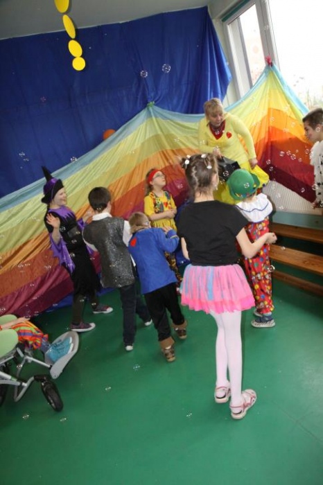 W każdej krainie czekały na dzieci muzyczno-ruchowe zabawy karnawałowe, zaś na panią Magdę kolorowe stroje:) Uwieńczeniem podróży było wyczarowanie TĘCZY oraz tęczowych baniek mydlanych. Nie zabrakło także kolorowych, pamiątkowych fotografii. Zapraszamy do galerii:)