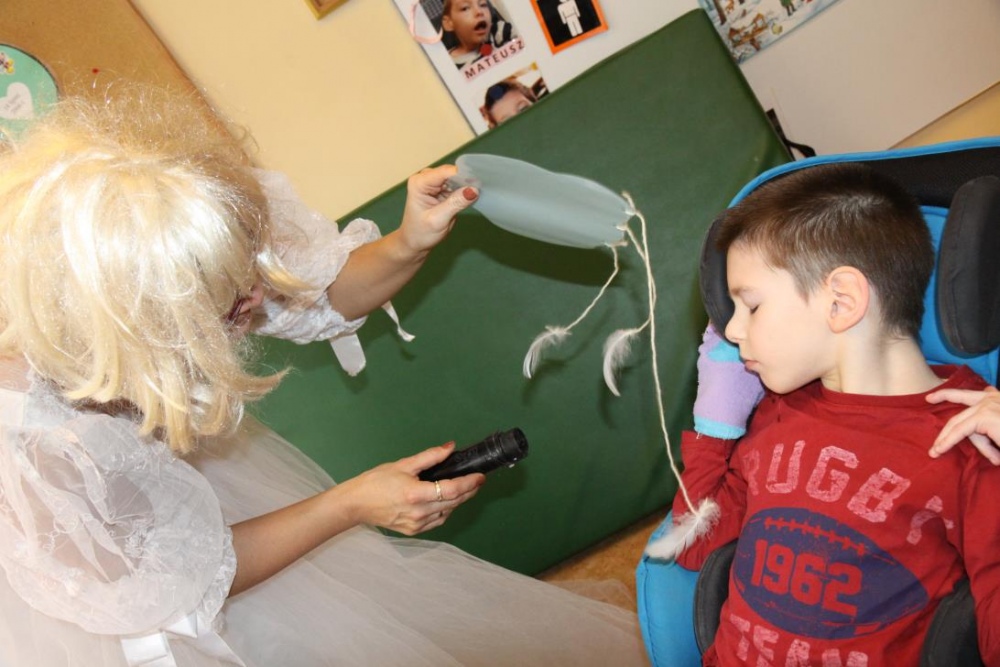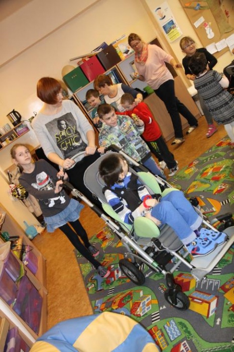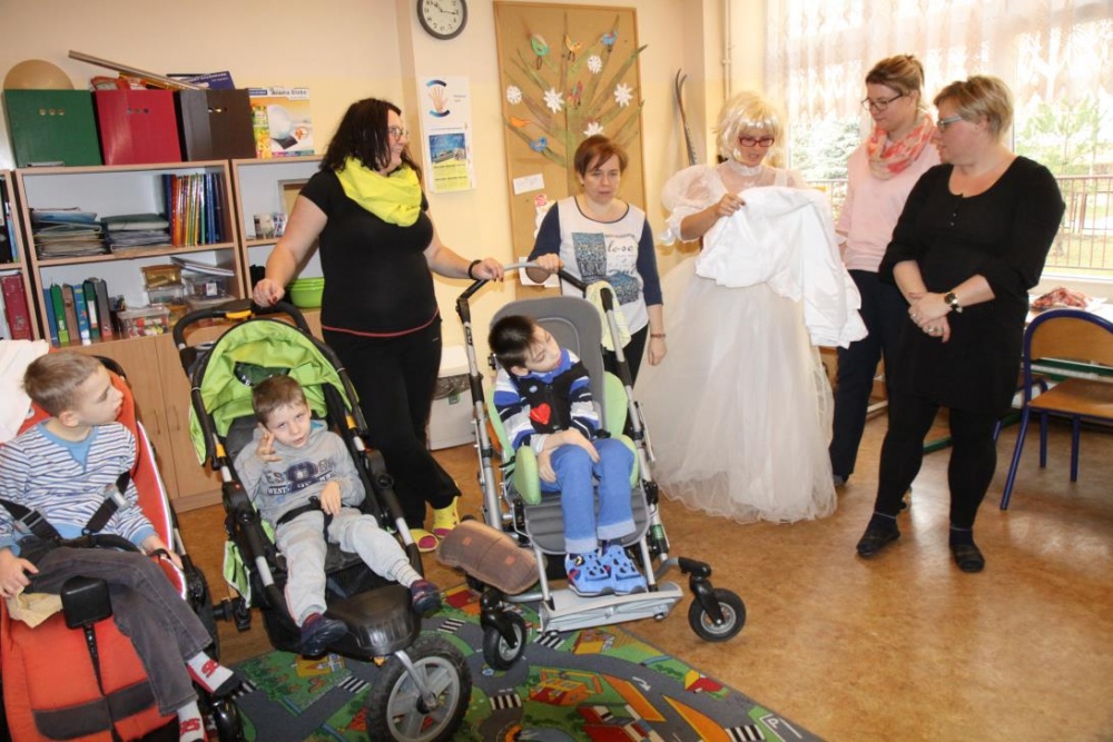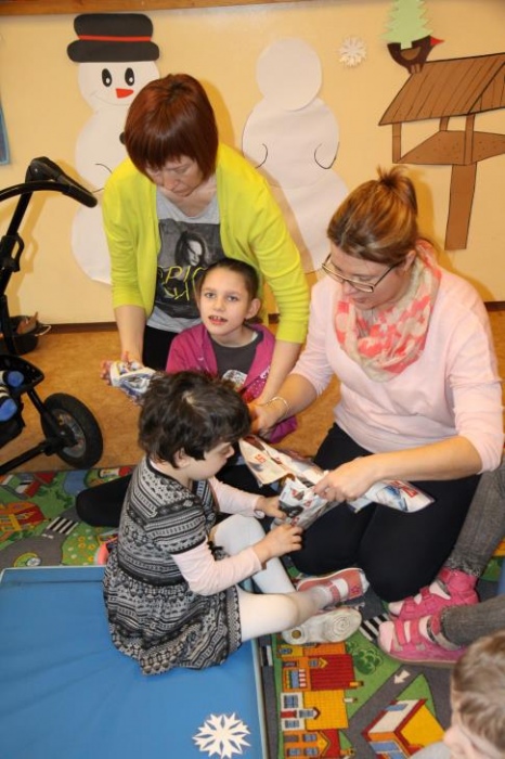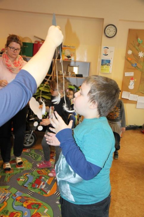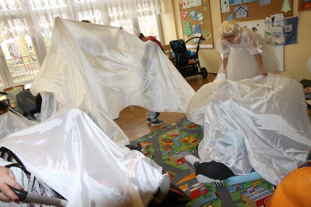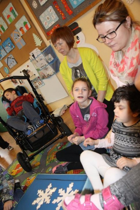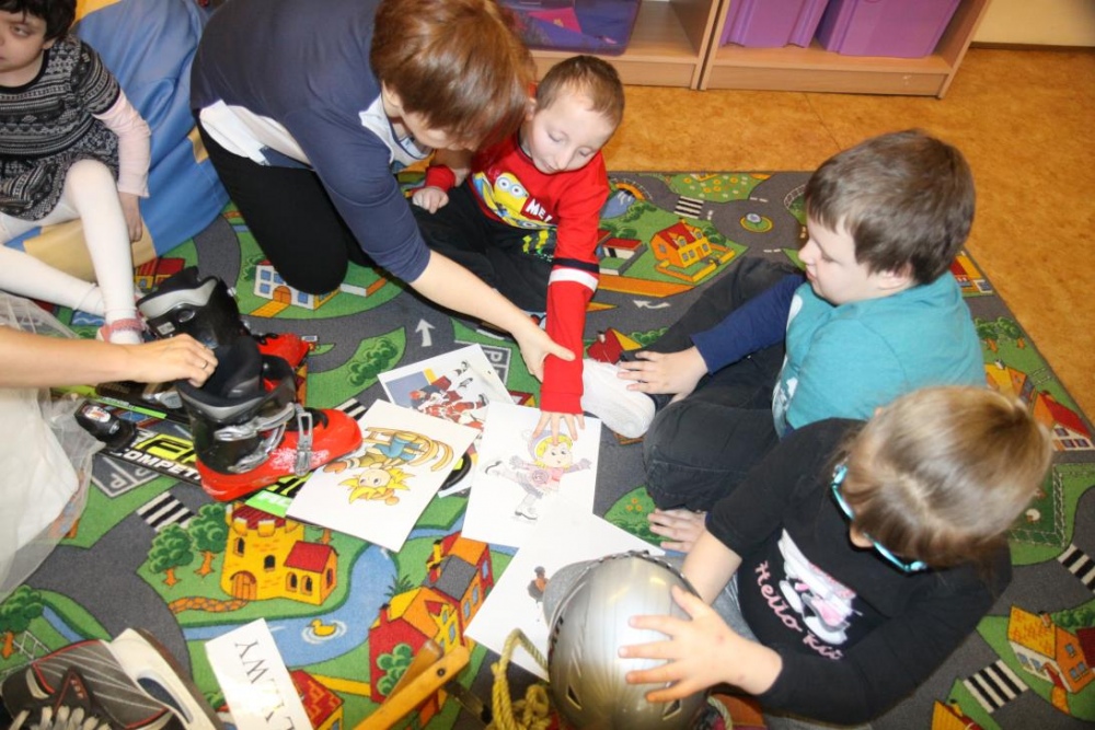 Tegoroczny ZIMOWY KONKURS edukacyjny dla najmłodszych poprowadziła Pani ZIMA we własnej osobie (w tej roli pani Ola). Zaproponowała dzieciom szereg zabaw i zadań związanych z zimową aurą i zimowymi aktywnościami. Doświadczanie dotyku zimnego lodu, zabawa białą chustą, jazda na deskorolkach terapeutycznych, "lepienie" papierowych śnieżek oraz bałwana sprawiły uczniom sporo frajdy, szczególnie w czasie, gdy prawdziwa zima skąpi nam "zimowych doświadczeń". Uczestnicy konkursu mieli również możliwość przymierzać kaski narciarskie oraz łyżwy. Pomiędzy konkurencjami odbył się "kulig" przy dźwiękach pioesnki i dzwoneczków.