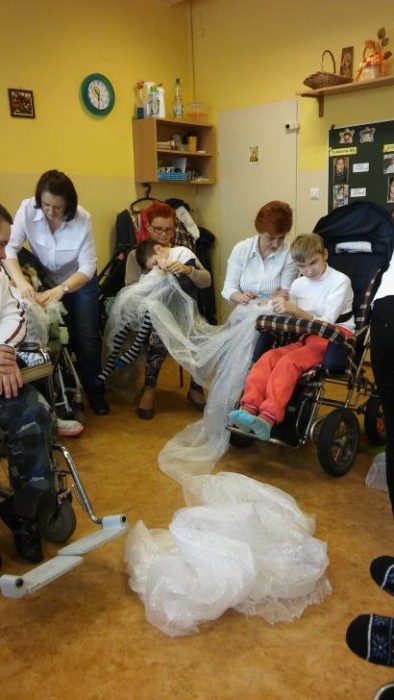 11.02.2016r. odbyły się zajęcia otwarte w zespołach rewalidacyjno - wychowawczych. Nauczyciele poprzez rozwijanie i doskonalenie zmysłów przybliżyli uczniom tematykę zimy. Dominował smak i zapach mięty oraz biały kolor. Różne faktury: folia bąbelkowa i spożywcza, wata, modelina, papier oraz kostki lodu i ciepła woda pomogły dzieciom doznać uroki najzimniejszej pory roku. Urozmaiceniem zajęć było wykonanie pracy plastycznej i śpiewanie piosenek z wykorzystaniem instrumentów muzycznych.
