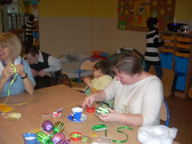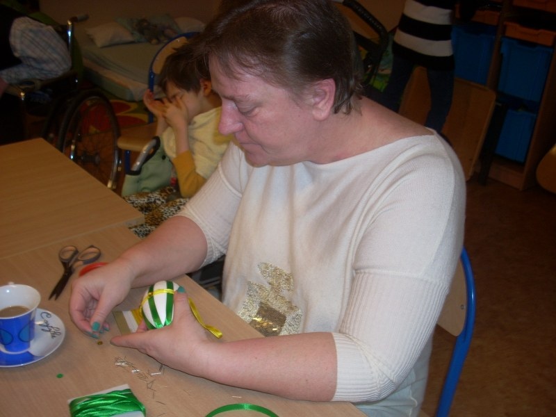 Dnia 11.03.2016r. w II i III oddziale rewalidacyjno – wychowawczym tradycyjnie odbyły się wielkanocne warsztaty plastyczne dla rodziców, na których wykonano pisanki metodą wstążeczkową. Prace zostały przekazane na konkurs