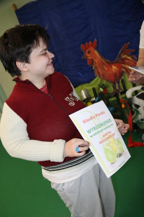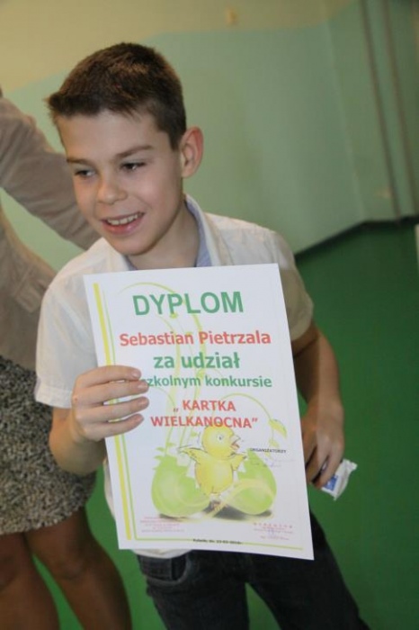 Plastyczny konkurs szkolny na „KARTKĘ WIELKANOCNĄ” spotkał się ogromnym zainteresowaniem. Cieszymy się, ze wzięło w nim udział aż 57 uczniów z naszej szkoły. Wszystkie prace były wykonane estetycznie, z pomysłem i z wykorzystaniem wielu technik plastycznych co nie ułatwiło nam wyboru tych najładniejszych. Dlatego jury postanowiło przyznać trzy pierwsze, trzy drugie i trzy trzecie miejsca oraz piętnaście wyróżnień. Dziękujemy za udział w zabawie i zapraszamy za rok.