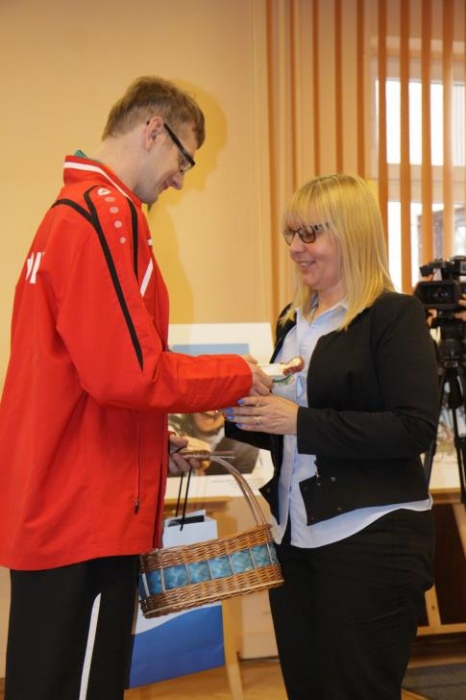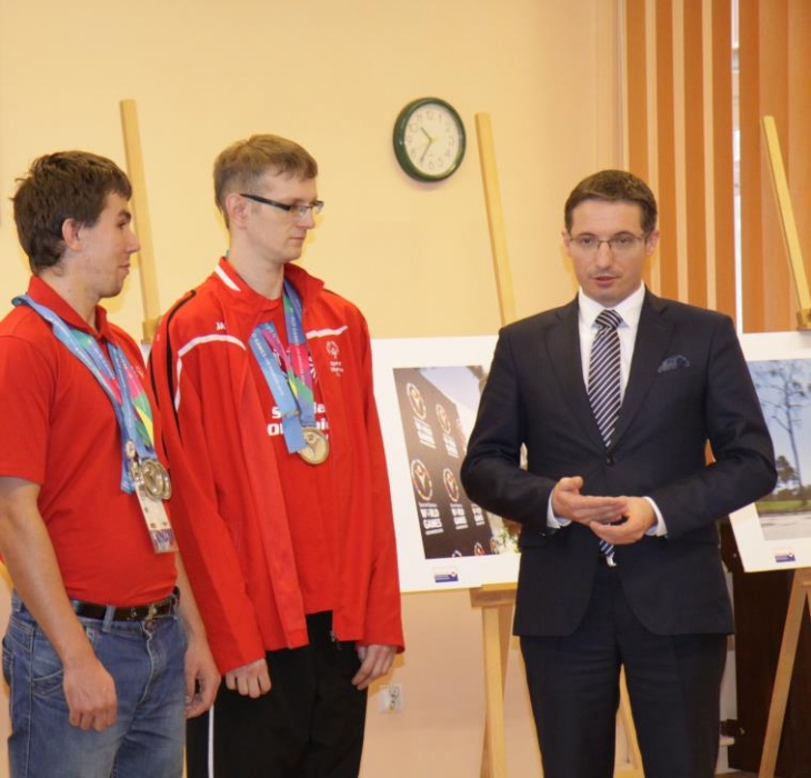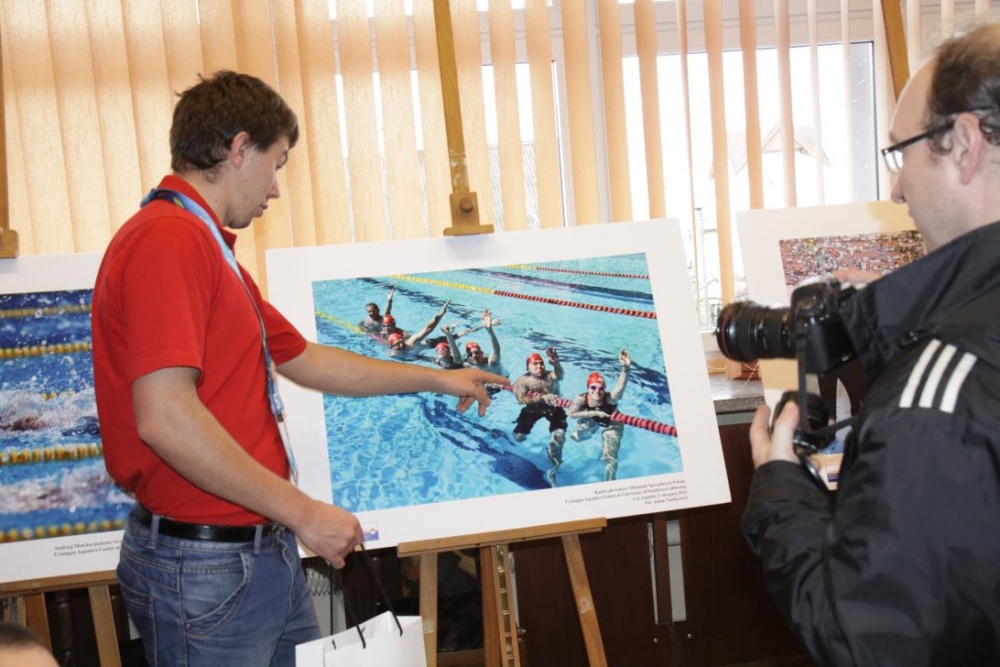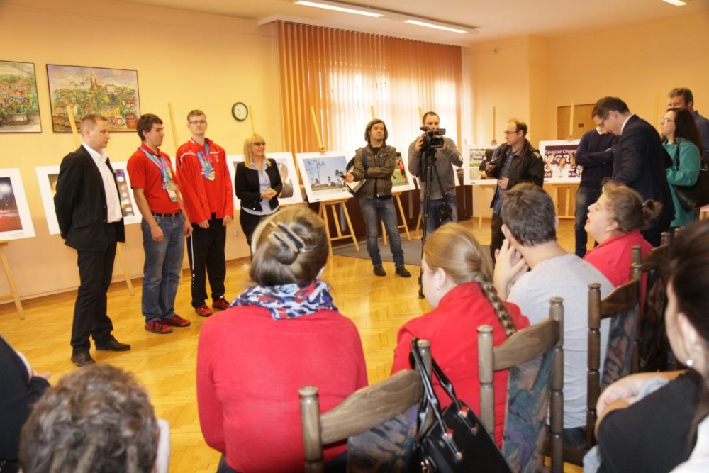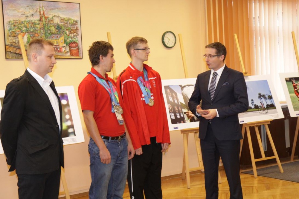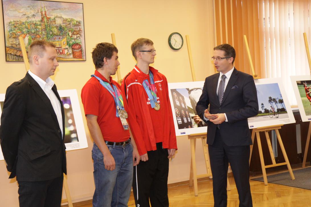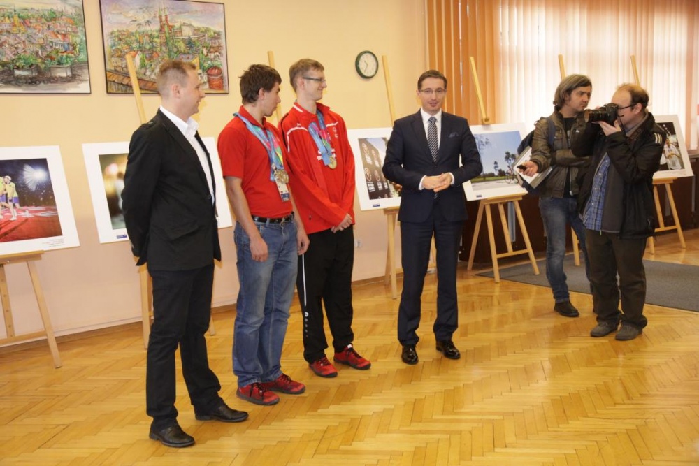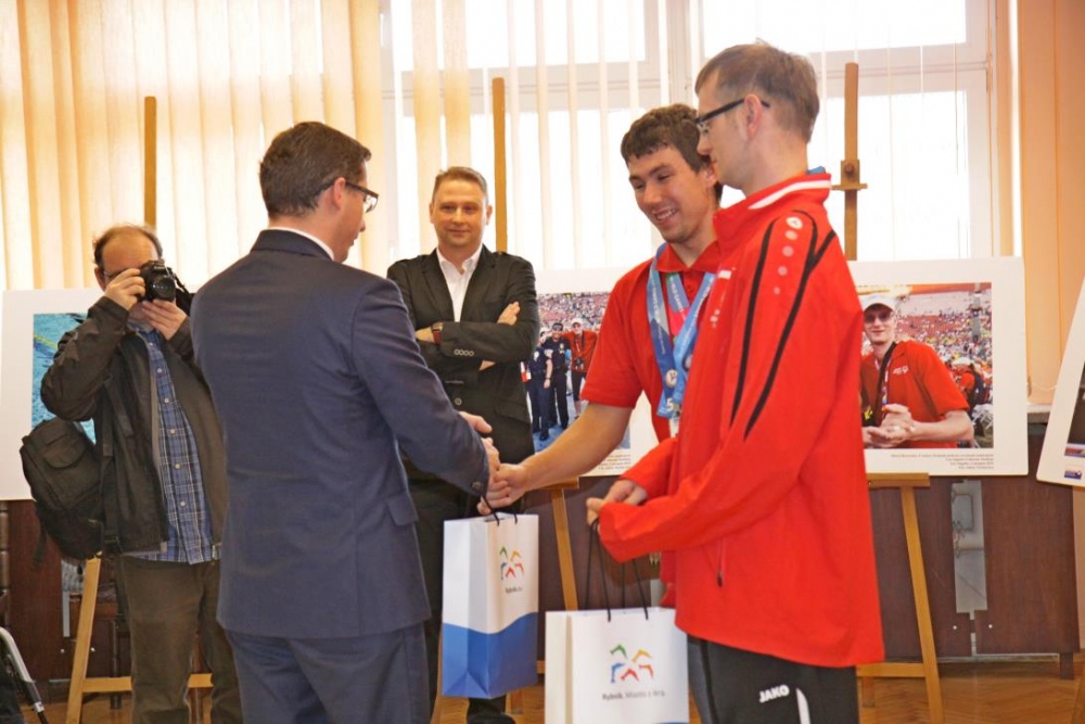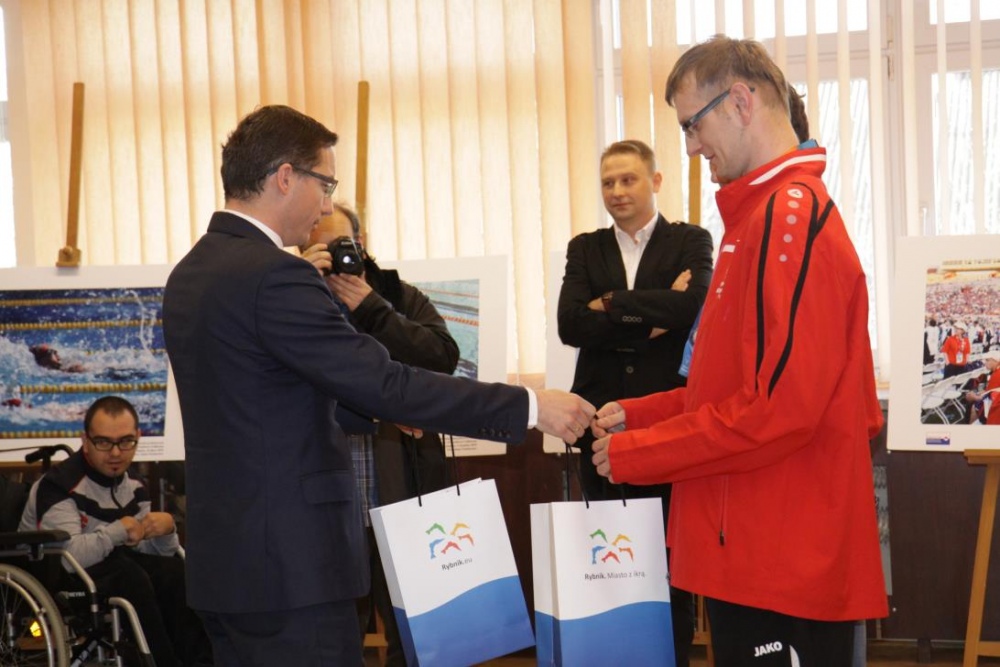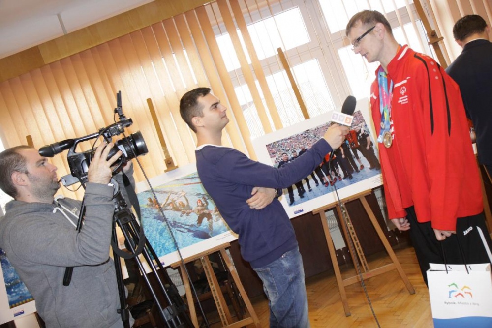 Otwracie wystawy stało się okazją do zwołania konferencji prasowej, podczas której nasi medaliści odebrali gratulacje z rąk Prezydenta Miasta Rybnika Pana Piotra Kuczery. Gratulacje odebrał, obecny podczas spotkania trener naszego pływaka pan Adam Drynda, natomist zaocznie także pani Sabina Dudek oraz trener tenisisty pan Adam Rek.