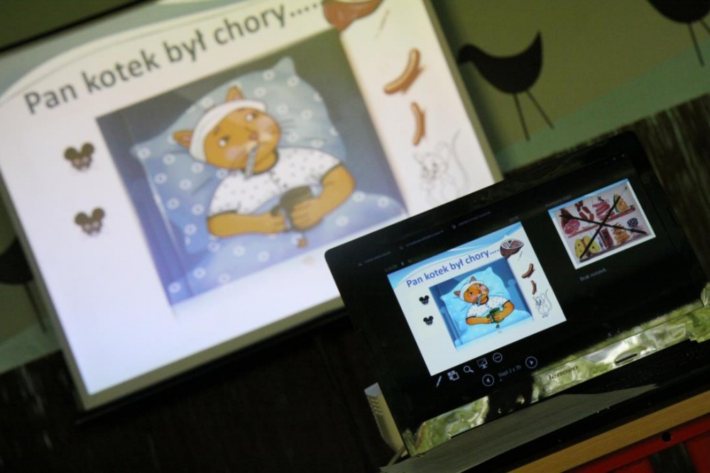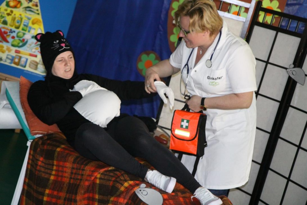 Konkurs otworzyła Pani Dyrektor Lucyna Ibrom witając zaproszonych gości, nauczycieli i uczniów. Na początku grupa nauczycieli wykonała przedstawienie „Pan kotek był chory”.
