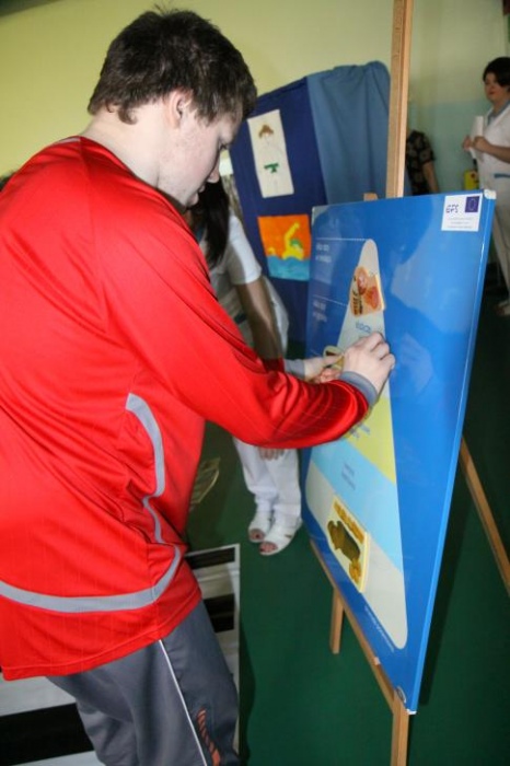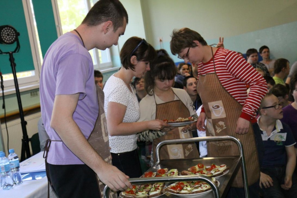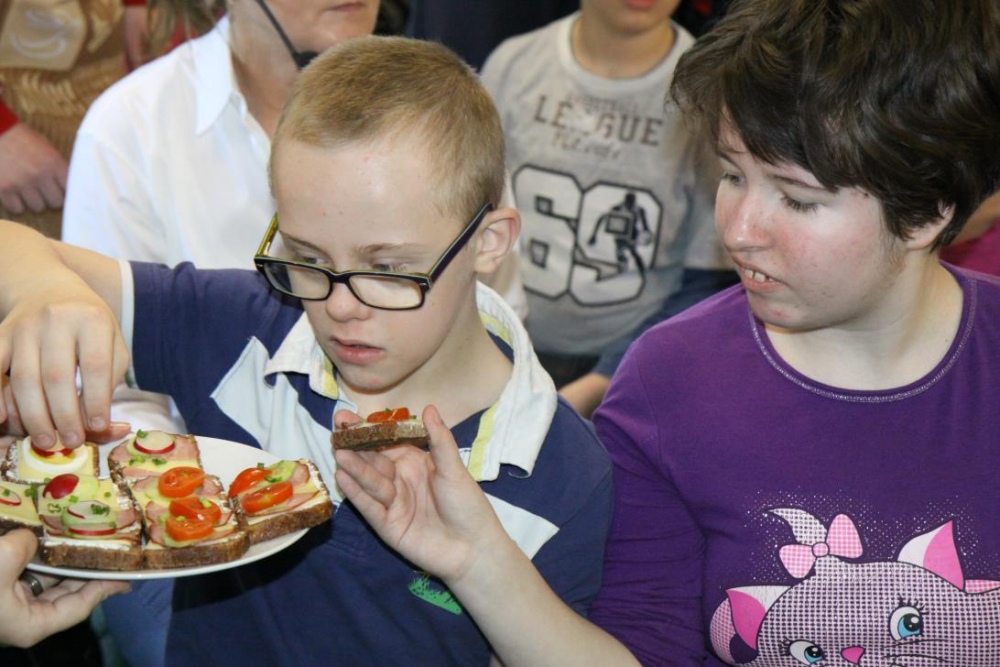 Udział w konkursie wzięli też uczniowie grup rewalidacyjno-wychowawczych. Wspólnie z opiekunami wykonany został plakat tematyczny dotyczący zdrowego trybu życia oraz zdrowe przekąski. Całość spotkania zakończyło wspólne degustowanie potraw, wręczenie nagród i dyplomów.