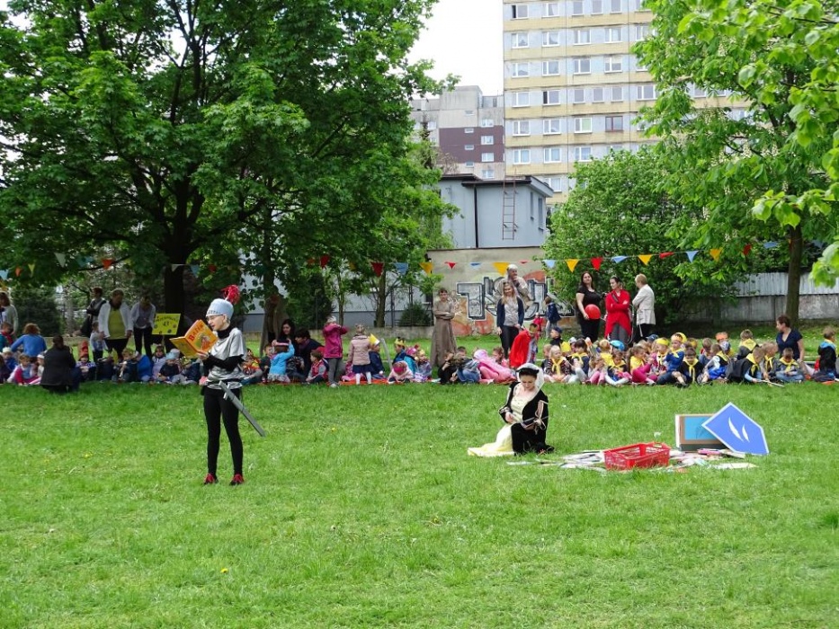 W dniach 8-15 maja 2016r. w Rybniku obchodzono VIII Ogólnopolski Tydzień Bibliotek, podczas którego zaplanowano szeregciekawych imprez i spotkań. Nasi njamłodsi uczniowie mieli okazję wziąć udział w jednym z nich - "Bibliteka na Trzepaku" - Bajkogród. Impreza odbywająca się na terenie sąsiadującego z naszą szkołą osiedla zorganizowana była przez filię nr 18 Powiatowej i Miejskiej Biblioteki Publicznej w Rybniku. W imprezie wzięły udział dzieci z pobliskich przedszkoli - wszyscy w roli księżniczek, książąt, czy rycerzy. Na "zamkowym dziedzińcu" było tego dnia bardzo wesoło:)