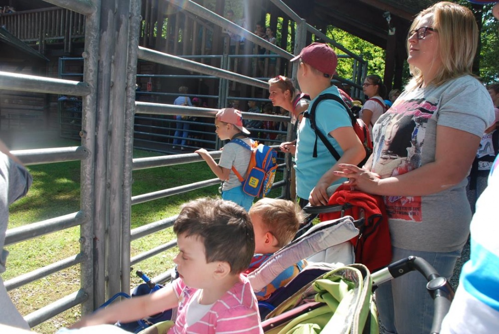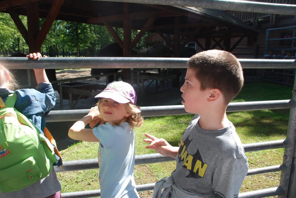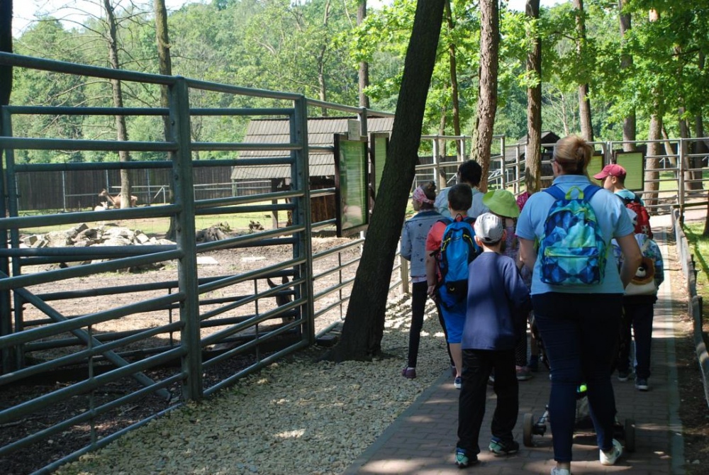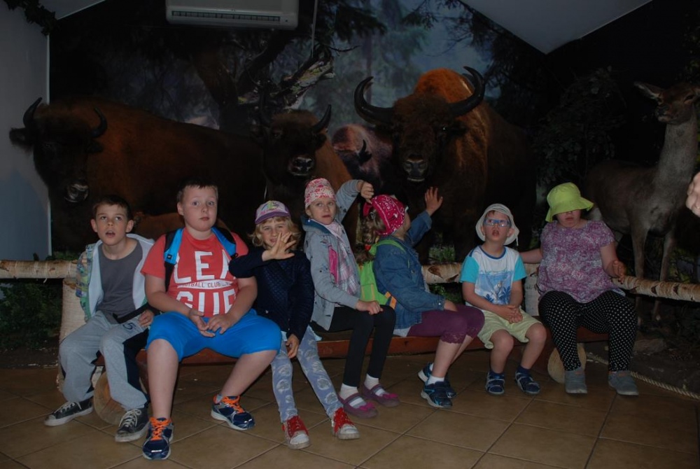 Dnia 8 czerwca młodsza część uczniów naszej szkoły (grupa przedszkolna, Ia, IIa, IIb, IicA i IIIa) odwiedziła Pokazową Zagrodę Żubrów w Pszczynie. Dzieci wraz z opiekunami miały okazję obserwować żubry podczas karmienia. W czasie spaceru po zagrodzie dzieci oglądały również inne zwierzęta i ptaki takie jak jelenie, daniele, króliki, łabędzie, kaczki i pawie. Na terenie zagrody znajduje się również muzeum, w którym mogliśmy zobaczyć jak wyglądała izba leśniczego oraz stanąć „oko w oko” z innymi drapieżnymi zwierzętami. Ekspozycja zrobiła na dzieciach ogromnie wrażenie. Wspólny posiłek na wolnym powietrzu zakończył nasz pobyt w Pszczynie. Dzieci wróciły zadowolone, choć nieco zmęczone.