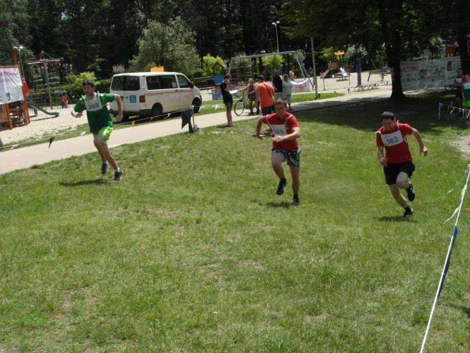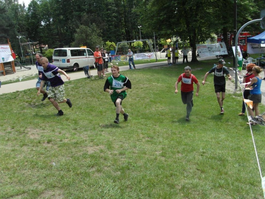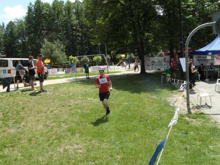 Nasz zawodnik rywalizował na dystansie 600m. W preeliminacjach pobiegł dobrze, aczkolwiek dużo niższe możliwości biegnących z nim sportowców niedostatecznie zmobilizowały Kacpra do biegu na maksimum jego możlwiości. Bieg w finałowej grupie mocniejszych zawodników, "depczących mu po piętach", sprawił, że nasz Kacper sięgnął po zapasowe pokłady energii i przybiegł pierwszy na metę w czasie znacznie przekraczającym jego wynik preeliminacyjny. Międzynarodowe przepisy sportowe Olimpiad Specjalnych niestety przewidują w takiej sytuacji dyskwalifikację, stąd nasz biegacz został uhonorowany wstążką za udział w zawodach...