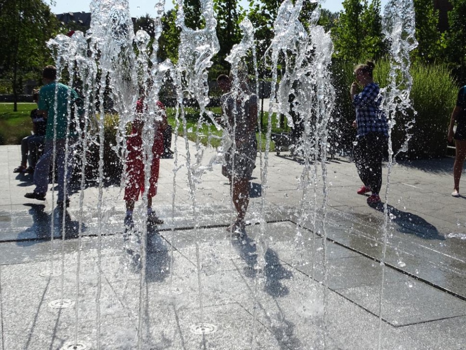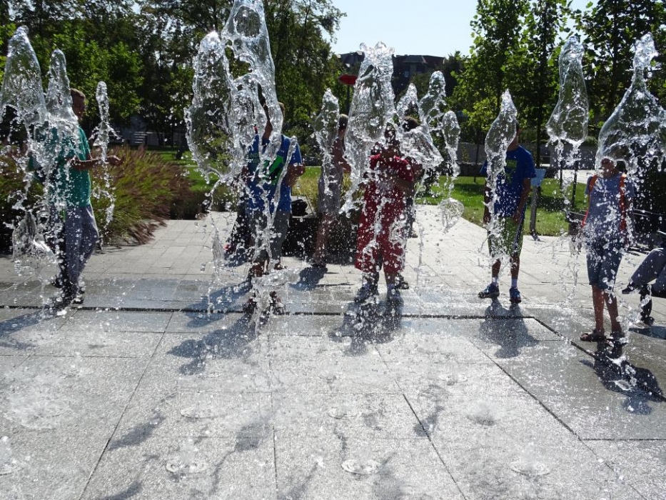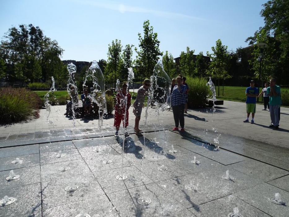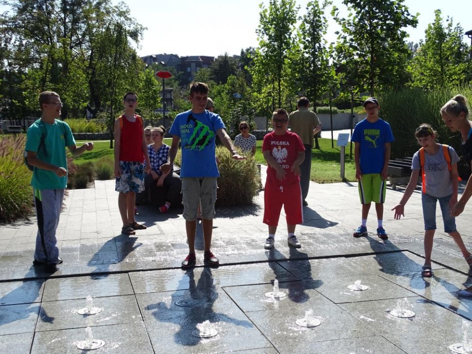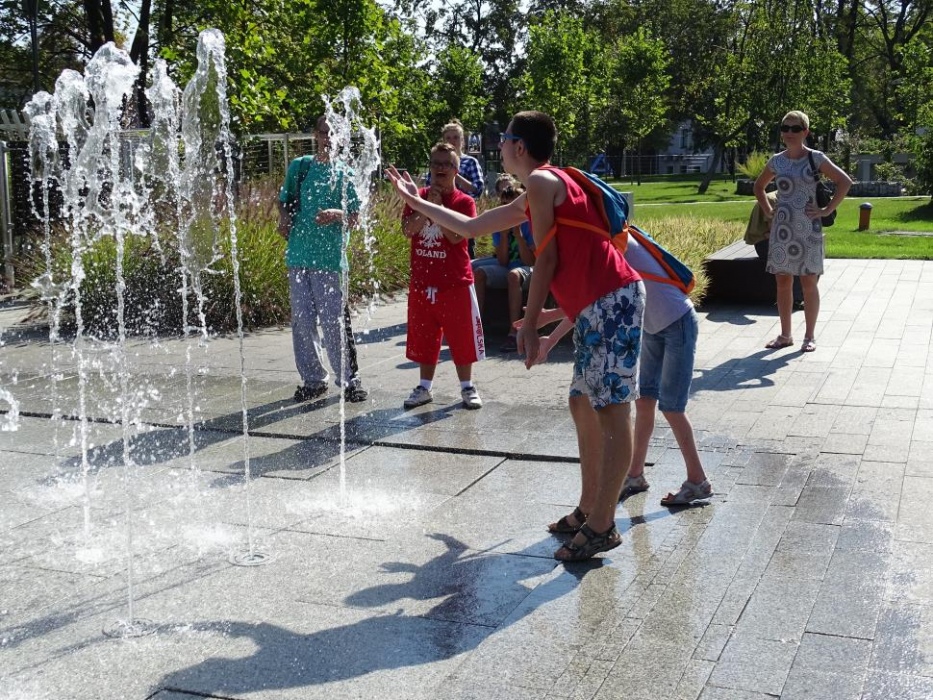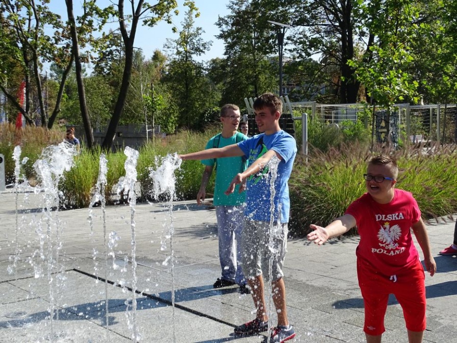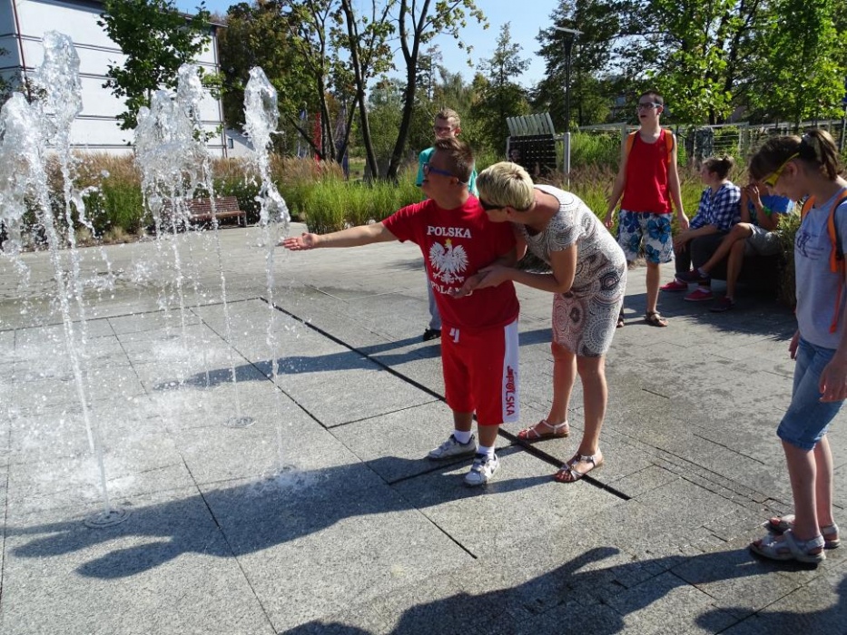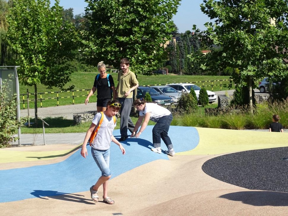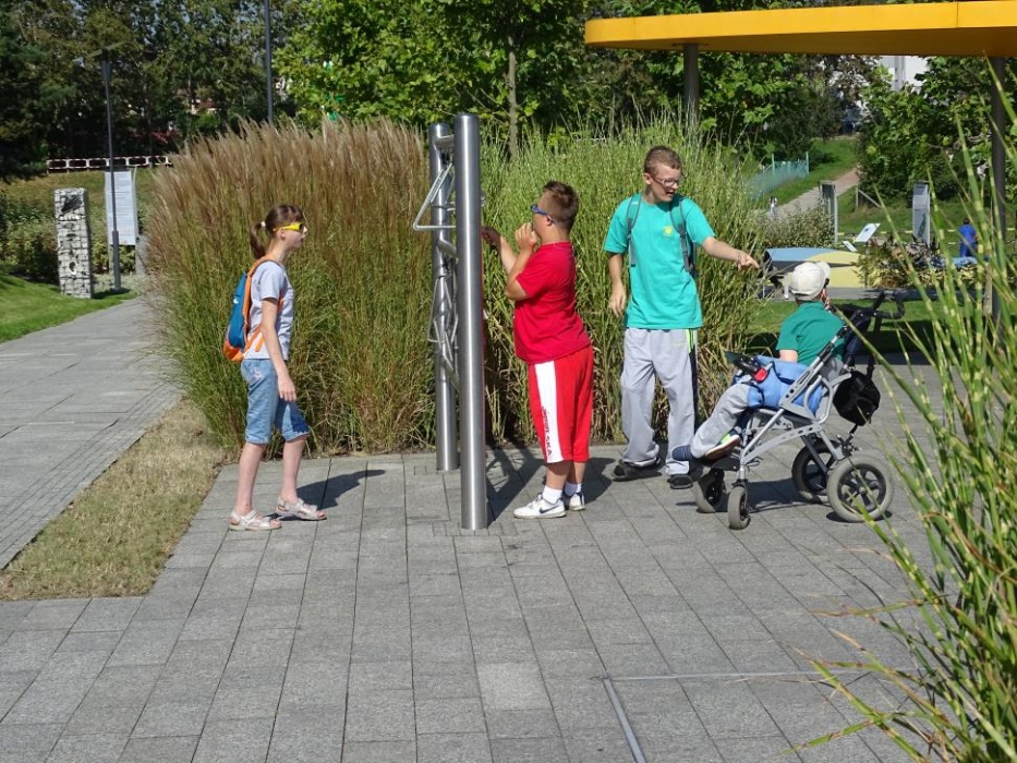 Uczniowie doświadczali świata wszystkimi zmysłami – wąchali, smakowali, słuchali, dotykali. Największą atrakcją okazała się fontanna oraz nawierzchnia interaktywna.
