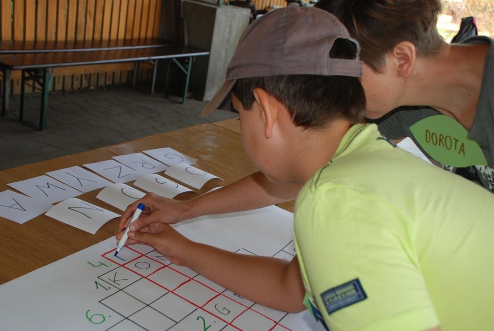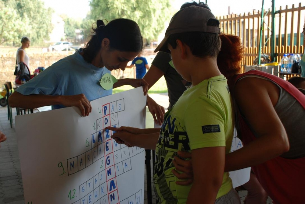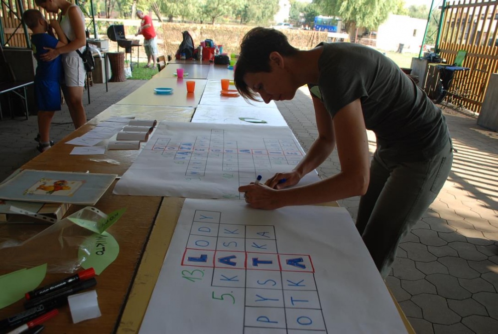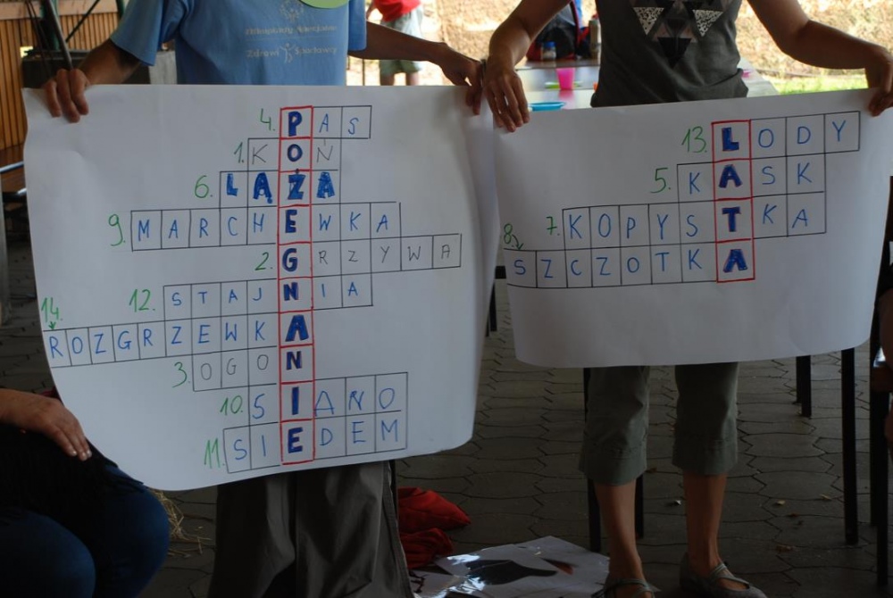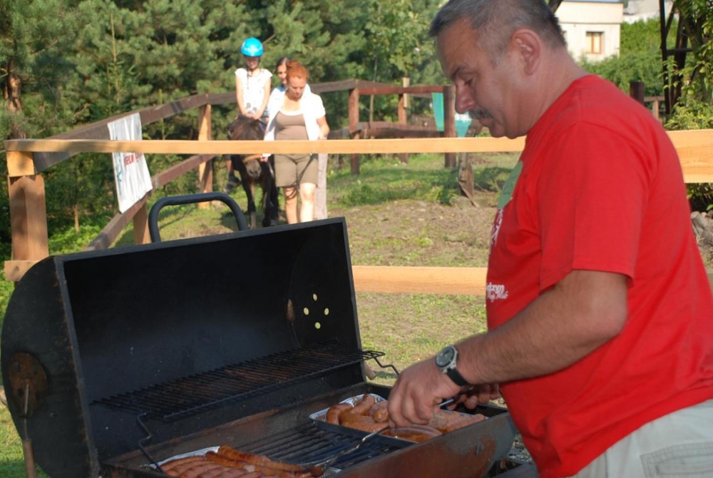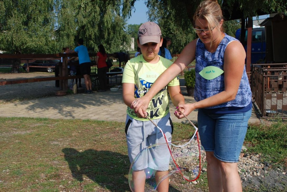 Uczniowie młodszych klas wraz z rodzicami oraz nauczycielami spotkali się podczas integracyjnego grilla, by wspólnie "pożegnać lato". Spotkanie odbyło się w ramach szkolnych zajęć hipoterapii w ośrodku Animaloterapii w Niedobczycach. Nim wszyscy przystąpili do wspólnej biesiady i zabawy, na zebranych czekało zadanie - rozwiązać pewną krzyżówkę. Kolejne hasła stanowiły różnego typu zadania tematyką nawiązującą do koni i konnej jazdy. Dzieci, a także ich opiekunowie, mieli okazję wykazać się wiedzą z zakresu końskich części ciała, przyborów do czyszczenia, czy akcesoriów do jazdy. Nie obeszło się także bez liczenia, rozpoznawania liter, no i pisania. Kiedy już powtało hasło końcowe - "POŻEGNANIE LATA" uczestnicy mogli wreszcie przystąpić do zabawy i jedzenia kiełbasek:) Rodzice mieli możliwość poobserwować swoje pociechy podczas jazdy na koniu, bądź w trakcie czyszczenia zwierzęcia. W wolnej chwili dzieci chętnie puszczały ogromne bańki lub wraz z rodzicami poznawali tajniki gry w bocce.