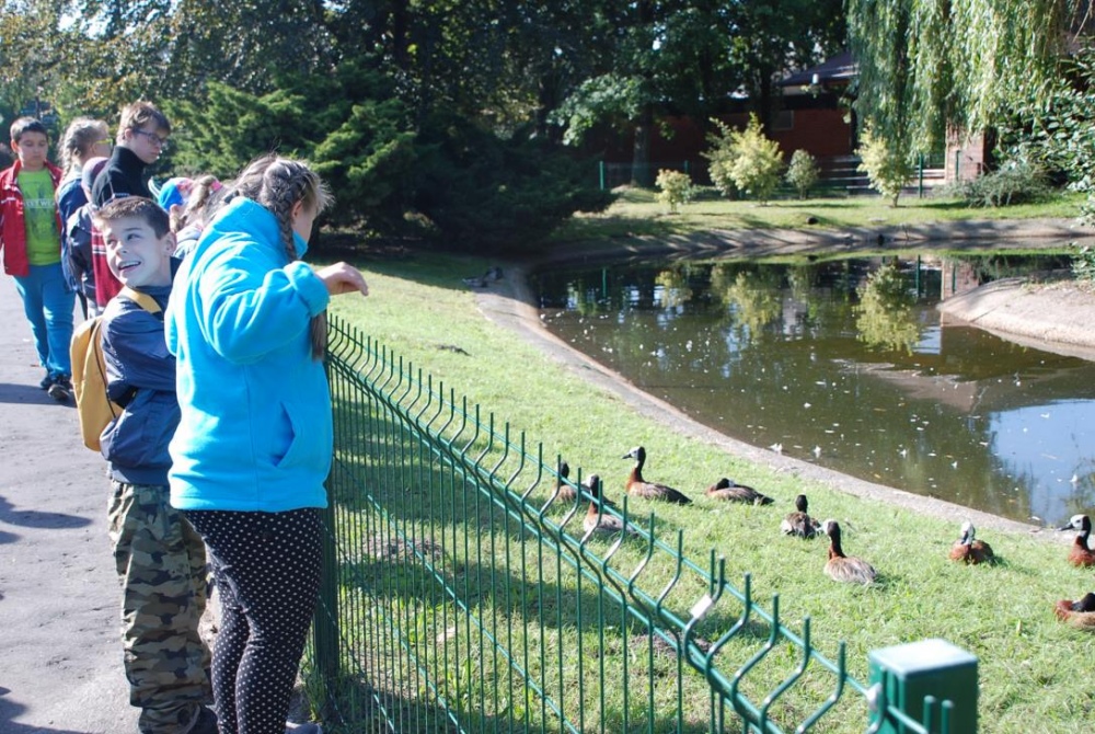 W dniu 23 września młodsza część uczniów naszej szkoły (grupa przedszkolna, IIa, IIIa IIIc, IIId oraz dwoje uczniów z Vc) odwiedziła Śląski Ogród Zoologiczny w Chorzowie. Dzięki uprzejmości dyrekcji Zoo mogliśmy wjechać na teren zoo, co było dla nas dużym ułatwieniem. Dzieci wraz z opiekunami mogły zobaczyć wiele gatunków zwierząt dużych i małych. Największe wrażenie oczywiście zrobiły na dzieciach duże zwierzęta takie jak nosorożce, żyrafy czy niedźwiedzie, wielbłądy. Jednakże dużym zainteresowaniem cieszyły się również zebry, tygrysy, gepardy, oraz inne małe ssaki takie jak Lemury wydry i małpki Miko. W akwarium dzieci widziały również węże, pająki i gekony. Podczas spaceru po zoo był też czas na wspólny posiłek na wolnym powietrzu, tym bardziej przyjemny że pogoda w tym dniu dopisała. Na koniec każde z dzieci otrzymało upominek w postaci pięknie ilustrowanego przewodnika i książeczki edukacyjnej. Dzieci wróciły zmęczone, ale bardzo zadowolone.