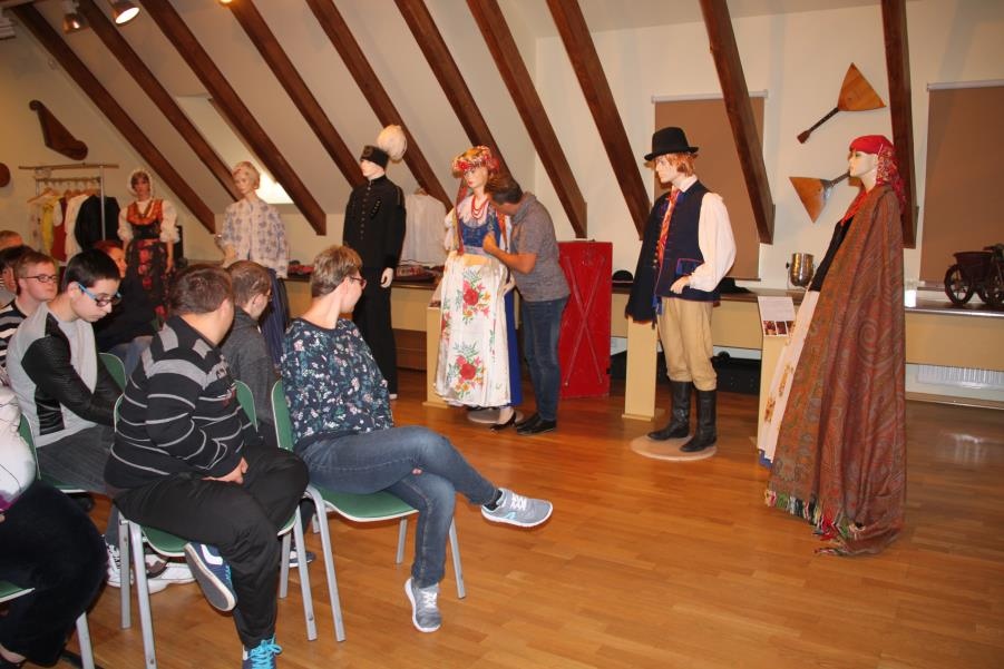 Największą atrakcją – nie tylko dla uczniów, ale i dla Pań, była możliwość przymierzenia kostiumów scenicznych. Przez chwilę mogliśmy poczuć się, jak członkowie słynnego Zespołu ,,Śląsk” . I tylko deszczowa pogoda nie pozwoliła nam zwiedzić, przepięknego parku krajobrazowego otaczającego pałac w Koszęcinie.