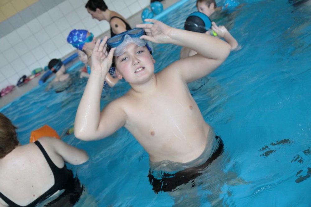 W ramach realizowanego na krytej pływalni rybnickiego MOSiR-u projektu "Nauka pływania uczniów klas I-III z Miasta Rybnika" nasi najmłodsi uczniowie biorą udział w cyklu regularnych zajęć ruchowych w wodzie. Zajęcia odbywające się po okiem instruktora pływania, a także naszych pań nauczycielek i opiekunek, nie tylko sprawiają naszym dzieciom ogromną frajdę, ale stanowią dla nich świetną formę rehabilitacji, profilaktyki. Stawiają przed nimi także szereg wyzwań w zakresie samodzielności i samoobsługi:)