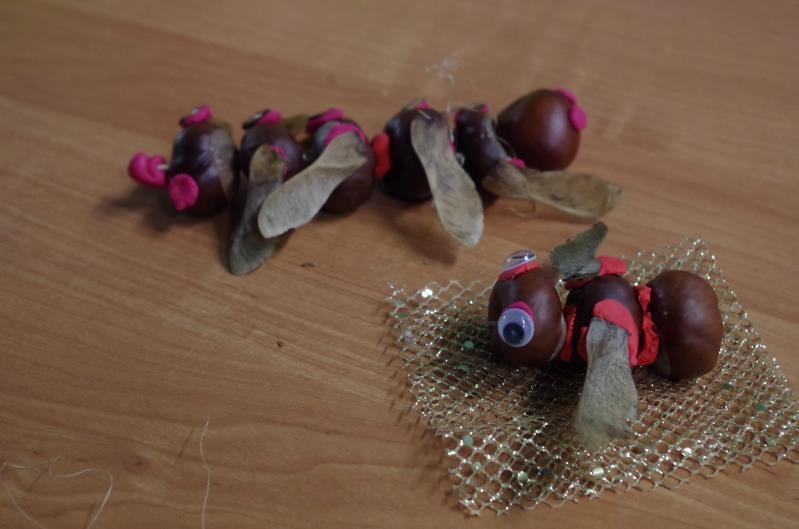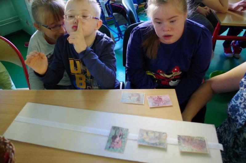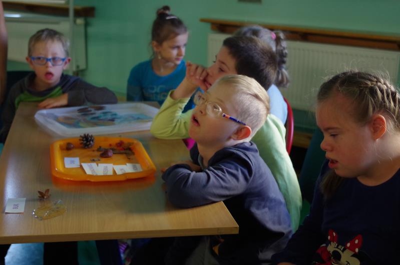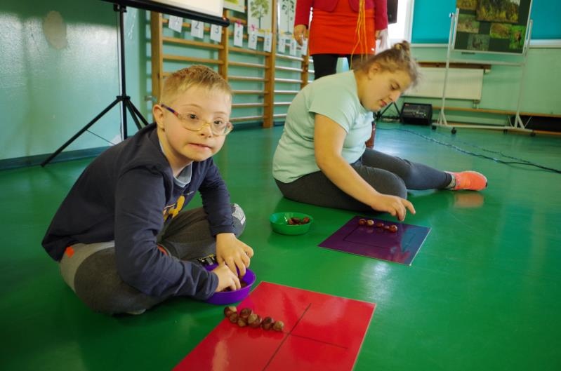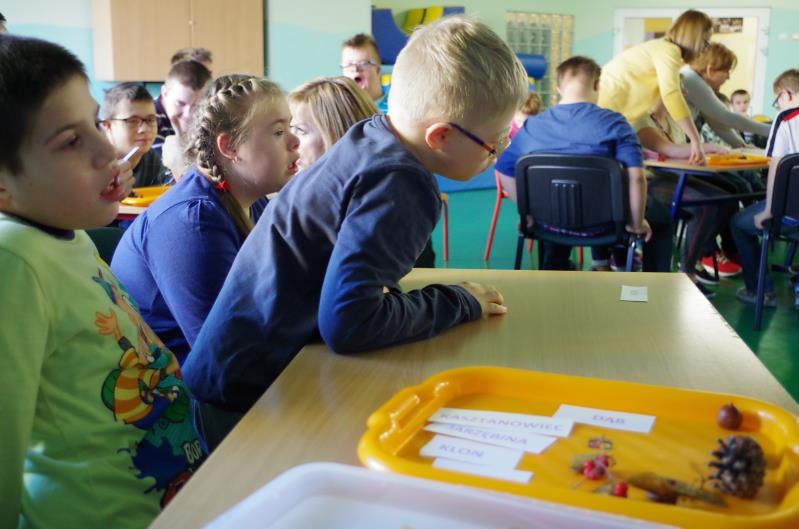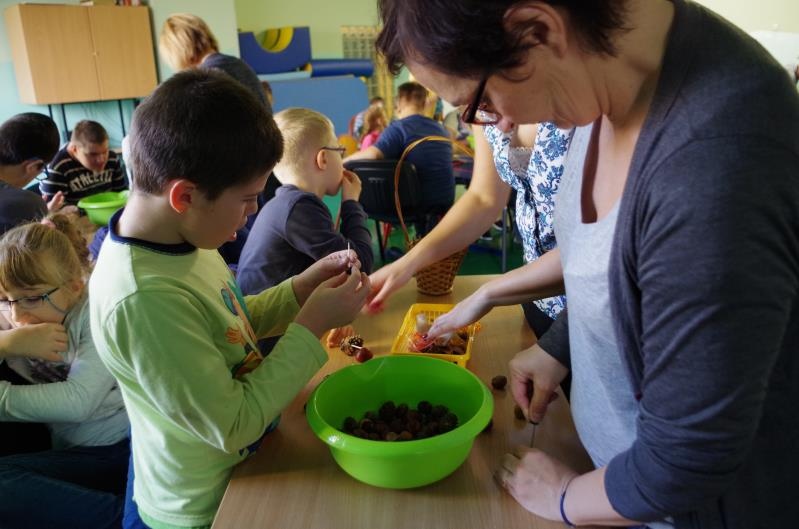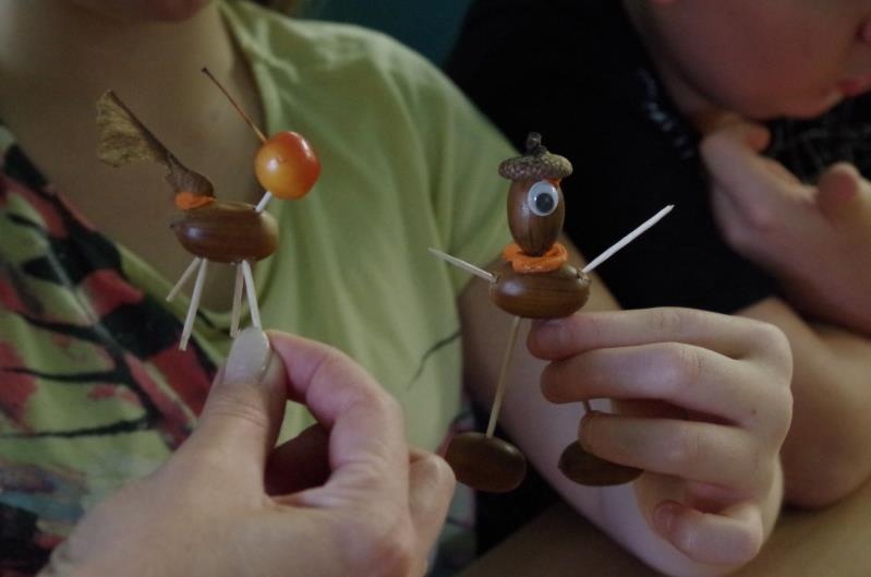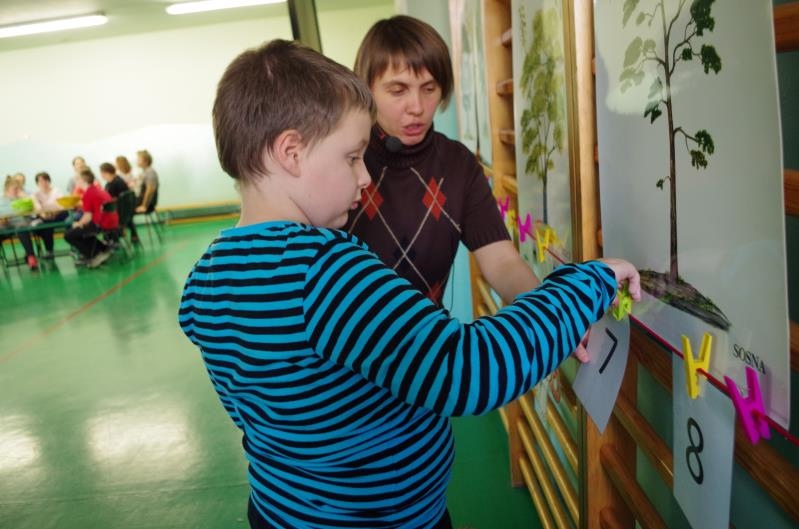 Tak jak zwykle było rozpoznawanie, nazywanie, liczenie, segregowanie i układanie wzorów. Tym razem uczniowie ćwiczyli te umiejętności z wykorzystaniem jesiennych leśnych skarbów tj. kolorowych liści, żołędzi, kasztanów, jarzębiny, bukowych orzeszków, szyszek itp. Uczestnicy konkursu przypomnieli sobie jak trzeba ubrać się na jesienny spacer, a także jakie zwierzęta można zobaczyć w lesie. Na pamiątkę wszystkim klasom zostały jesienne „ludziki”.