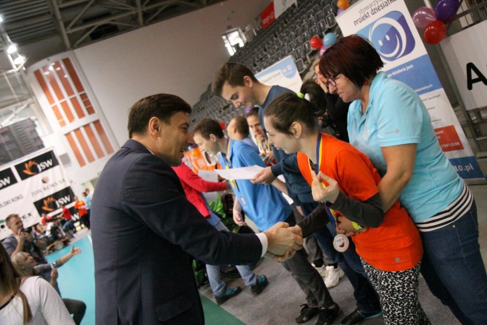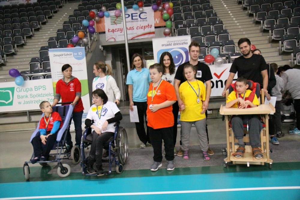 Dnia 27.10.2016r. nasi uczniowie: Patrycja, Weronika, Kasia, Artur, Szymon, Oskar, Michał, Jacek, Marcin oraz Adrian wzięli udział w Jubileuszowym - XX Śląskim Dniu Treningowym Programu Treningu Aktywności Motorycznej Olimpiad Specjalnych w Jastrzębiu Zdroju.