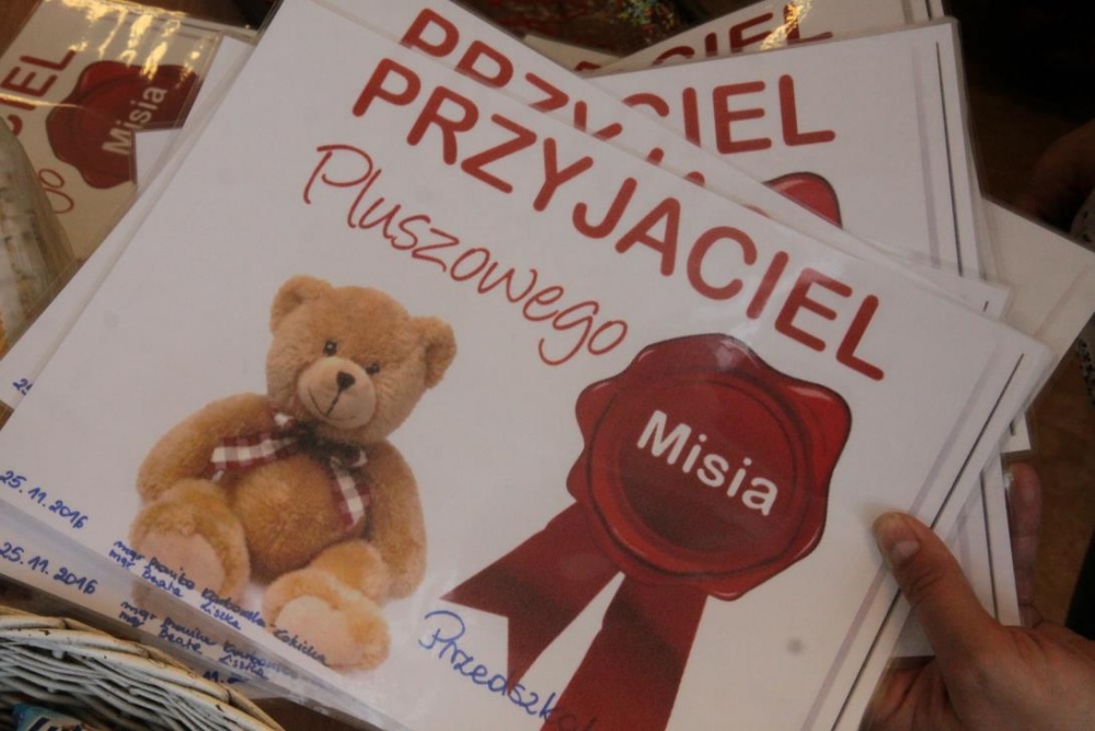 Dnia 25 listopada na całym świecie obchodzony jest Dzień Pluszowego Misia. W naszej szkole z tej okazji najmłodsi uczniowie przedszkolaki ,kl.I, IIa III a,b,c,d zaprosili 27 listopada do szkoły swoje Pluszowe Misie, by mogły wspólnie z nimi spędzić dzień. Mimo coraz nowocześniejszych i coraz bardziej atrakcyjnych zabawek, moda na misie nie przemija, bo "czy to jutro, czy to dziś, wszystkim jest potrzebny Miś!". Prócz swoich pluszaków do szkoły przyszedł gość specjalny Duży Pluszowy Miś , który razem z dziećmi bawił się ,śpiewał, uczył swojej ulubionej piosenki, którą zawsze się przedstawia wszystkim, obserwował milusińskich jak pięknie tworzą KSZTŁATKOWE MISIE z figur geometrycznych oraz portrety jego znajomych misiów „Kubusia Puchatka” , „Misi” z krainy szczęśliwości . A na koniec zorganizował słodki poczęstunek w postaci ciasta i lubisiów oraz rozdał małe prezenciki zdrowy „ Miodek” –bo to jest coś co misie lubią najbardziej:).