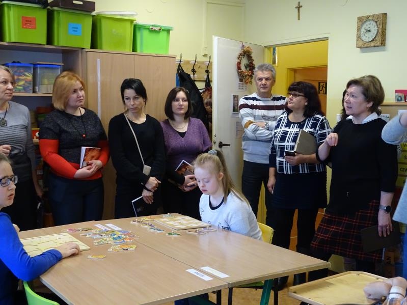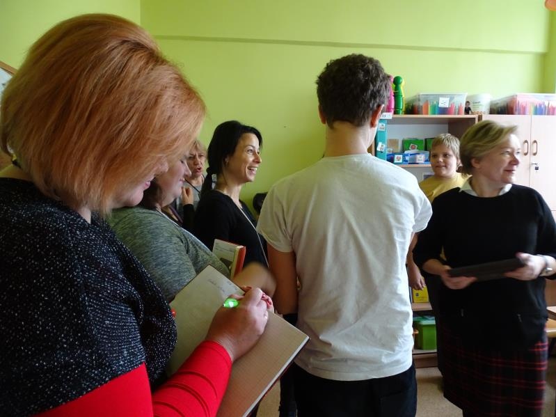 W dniach 21 - 25 listopada 2016 grupa siedmiu pedagogów specjalnych z litewskiego Kelme przebywała w naszej szkole w ramach stażu towarzyszącego (job shadowing), będącego integralną częścią Programu UE „Erasmus+”. Była to kontynuacja współpracy rozpoczętej trzy lata temu w Projekcie Partnerskim „Comenius”, kiedy podczas spotkań roboczych prezentowaliśmy m.in. dorobek naszej placówki oraz stosowane metody pracy. Na partnerach z Litwy szczególne wrażenie wywarła część pracy związanej z komunikacją alternatywną oraz integracją sensoryczną i te właśnie zagadnienia stanowiły bazę ich wizyty w Rybniku.