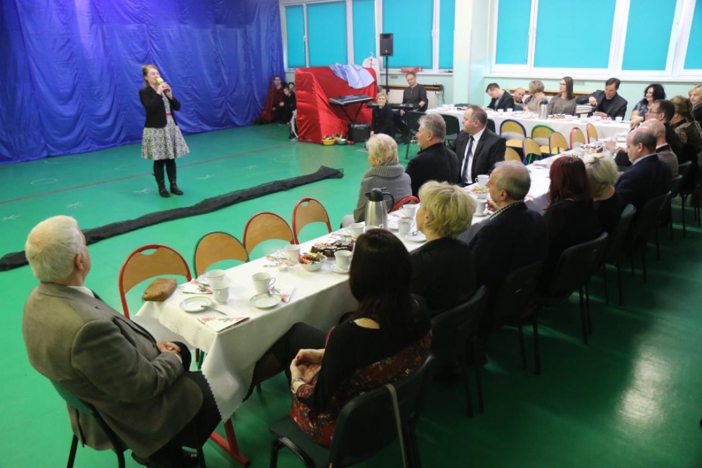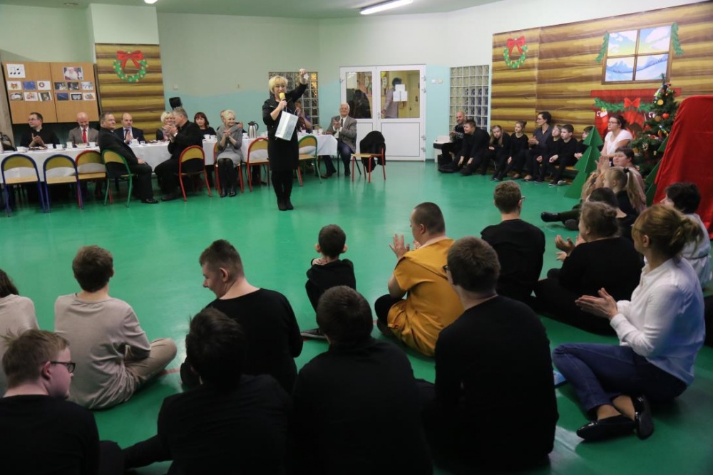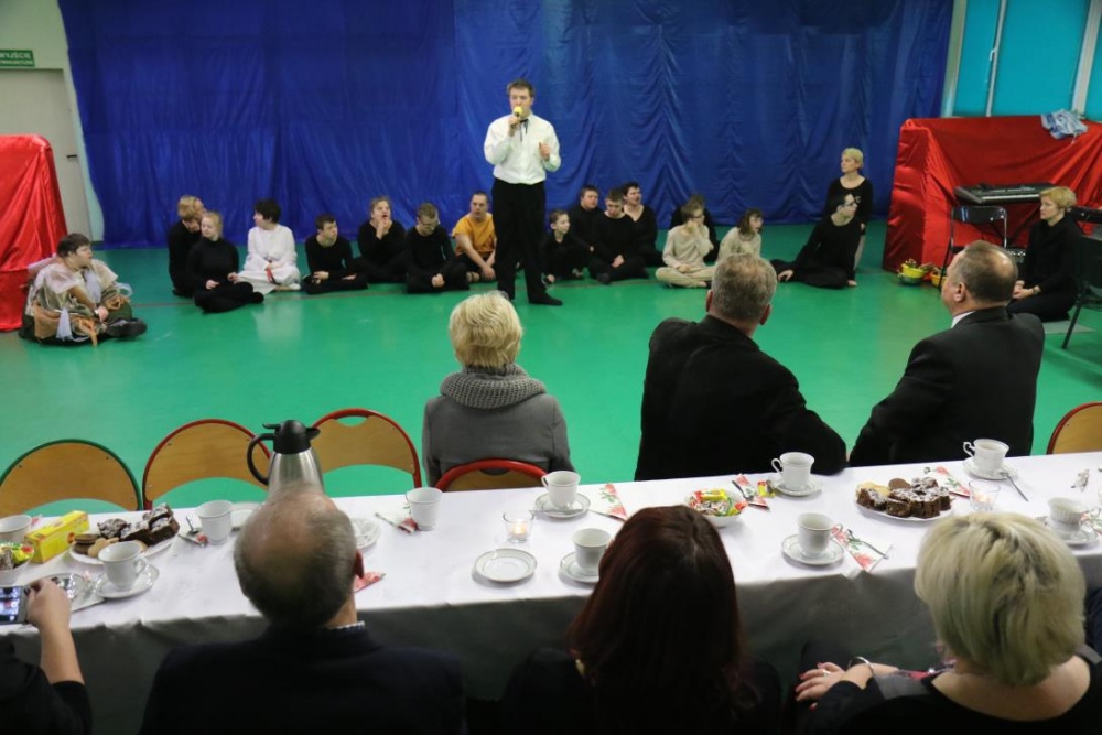 Dla szczególnych Gości wystąpili: BAJ ze spektaklem ,,Otwórz swe serce” oraz uczniowie w instrumentalnej interpretacji kolęd, a także gimnazjalista Piotr Ogon, który wykonał kolędę "Cicha noc" w języku polskim i angielskim.