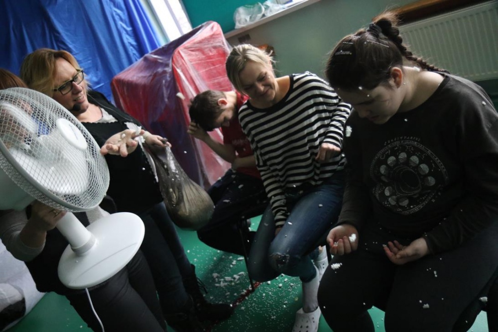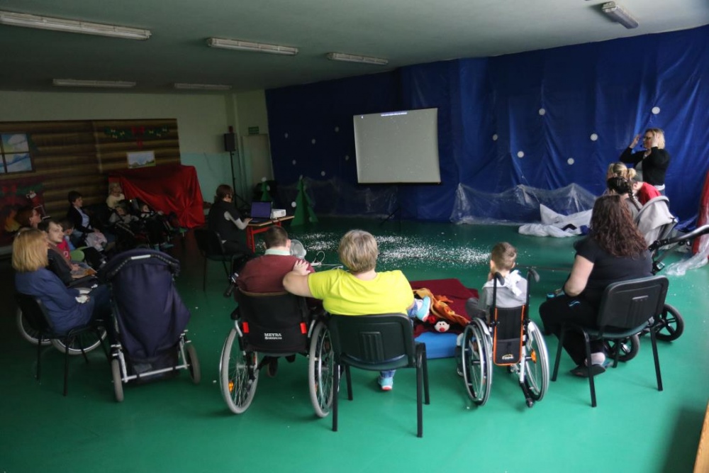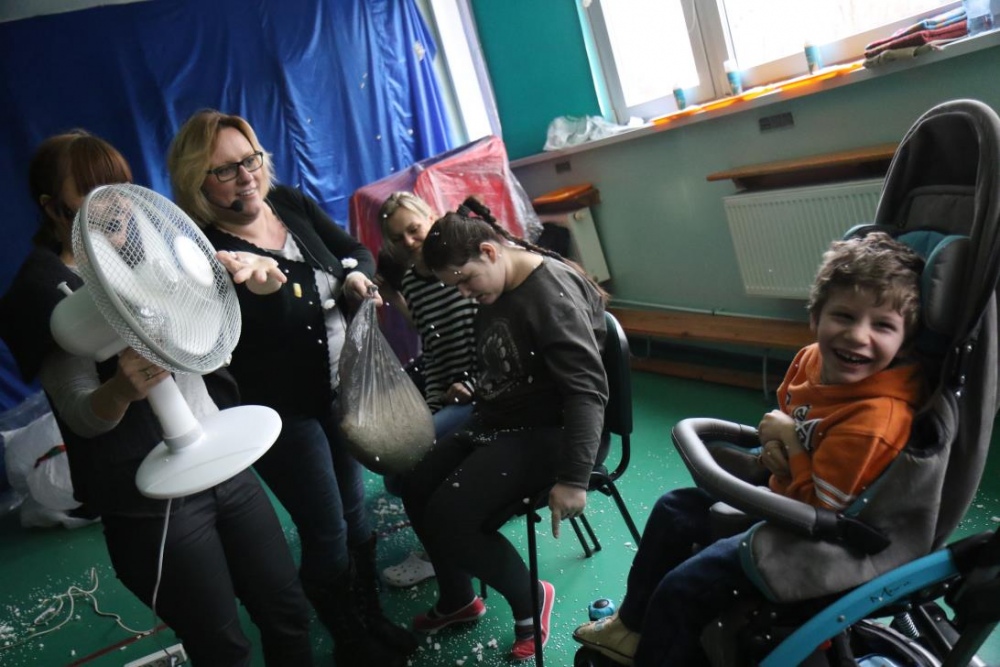 W otoczeniu zimowej scenerii i dźwiękach zimowych piosenek odbyły się w naszej szkole kolejne zajęcia otwarte dla grup rewalidacyjno – wychowawczych i przedszkolnych. Tym razem tematem przewodnim była ZIMA. Uczniowie rozbudzali swoje zmysły poprzez zabawy z użyciem foli, nadmuchiwanych worków i sztucznego śniegu wykonanego z pianki do golenia i sody. Dziękujemy wszystkim za dobrą zabawę i zapraszamy do galerii zdjęć.