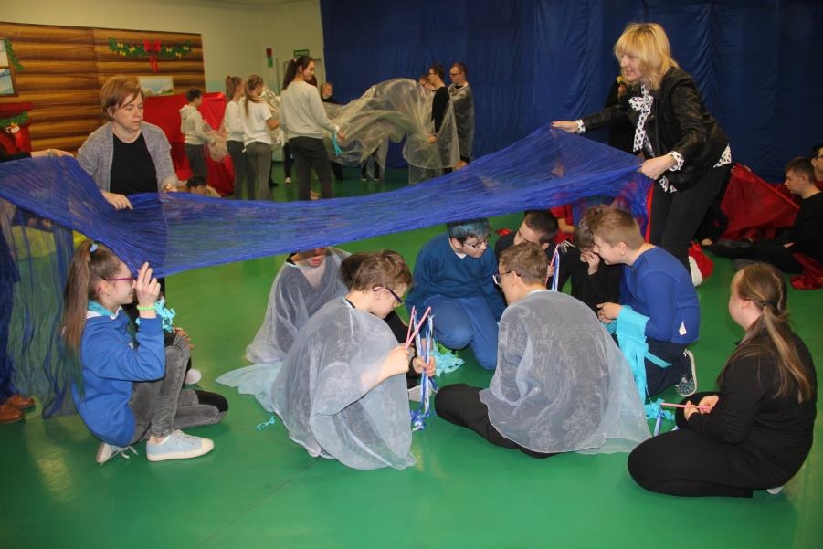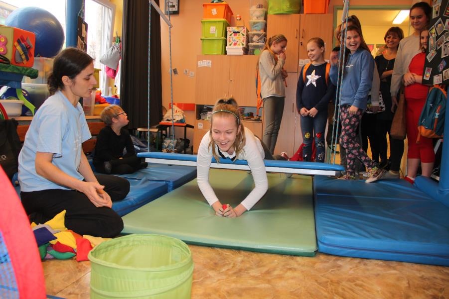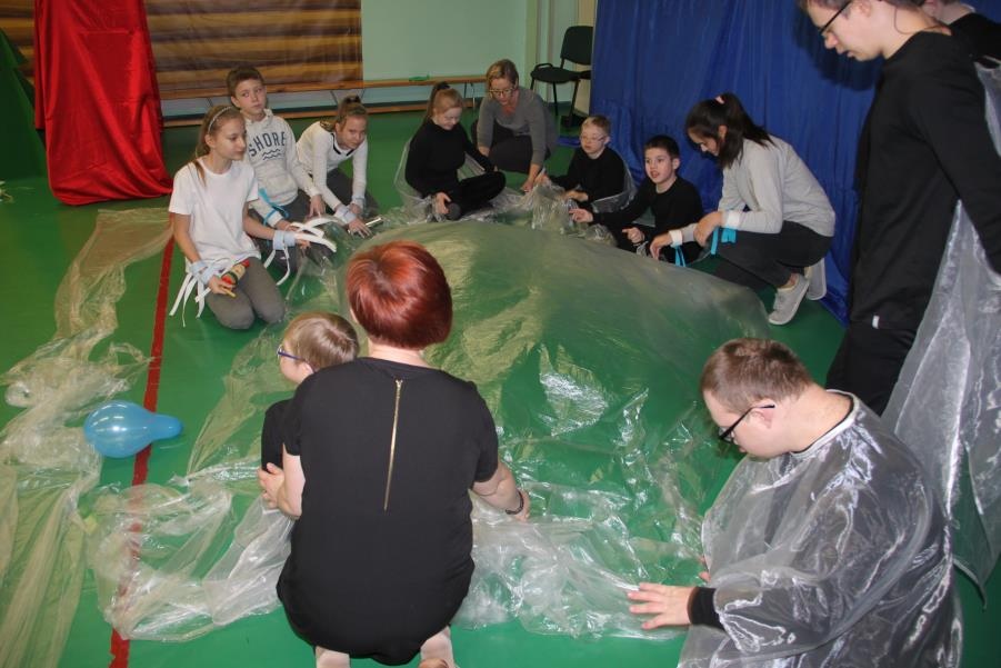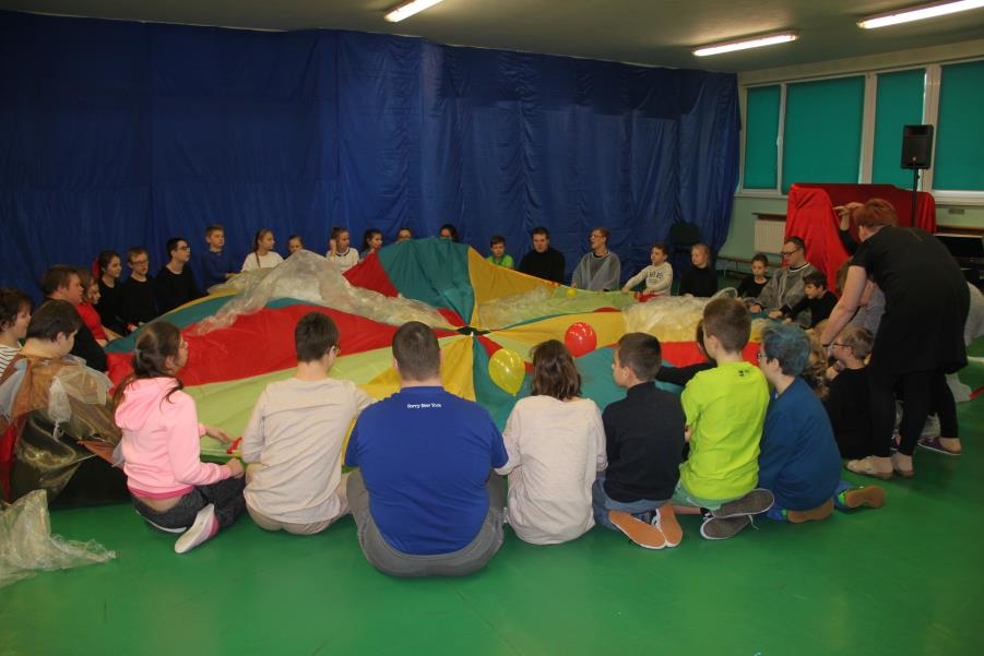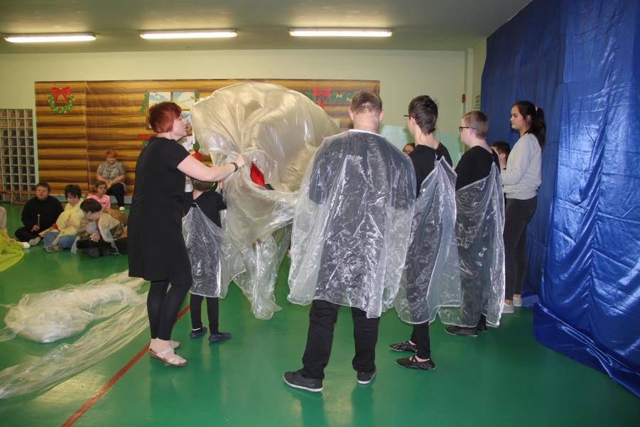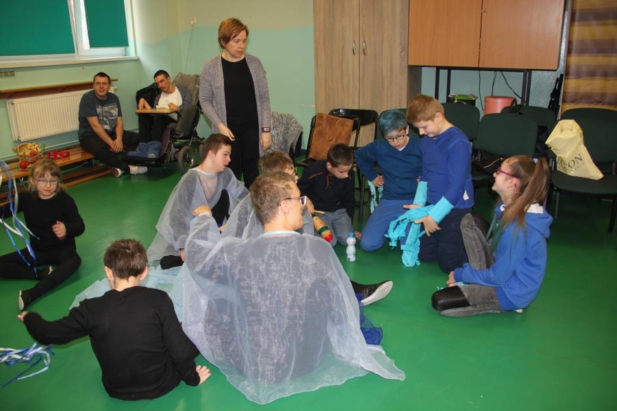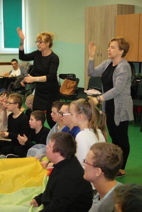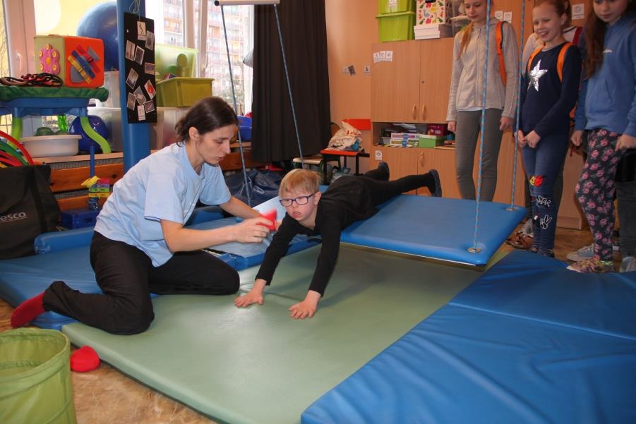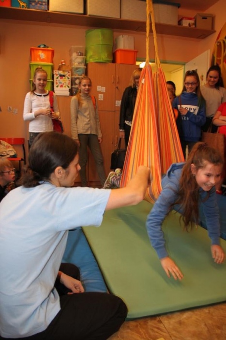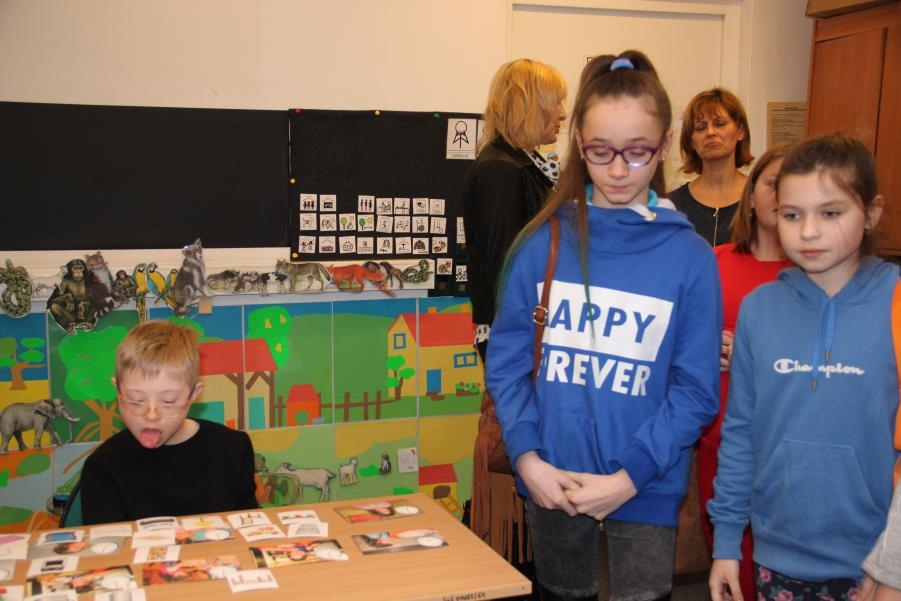 9 lutego 2017 roku odbyło się kolejne spotkanie z serii ,,Oswoić niepełnosprawność”. Tym razem na nasze zaproszenie odpowiedzieli uczniowie klasy V c - Zespołu Szkół Nr 5 w Żorach, pod opieką pań Beaty Goworowskiej i Gabrieli Panek. Wizytę rozpoczęli od zapoznania się z organizacją dnia w szkole, nauczanymi przedmiotami i prowadzonymi specjalistycznymi zajęciami. Następnie mieli okazję do obejrzenia niektórych gabinetów i prowadzonych zajęć. Goście mogli spróbować aktywności podczas terapii aktywności sensorycznej i stymulacji polisensorycznej. Zapoznali się