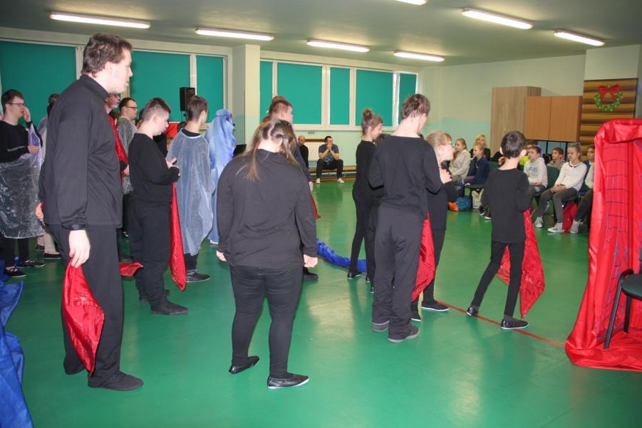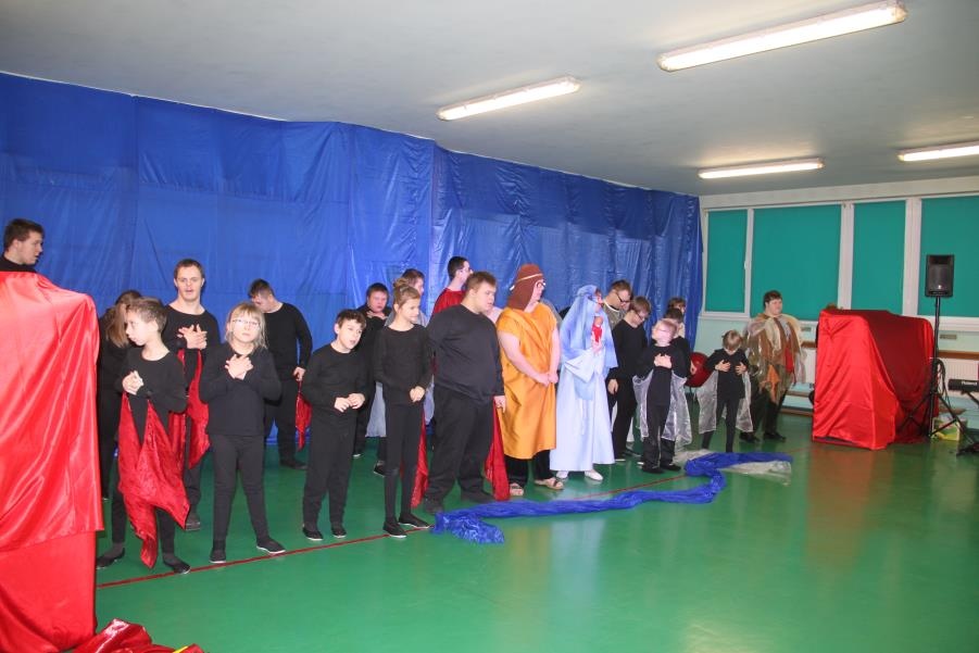 W tym czasie do występu, przygotował się zespół BAJ, który po raz ostatni wystąpił z spektaklem jasełkowym ,,Otwórz swe serce”. Przedstawienie było również wstępem do zajęć muzyczno – teatralnych, opartych na czterech żywiołach. Wszyscy uczniowie podzieleni na cztery grupy, na własny sposób – muzycznie i ruchowo, zinterpretowali żywioły.