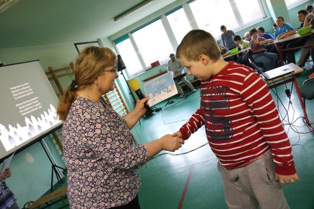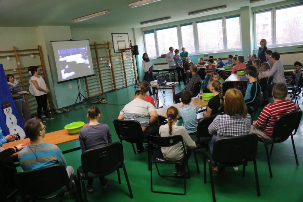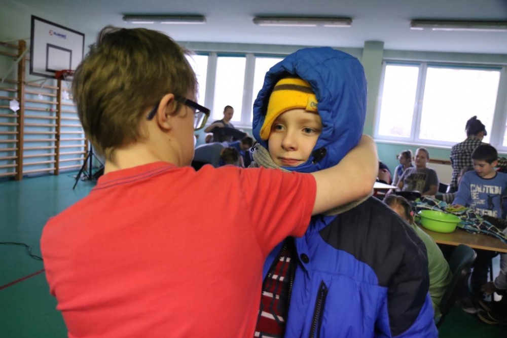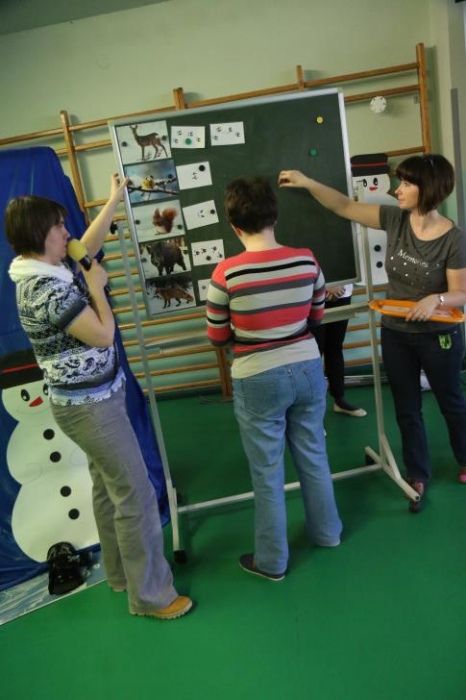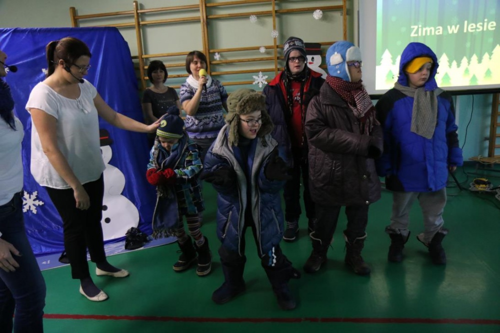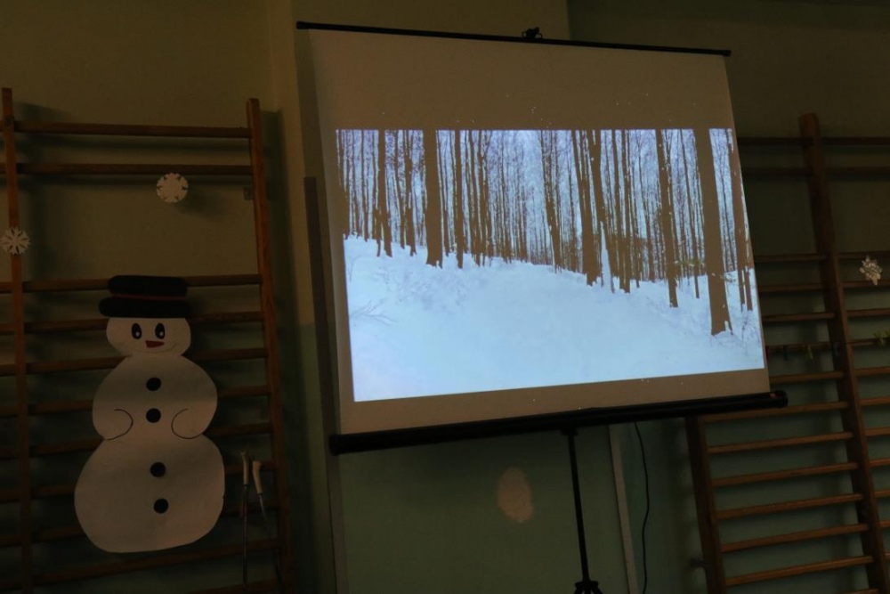 Na początek rozgrzewka - „test” wiedzy o zimie. Następnie uczestnicy musieli odpowiednio się ubrać na zimową wycieczkę oraz wybrać potrzebny sprzęt sportowy. W lesie podziwiali sarny, zające, lisa a nawet dziki (oczywiście z bezpiecznej odległości) oraz próbowali rozpoznać tropy tych zwierząt. Uczniowie pomogli też leśniczemu w zawiezieniu karmy do paśnika. A na koniec, jak na prawdziwy zimowy spacer przystało, ulepili bałwana.
