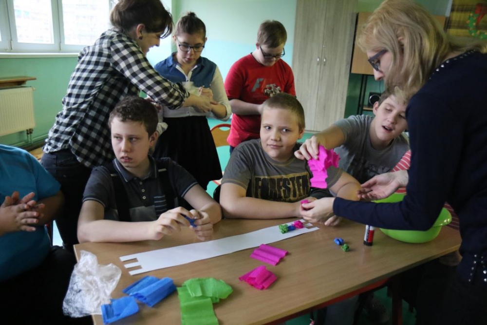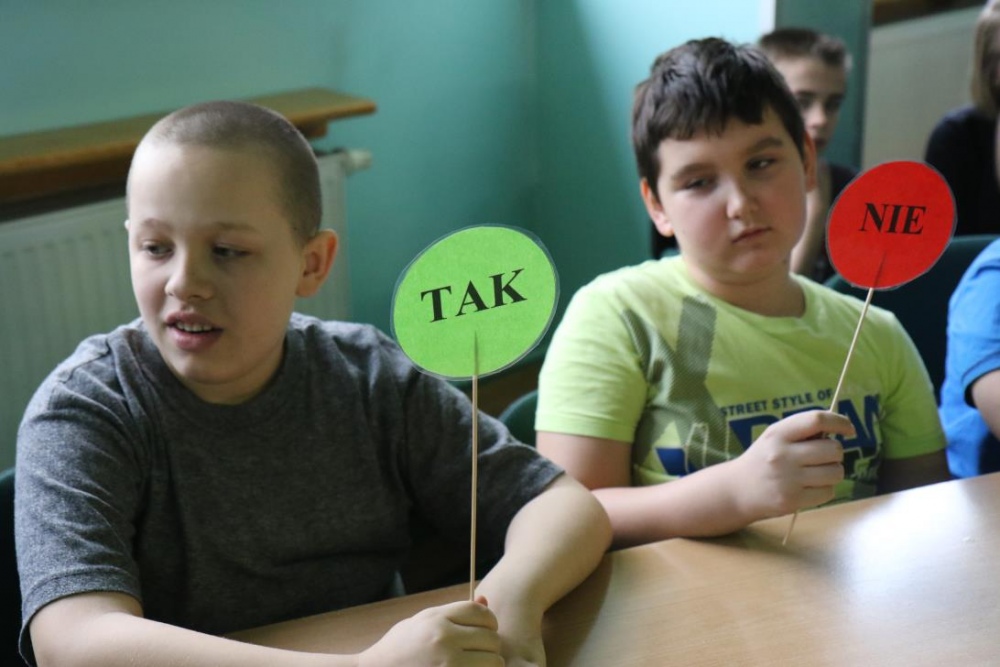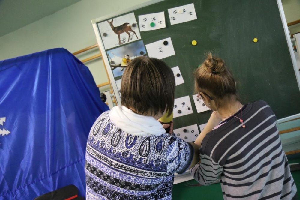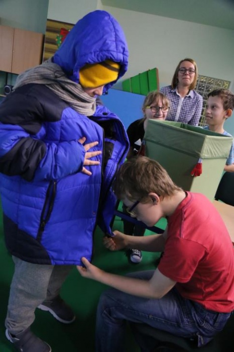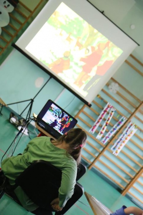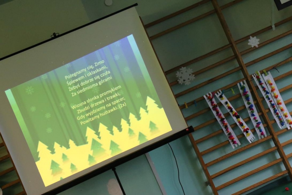 Na początek rozgrzewka - „test” wiedzy o zimie. Następnie uczestnicy musieli odpowiednio się ubrać na zimową wycieczkę oraz wybrać potrzebny sprzęt sportowy. W lesie podziwiali sarny, zające, lisa a nawet dziki (oczywiście z bezpiecznej odległości) oraz próbowali rozpoznać tropy tych zwierząt. Uczniowie pomogli też leśniczemu w zawiezieniu karmy do paśnika. A na koniec, jak na prawdziwy zimowy spacer przystało, ulepili bałwana.