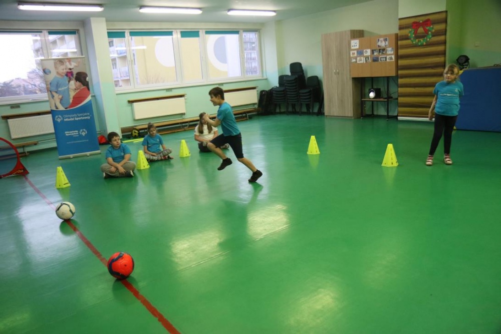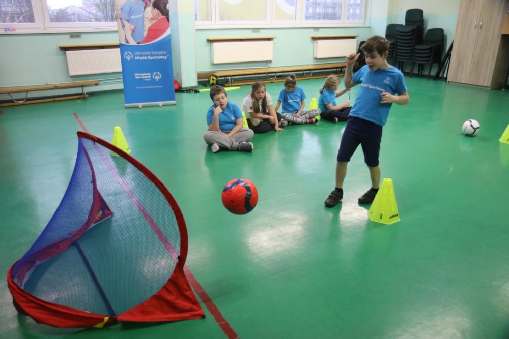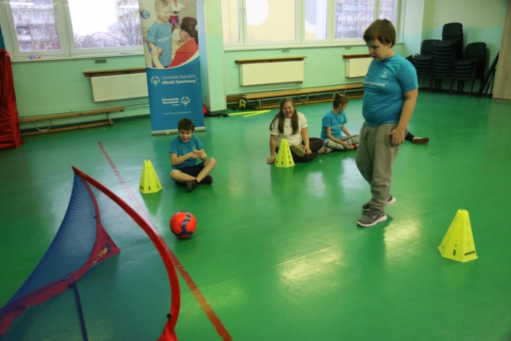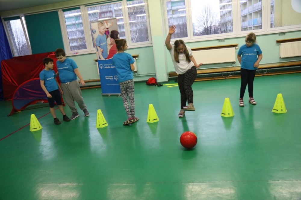 Grupa najmłodszych uczniów naszej szkoły ma okazję uczestniczyć w cyklu dodatkowych zajęć sportowych w ramach realizowanego przez Klub PROMYK Programu MŁODZI SPORTOWCY Olimpiad Specjalnych.