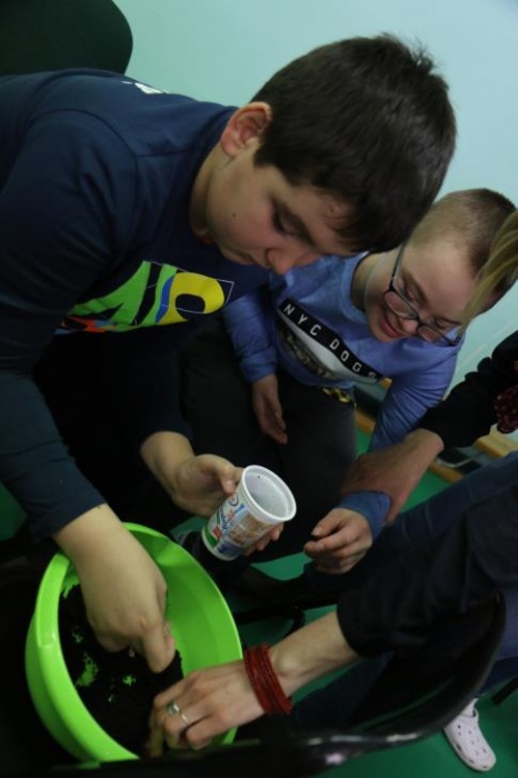 22 marca 2017r. po raz kolejny spotkaliśmy się na zajęciach polisensorycznych dla grup rewalidacyjno – wychowawczych. Tym razem rozbudzaliśmy zmysły inspirując się wiosną i wszystkim tym, co ze sobą niesie: zapachy kwiatów, soczyste smaki i kolory. Efektem naszych zajęć było wspólne sadzenie cebulek szalotki. Mamy nadzieję, że na kolejnym spotkaniu będziemy mogli jej już skosztować.