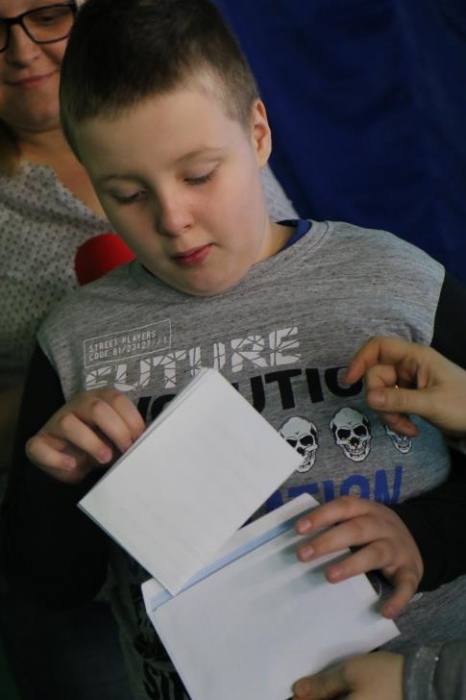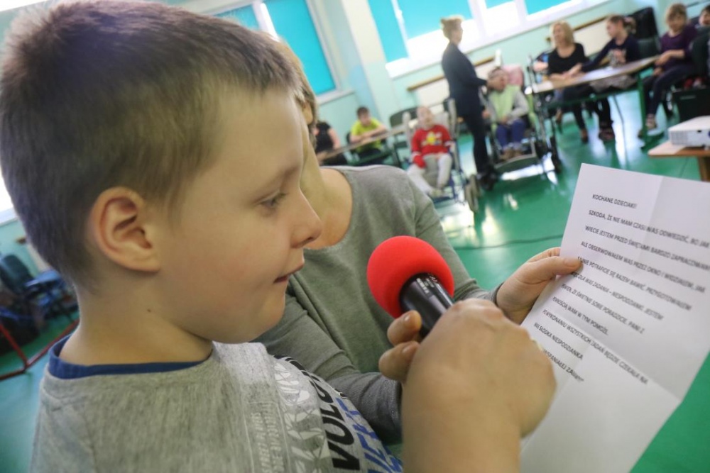 Zajączek na spotkaniu wprawdzie się nie pojawił, ale za to zostawił LIST skierowany do zebranych na sali dzieci. Zaprosił w nim wszystkich do wspólnych wielkanocnych zabaw. Były świąteczne zagadki, wiosenne piosenki z gestami MAKATON, zadanie sprawnościowe "przenoszenie jajek". oraz tematyczna bajka. Uczniowie wykonali także papierowe, niezwykle sympatyczne zajączki. Wielkanocny zajączek na zakończenie miał dla uczestników zabawy niespodziankę w postaci czekoladowych jajeczek i żółciutkich kurczaczków:)