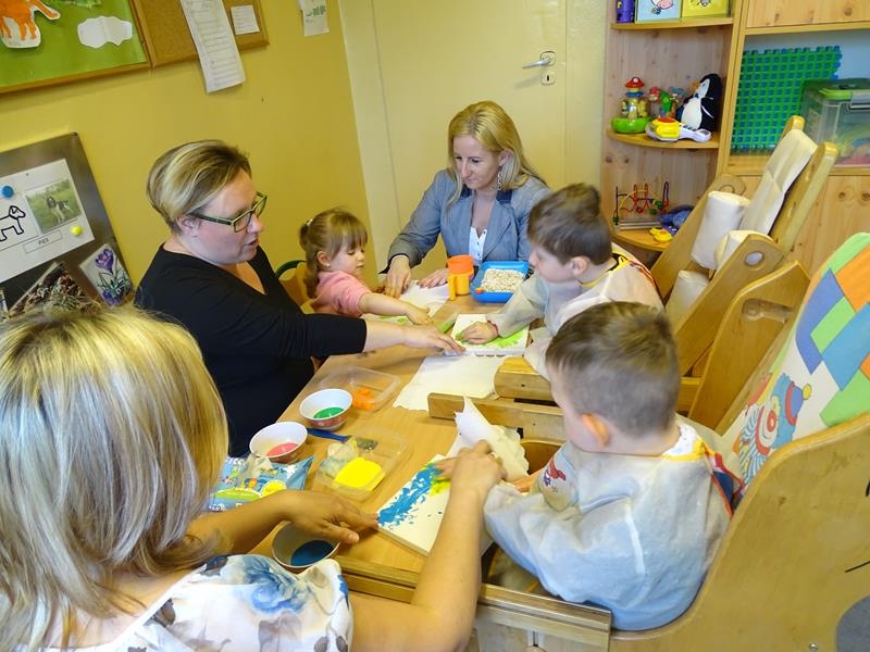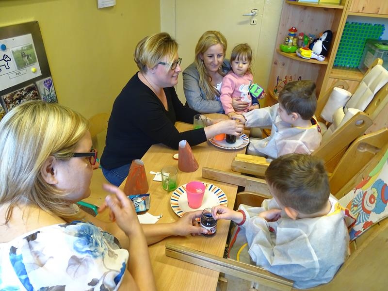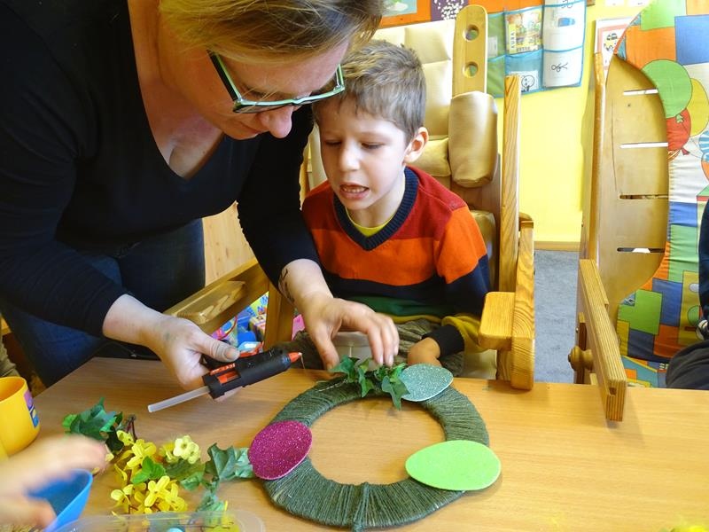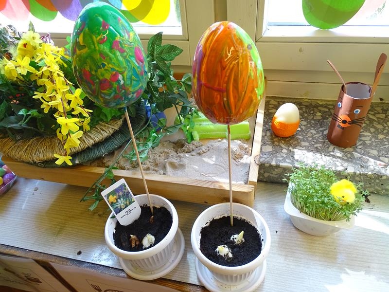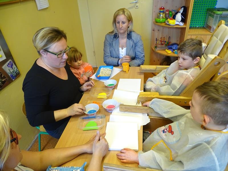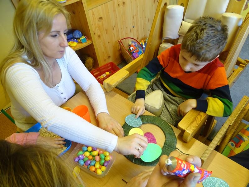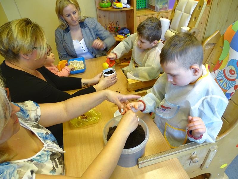 10 kwietnia odbyły się w grupie przedszkolnej zajęcia otwarte dla rodziców, które to rozpoczęły się od wspólnego wykonania naszych przedszkolaków z rodzicami kolejnego ekscytującego eksperymentu małych naukowców-WULKANU. Po eksperymencie zmieniliśmy się w ogrodników i sadziliśmy cebulki irysów i sialiśmy rzeżuchę a następnie przeobraziliśmy się w artystów plastyków malując na płótnach swoją własną wiosnę, ozdabiając styropianowe jajka i zajączki i wykonując wspólnie z rodzicami świąteczne wianki na drzwi. Przy stole dominował radosny nastrój okraszony zapachem trawy cytrynowej, waniliowej babki oraz unoszącą się w tle nieśmiało muzyką Vivaldiego „Cztery pory roku - WIOSNA”.