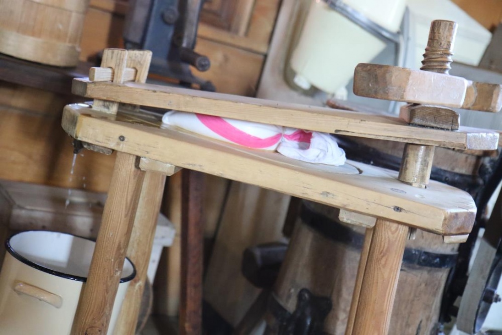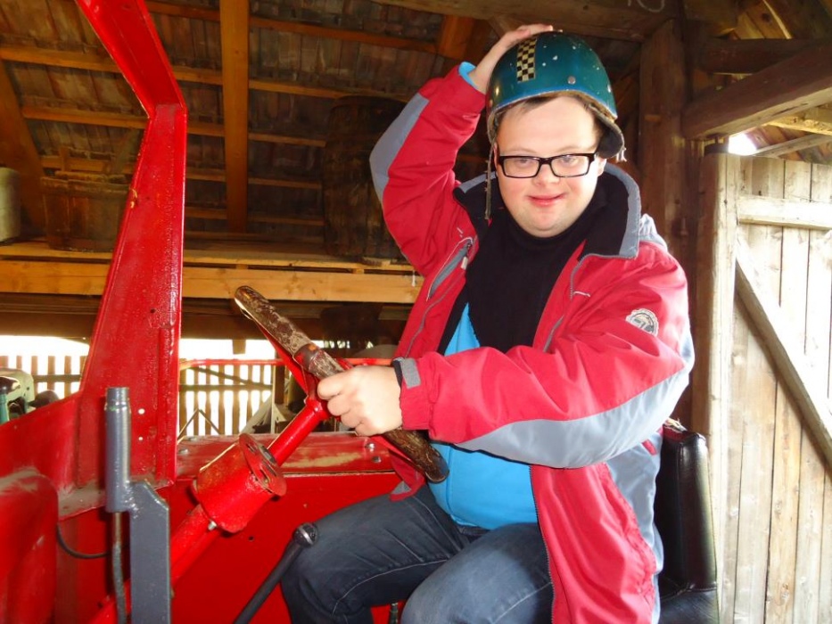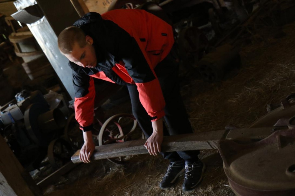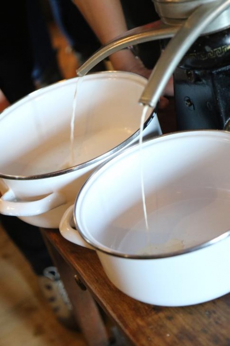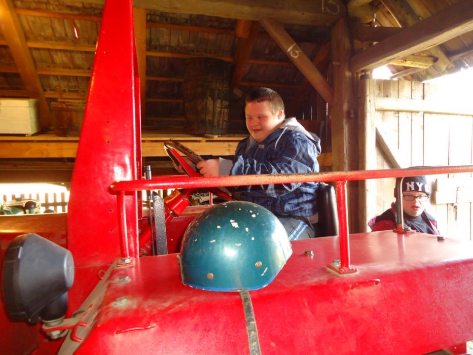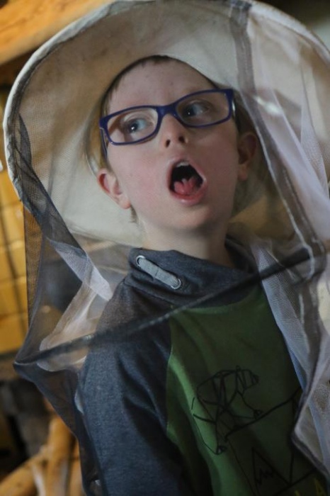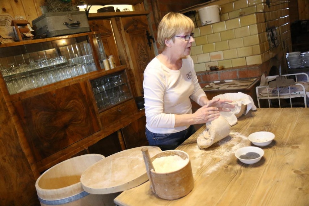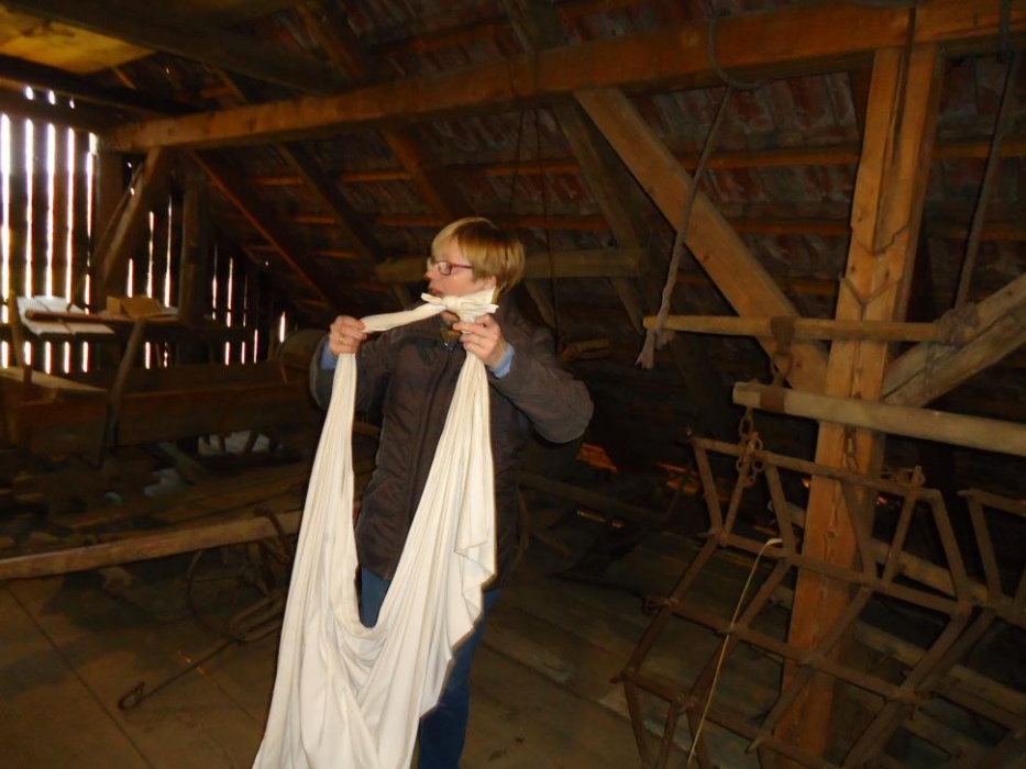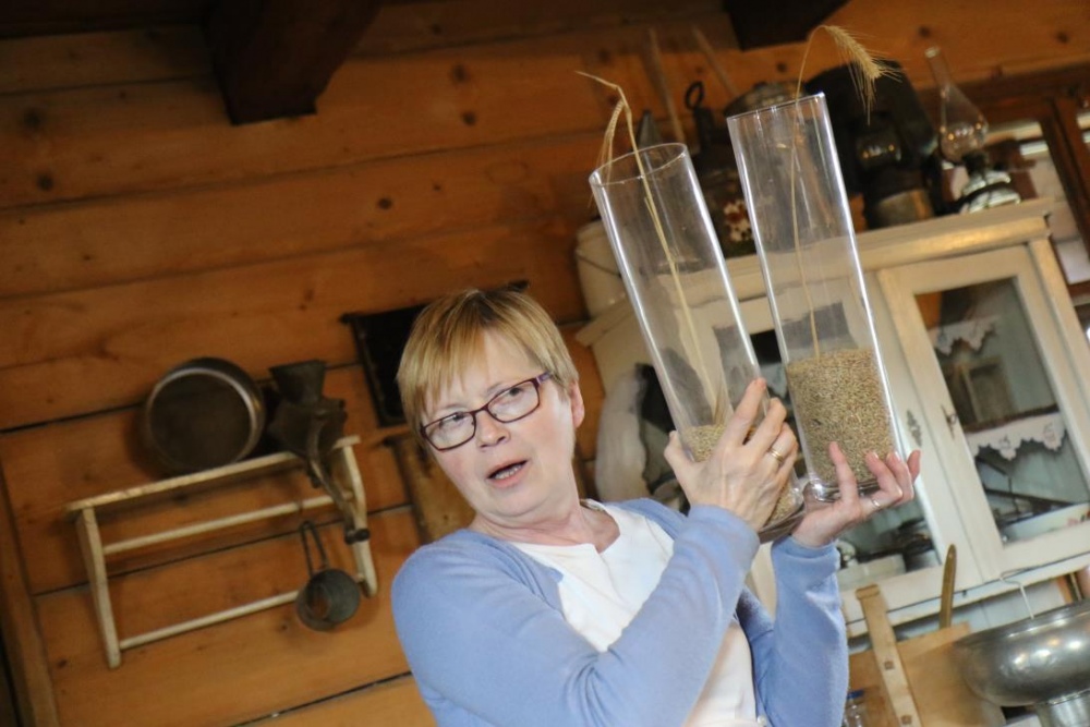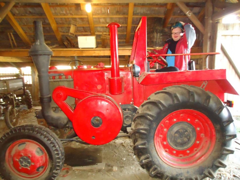 Po obiedzie z kolei czekała nas spora atrakcja - wycieczka do CHLEBOWEJ CHATY. Tam mogliśmy posłuchać, poobserwować, ale najważniejsze - doświadczyć szeregu bardzo ciekawych rzeczy związanych z wyrobem chleba, wyrobem produktów nabiałowych z wykorzystaniem dawnych sprzętów, czy z powstawaniem miodu. I tak nasi uczniowie: oddzielali śmietankę od mleka, ubijali i formowali masło, osiewali mąkę, wypiekali podpłomyki, degustowali wypieki i kawę zbożową, próbowali także czynności związanych z młóceniem cepami, mielili zboże na żarnach, siadali "za kierownicą" traktorów:)