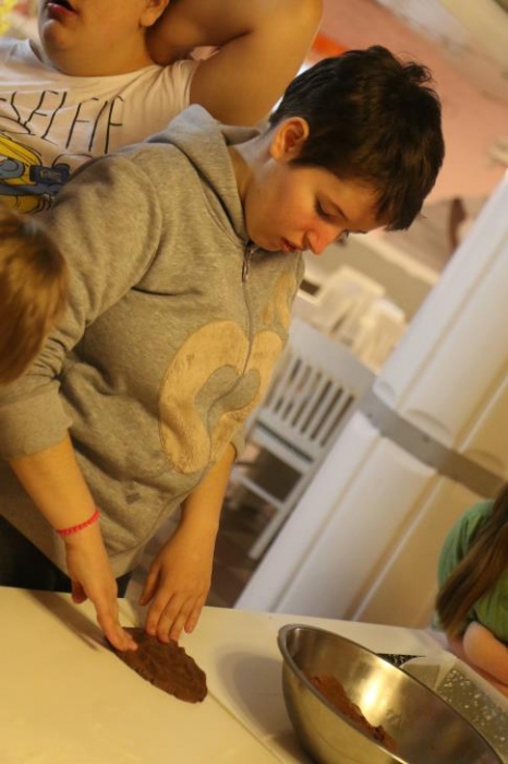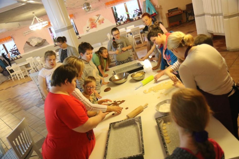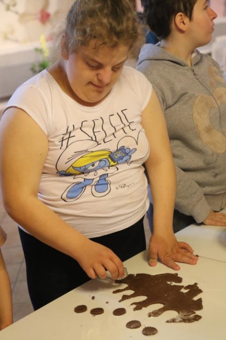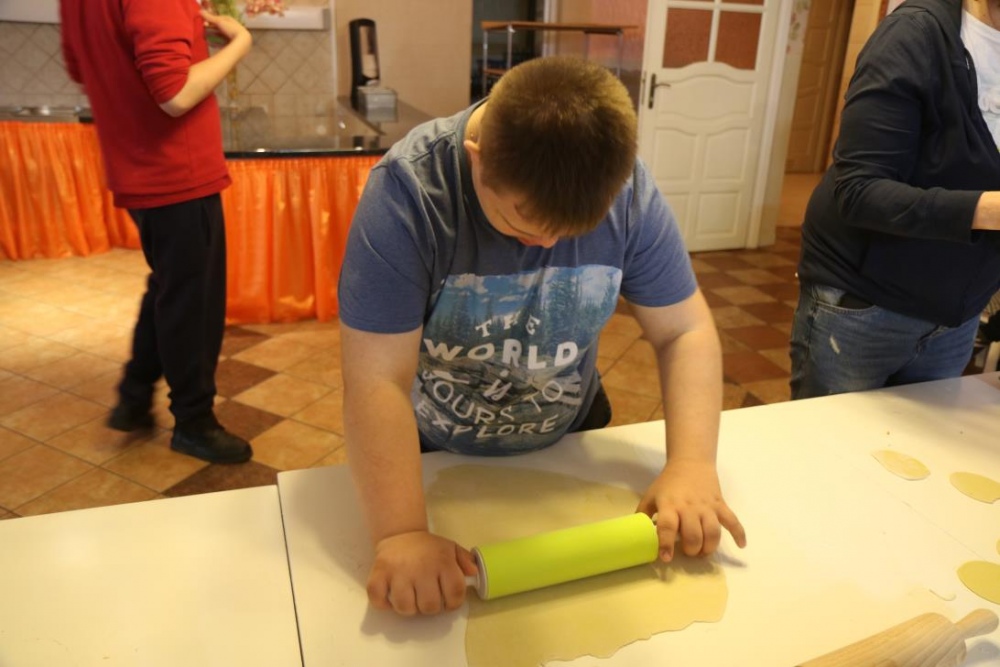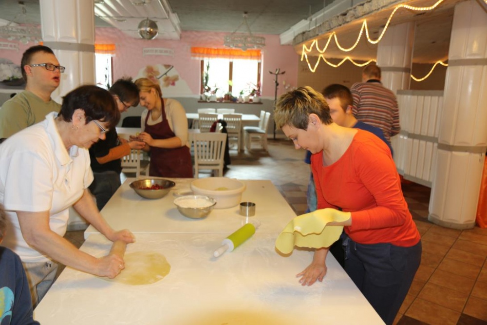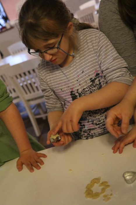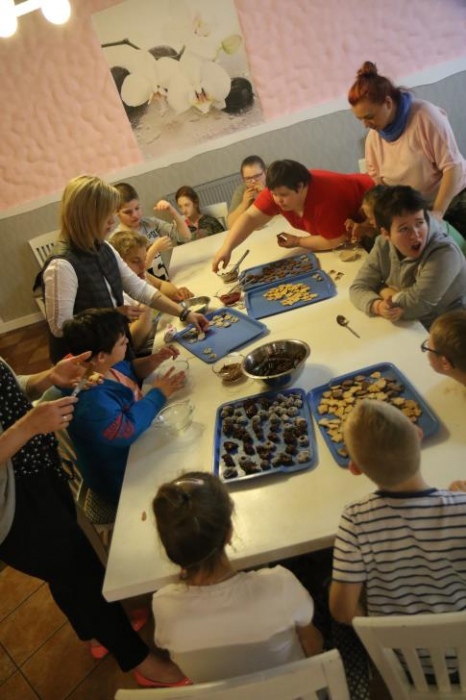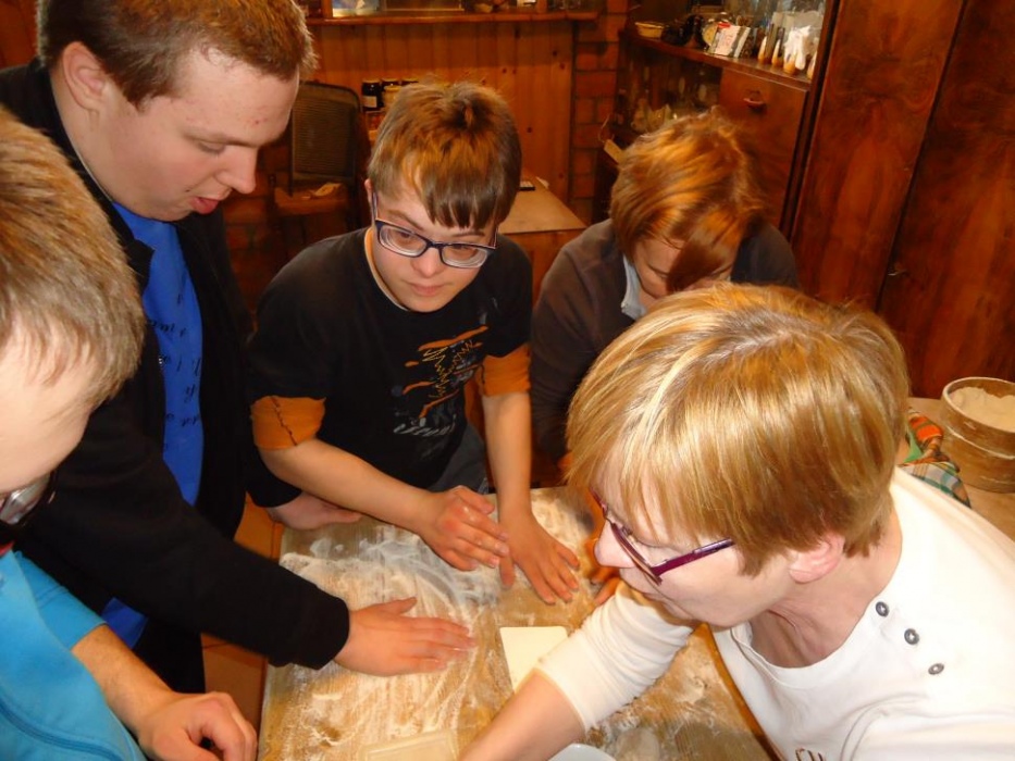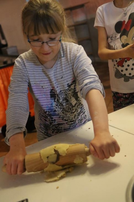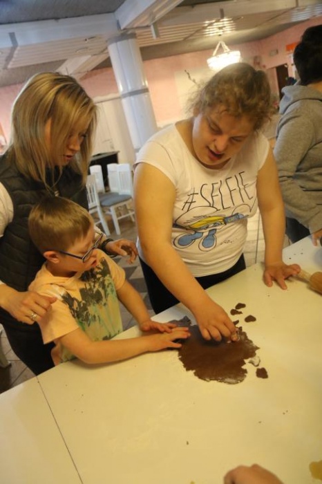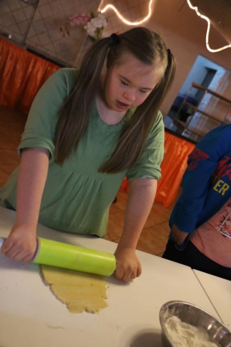 V DZIEŃ - ŚRODA - 26 kwietnia 2017r. - dzisiejszego dnia mogliśmy złapać trochę oddechu, co załatwiła nam nieco mniej sprzyjająca aura. Do południa jedna z grup wzięła udział w warsztatach kulinarnych. Tym razem uczestnicy rozwijali swoje umiejętności w zakresie robienia kruchych ciasteczek. Mieli okazję wałkować ciasto, wykrawać foremkami, a upieczone ciasteczka przyozdabiać. Pani prowadząca zajęcia miała dla uczestników niespodziankę. W czasie oczekiwania na ciasteczka, przyniosła dla wszystkich gotowe ciasto, które wystarczyło uformować i od razu się poczęstować. Był to raj dla wielbicieli słodkości:)