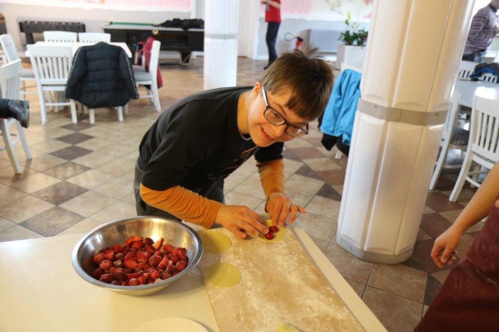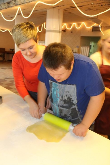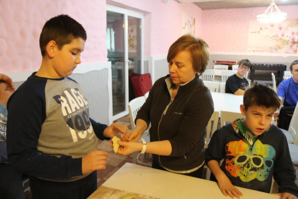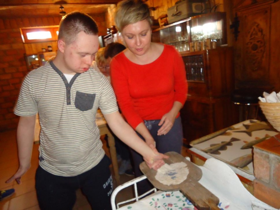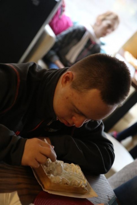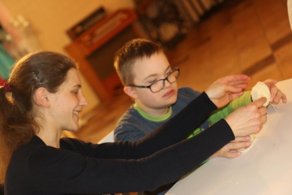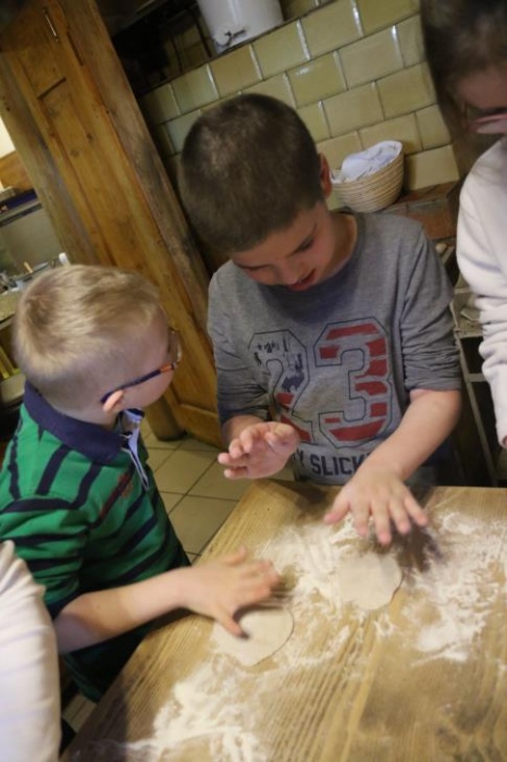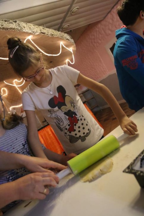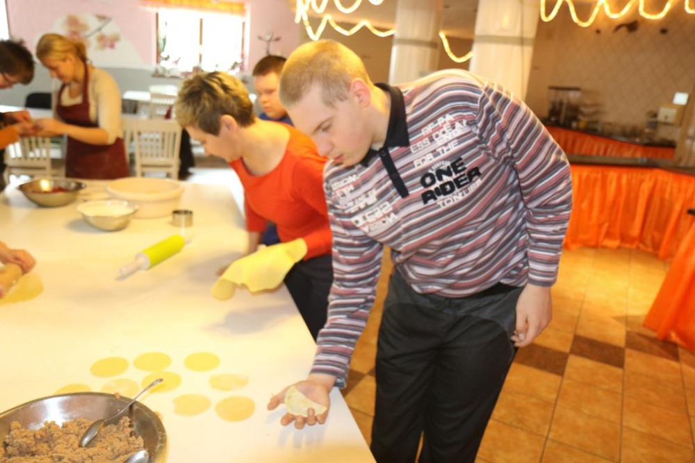 V DZIEŃ - ŚRODA - 26 kwietnia 2017r. - dzisiejszego dnia mogliśmy złapać trochę oddechu, co załatwiła nam nieco mniej sprzyjająca aura. Do południa jedna z grup wzięła udział w warsztatach kulinarnych. Tym razem uczestnicy rozwijali swoje umiejętności w zakresie robienia kruchych ciasteczek. Mieli okazję wałkować ciasto, wykrawać foremkami, a upieczone ciasteczka przyozdabiać. Pani prowadząca zajęcia miała dla uczestników niespodziankę. W czasie oczekiwania na ciasteczka, przyniosła dla wszystkich gotowe ciasto, które wystarczyło uformować i od razu się poczęstować. Był to raj dla wielbicieli słodkości:)