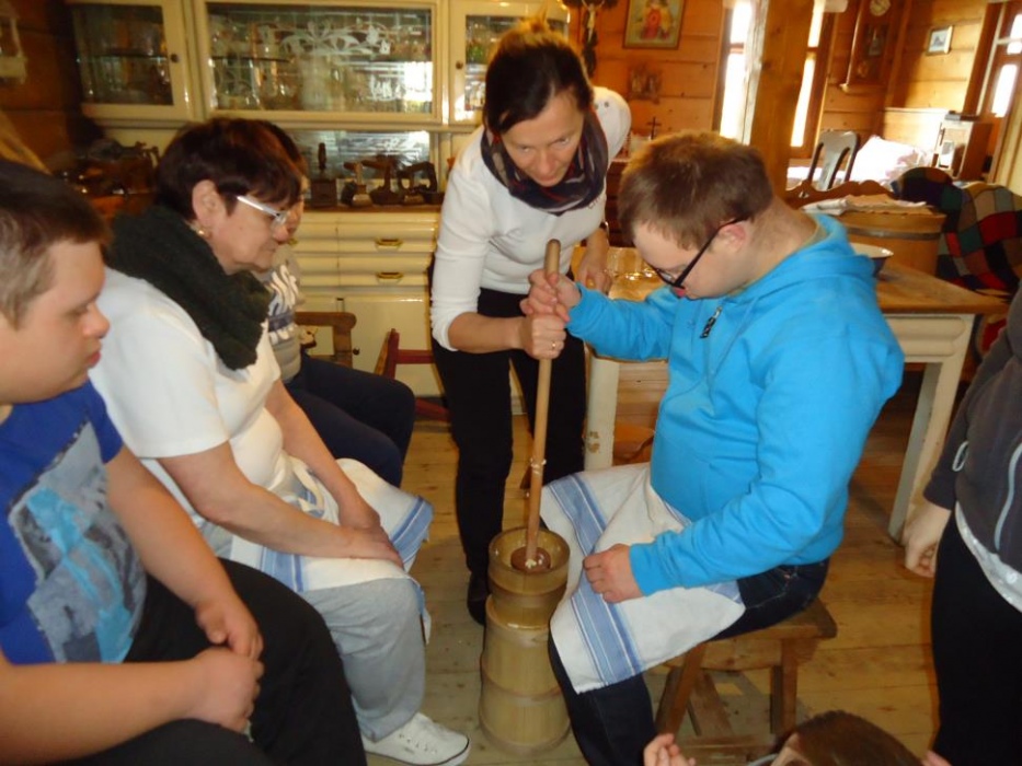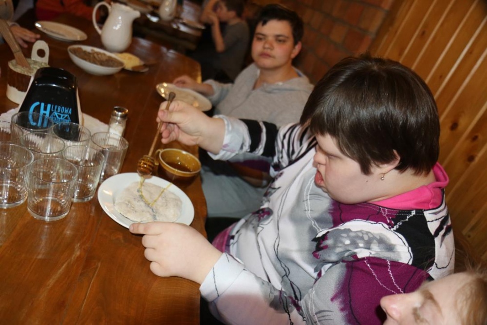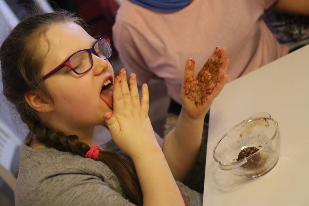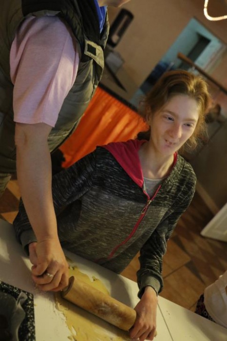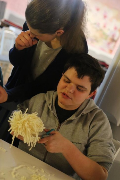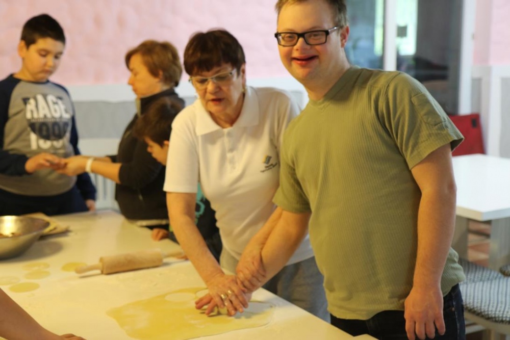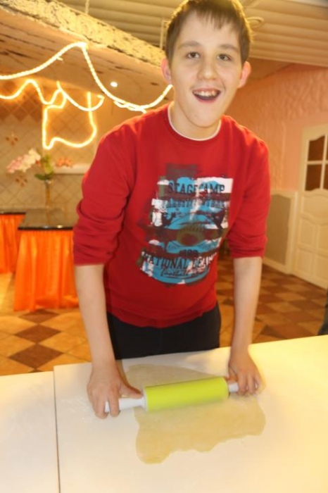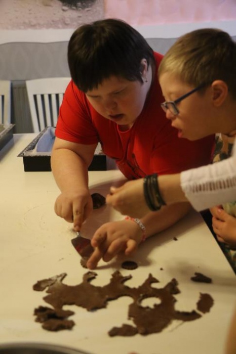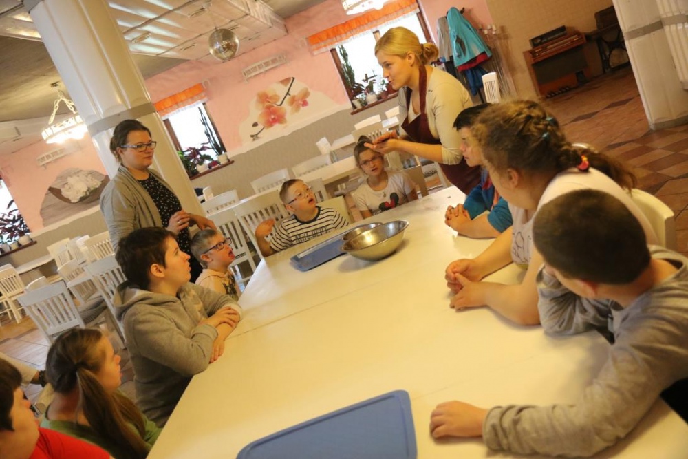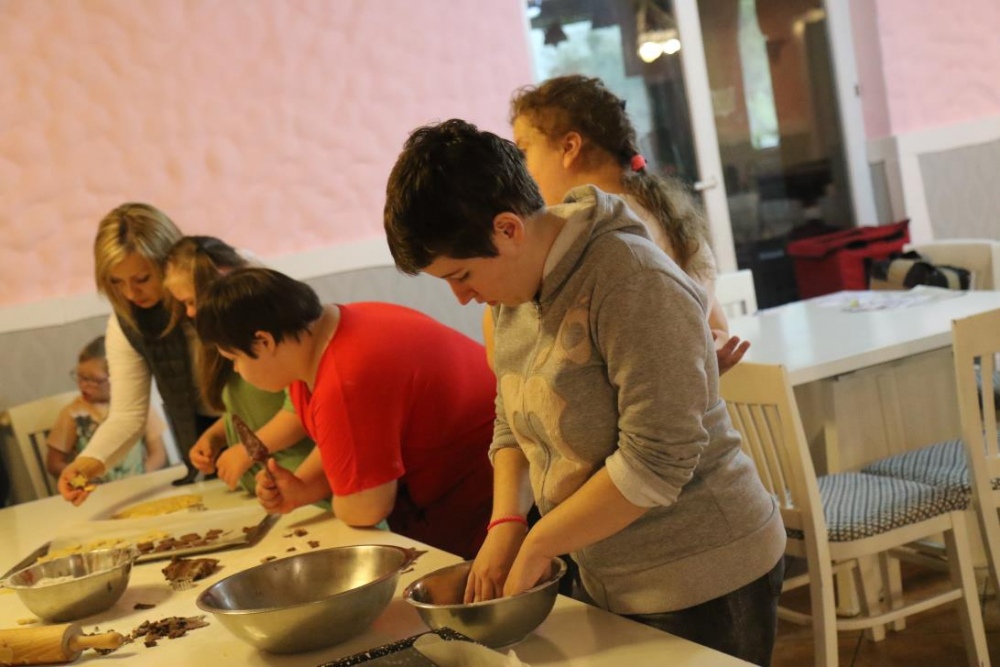 V DZIEŃ - ŚRODA - 26 kwietnia 2017r. - dzisiejszego dnia mogliśmy złapać trochę oddechu, co załatwiła nam nieco mniej sprzyjająca aura. Do południa jedna z grup wzięła udział w warsztatach kulinarnych. Tym razem uczestnicy rozwijali swoje umiejętności w zakresie robienia kruchych ciasteczek. Mieli okazję wałkować ciasto, wykrawać foremkami, a upieczone ciasteczka przyozdabiać. Pani prowadząca zajęcia miała dla uczestników niespodziankę. W czasie oczekiwania na ciasteczka, przyniosła dla wszystkich gotowe ciasto, które wystarczyło uformować i od razu się poczęstować. Był to raj dla wielbicieli słodkości:)