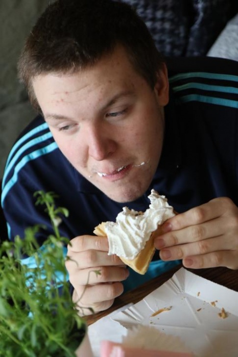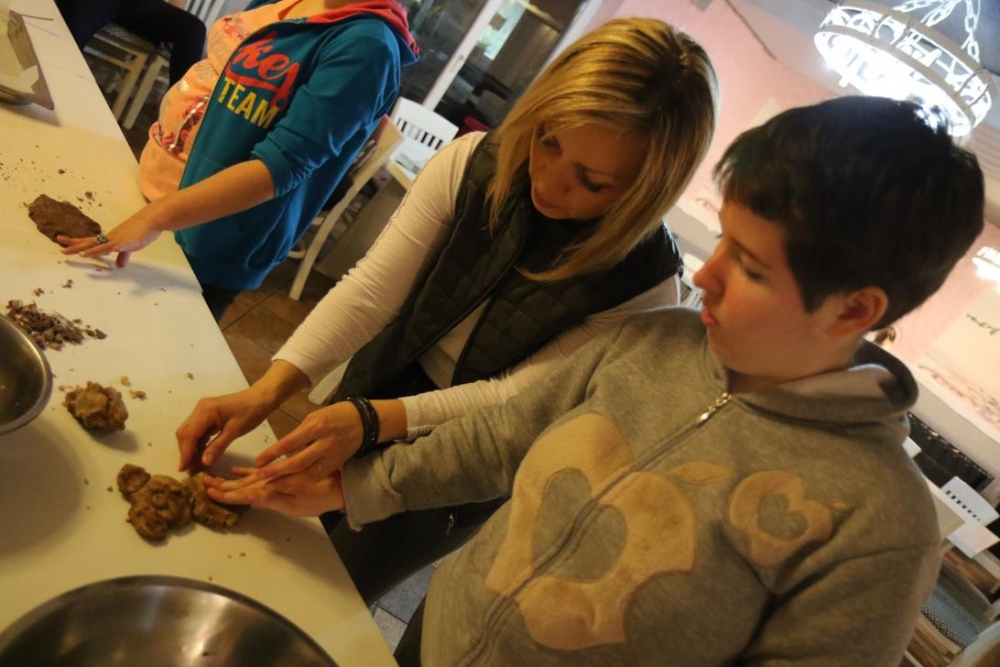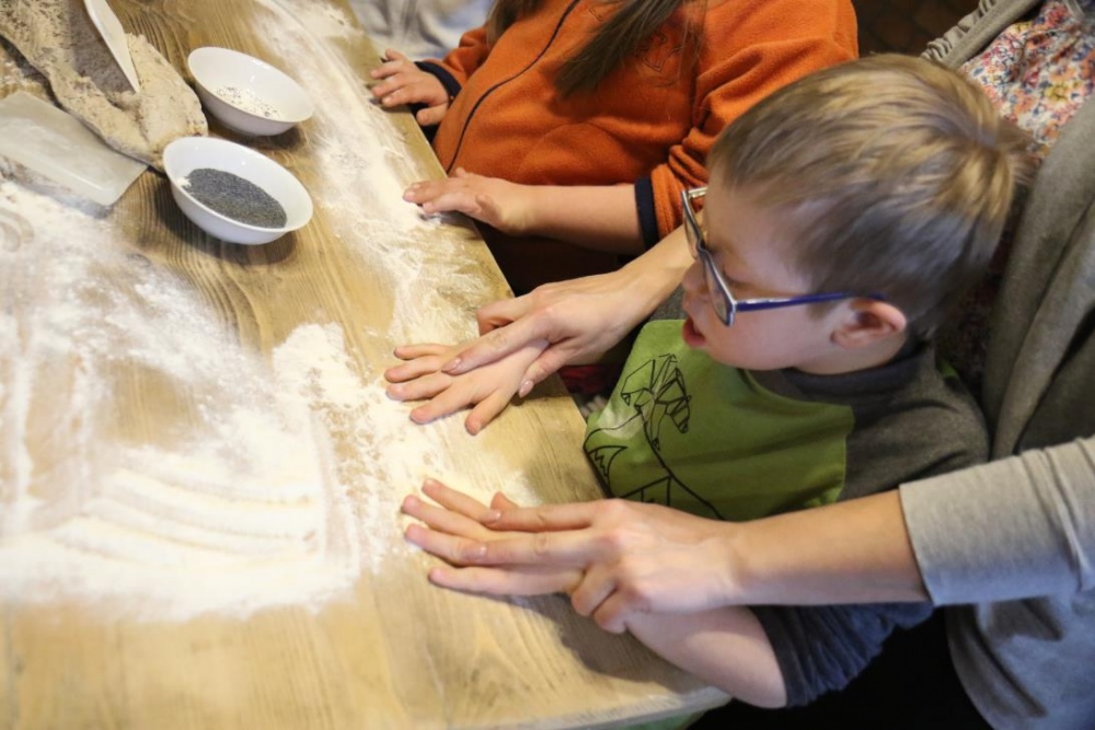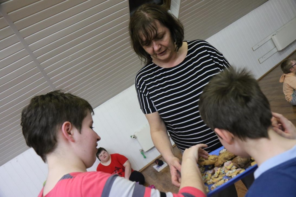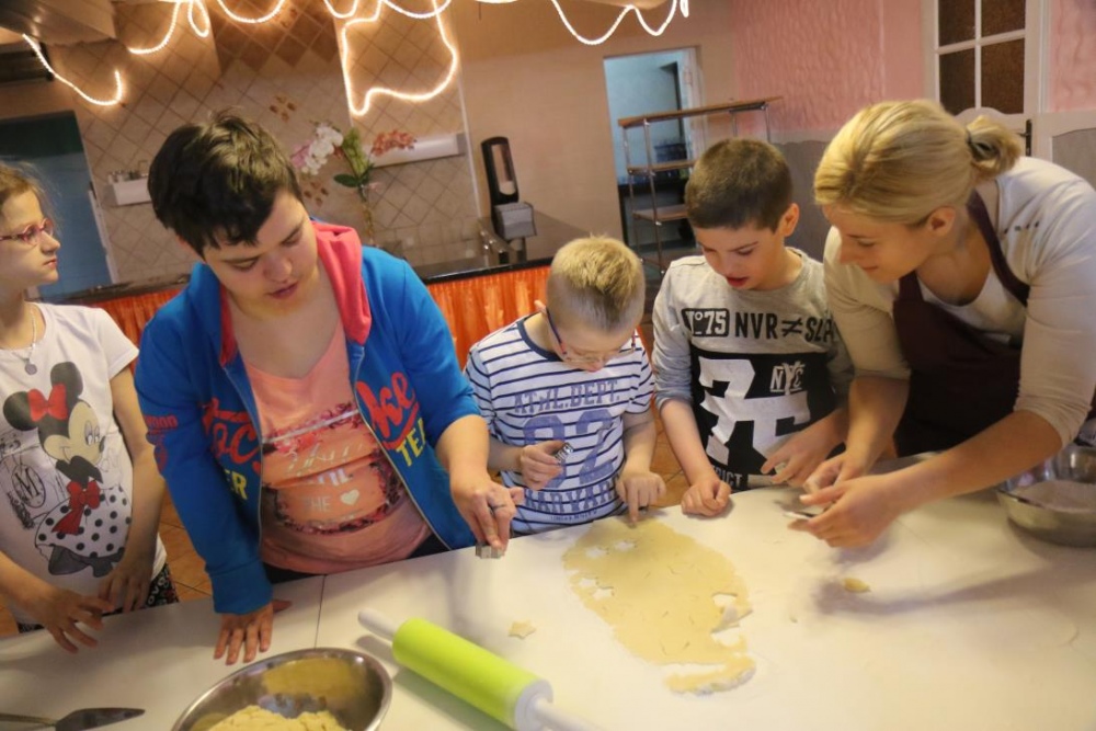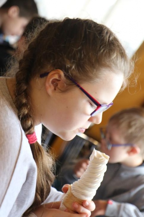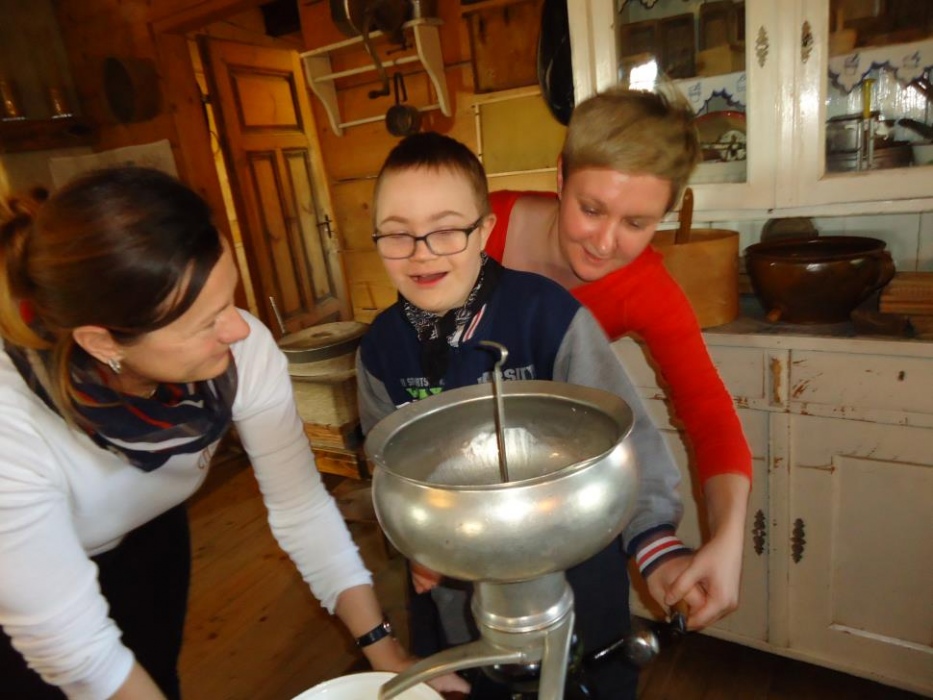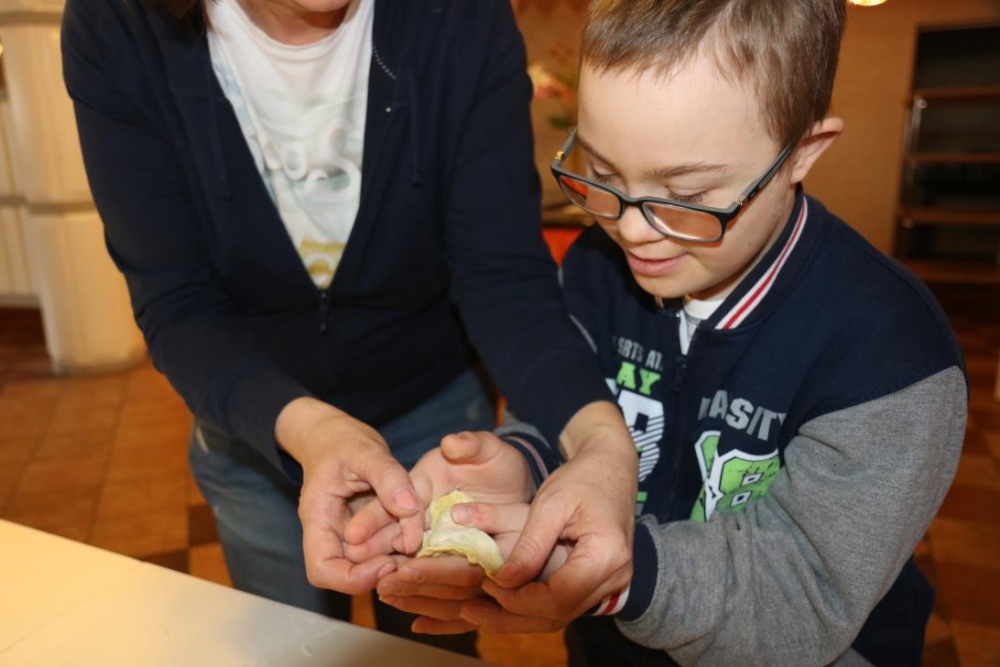 V DZIEŃ - ŚRODA - 26 kwietnia 2017r. - dzisiejszego dnia mogliśmy złapać trochę oddechu, co załatwiła nam nieco mniej sprzyjająca aura. Do południa jedna z grup wzięła udział w warsztatach kulinarnych. Tym razem uczestnicy rozwijali swoje umiejętności w zakresie robienia kruchych ciasteczek. Mieli okazję wałkować ciasto, wykrawać foremkami, a upieczone ciasteczka przyozdabiać. Pani prowadząca zajęcia miała dla uczestników niespodziankę. W czasie oczekiwania na ciasteczka, przyniosła dla wszystkich gotowe ciasto, które wystarczyło uformować i od razu się poczęstować. Był to raj dla wielbicieli słodkości:)
