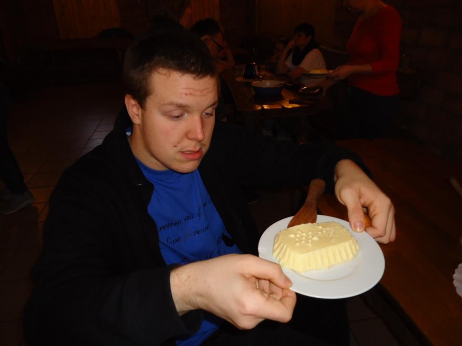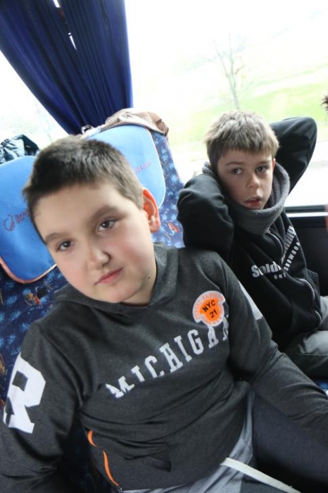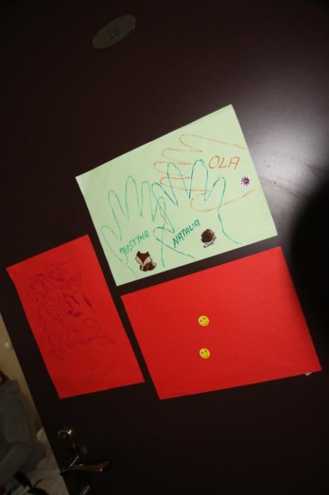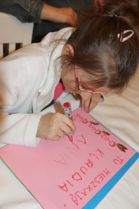 Przyszedł w końcu czas, by udać się na miejsce noclegu, gdzie czekało na nas pyszne jedzonko. Pełni sił mogliśmy potem nosić i rozpakowywać bagaże. Po popołudniowym odpoczynku była pyszna kolacyjka. Czekała też nas praca - przygotowaliśmy wizytówki na nasze pokoje, tak, by wszyscy wiedzieli kto, gdzie mieszka:) Wieczór zakończył bardzo miły akcent, szczególnie dla KUBY, który obchodził dziś swoje 11 URODZINY!!!. Był tort, gromkie "100 lat", życzenia , przygotowana przez klasę Kubu laurka, no i prezent, a także urodzinowa mini dyskoteka.