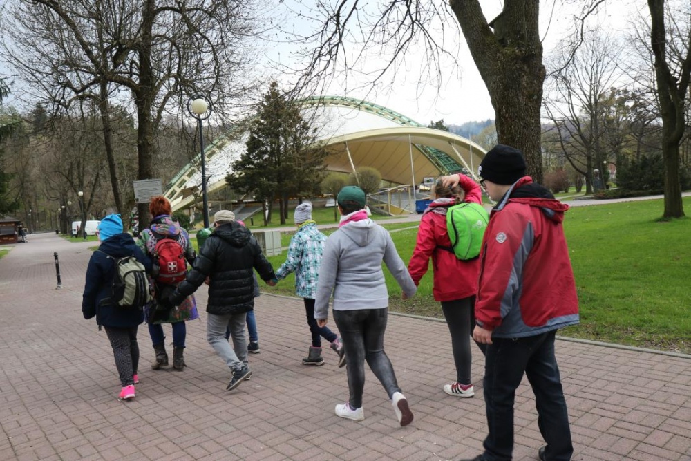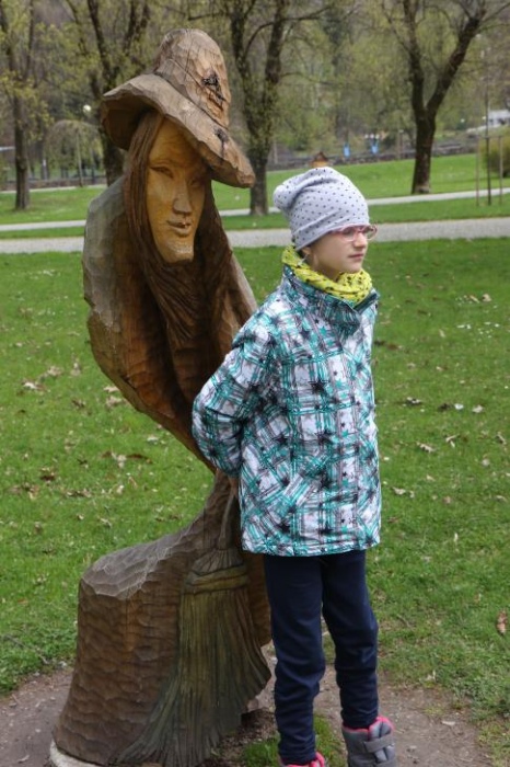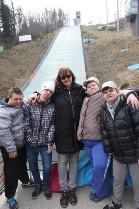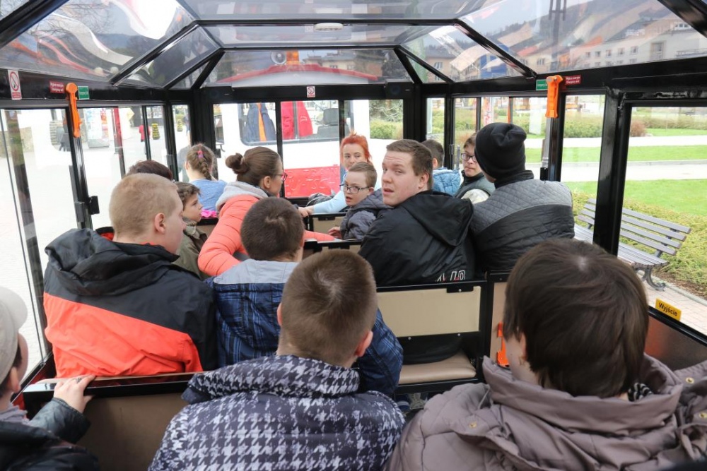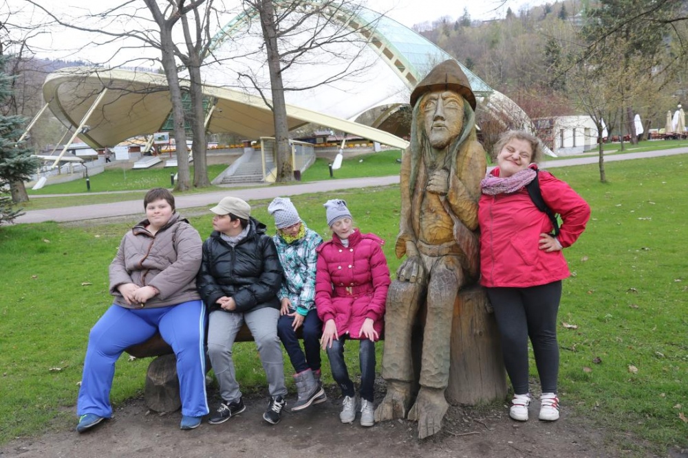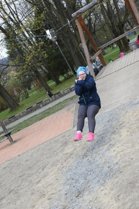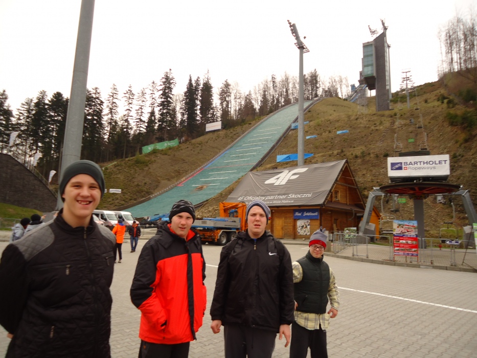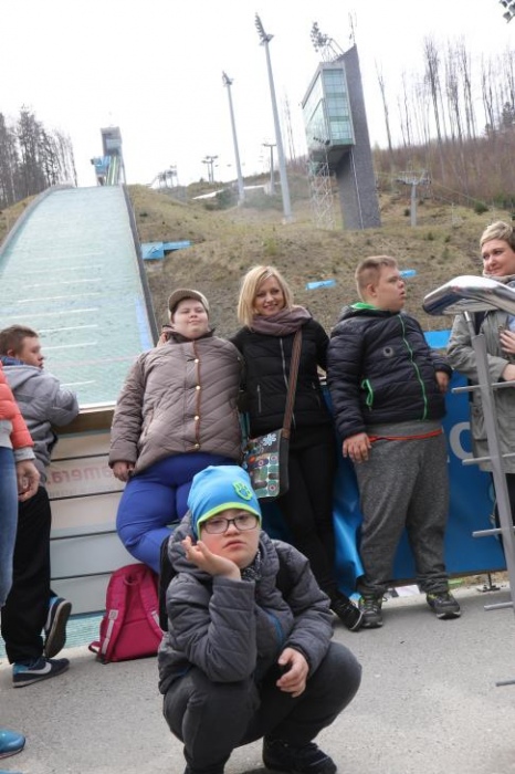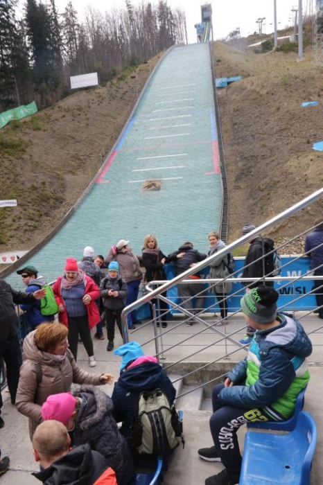 IV DZIEŃ - WTOREK - 25 kwietnia 2017r. - kolejny dzień i kolejna wycieczka. Autokarem do Wisły wybraliśmy się tuż po śniadaniu. Po przyjeździe na miejsce czekała nas następna "podróż" , bowiem Wisłę zwiedzaliśmy jadąc małą, turystyczną kolejką - CIUCHCIĄ MARTUSIĄ. Z jej perspektywy mogliśmy podziwiać wiślańską przyrodę, a także wysłuchać wielu ciekawostek o mieście. Tak upłynęła nam droga do Wisły - Malinki, gdzie była okazja by podziwiać słynną skocznię narciarską imienia Adama Małysza. Ale na tym nasza podróż się nie kończyła. Pan przewodnik - kierowca zabrał nas także do znanego Zameczku Prezydenckiego, umilając nam drogę znanymi hitami :). W obejściu zameczku był czas na odpoczynek. Mogliśmy stamtąd podziwiać uroczą panoramę na Beskidy. W pobliżu zamku był plac zabaw, co nie umknęło uwadze naszym uczniom, którzy z możliwości odpoczynku postanowili, w większości, nie korzystać:) Potem pojechaliśmy jeszcze do centrum, które zwiedzaliśmy już w podgrupach. Jedni zajrzeli do Parku "Podań i Legend", gdzie mogli sobie zrobić pamiątkowe fotki z np. z Babą Jagą., inni pognali kolejny raz na plac zabaw, natomiast łasuchy poszły na goferki;) I tak upłynął nam czas do obiadu.