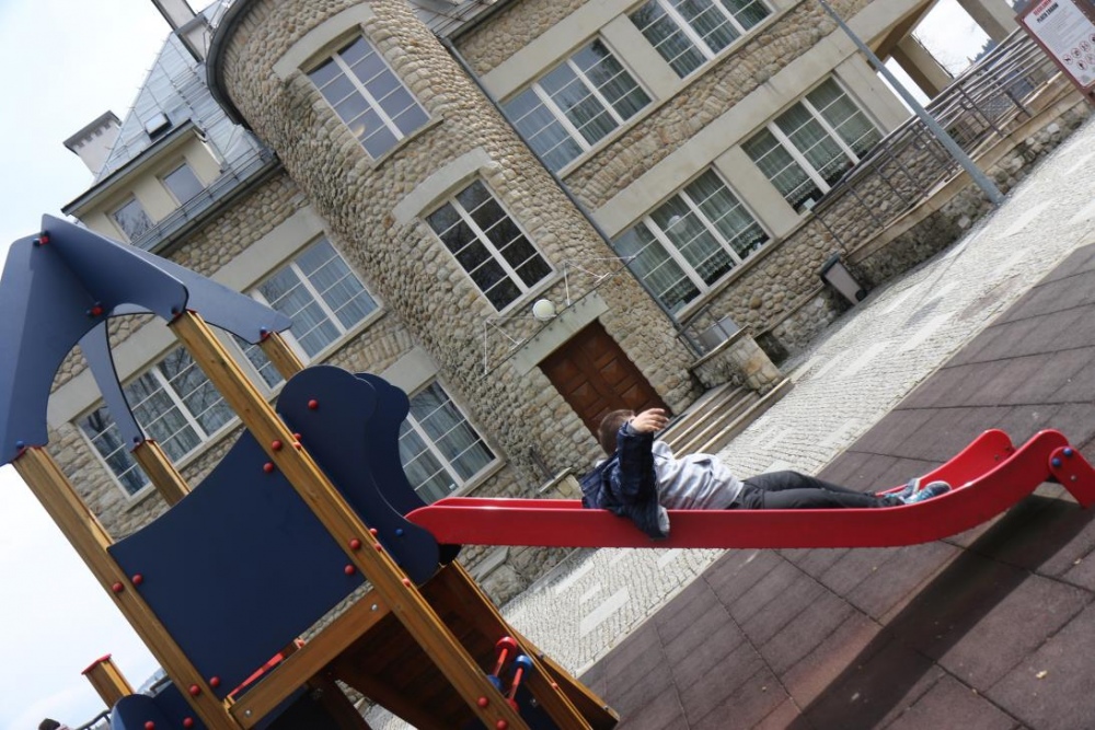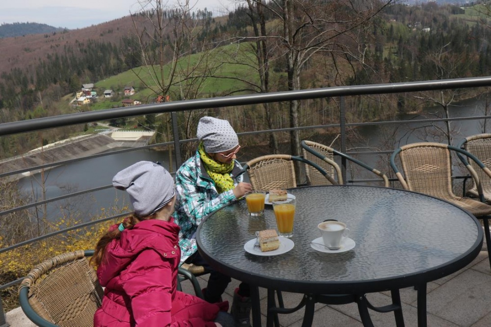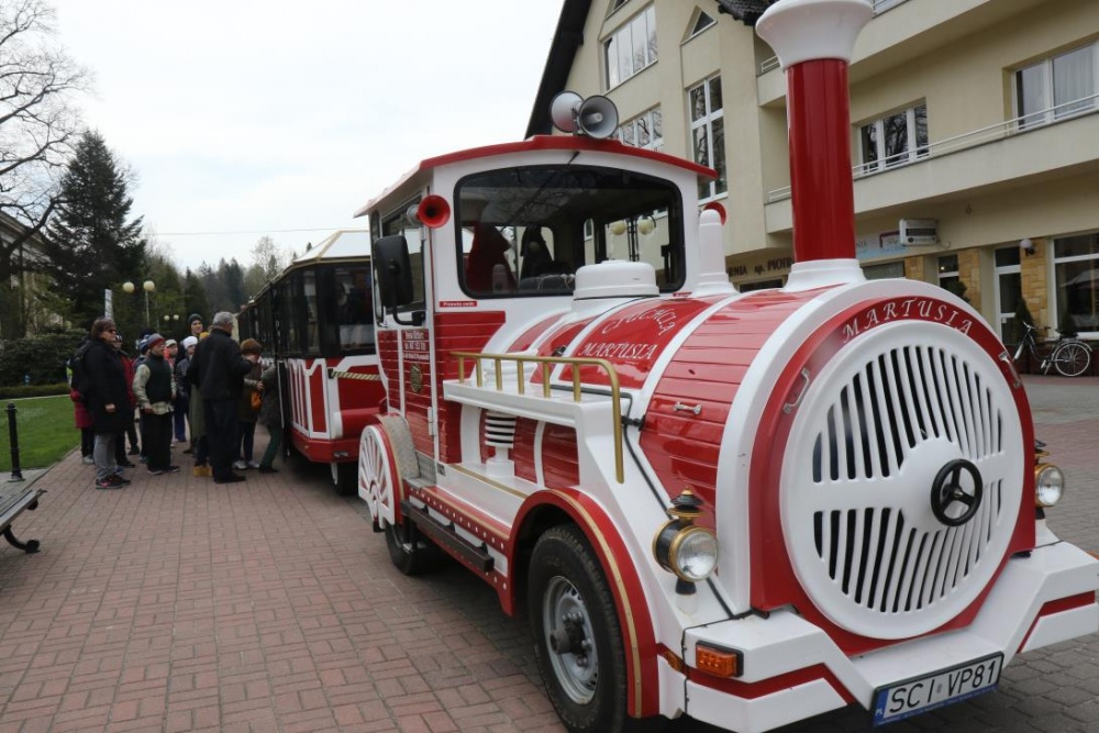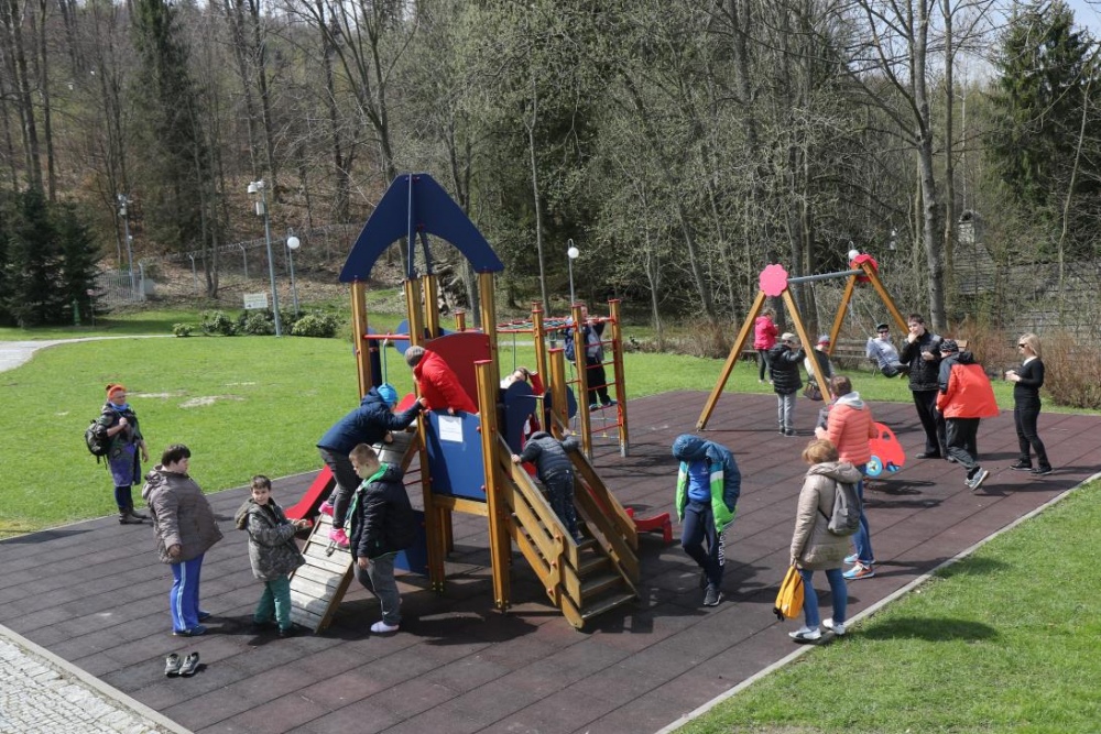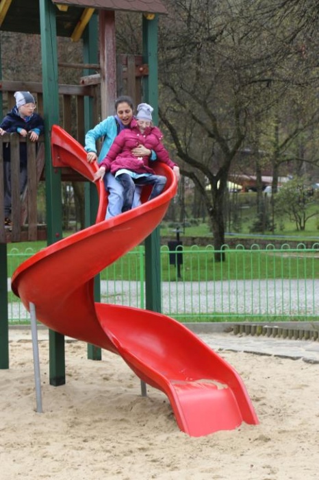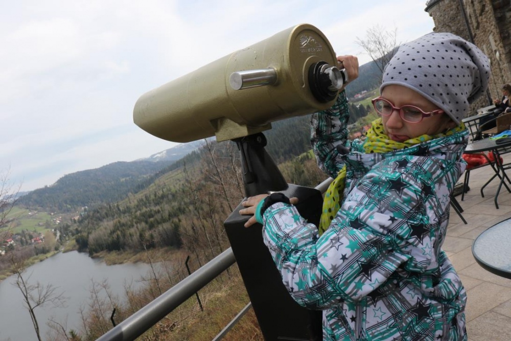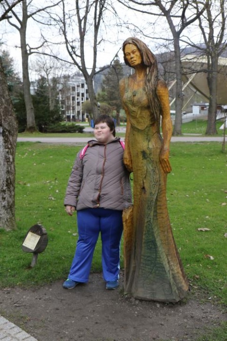 IV DZIEŃ - WTOREK - 25 kwietnia 2017r. - kolejny dzień i kolejna wycieczka. Autokarem do Wisły wybraliśmy się tuż po śniadaniu. Po przyjeździe na miejsce czekała nas następna "podróż" , bowiem Wisłę zwiedzaliśmy jadąc małą, turystyczną kolejką - CIUCHCIĄ MARTUSIĄ. Z jej perspektywy mogliśmy podziwiać wiślańską przyrodę, a także wysłuchać wielu ciekawostek o mieście. Tak upłynęła nam droga do Wisły - Malinki, gdzie była okazja by podziwiać słynną skocznię narciarską imienia Adama Małysza. Ale na tym nasza podróż się nie kończyła. Pan przewodnik - kierowca zabrał nas także do znanego Zameczku Prezydenckiego, umilając nam drogę znanymi hitami :). W obejściu zameczku był czas na odpoczynek. Mogliśmy stamtąd podziwiać uroczą panoramę na Beskidy. W pobliżu zamku był plac zabaw, co nie umknęło uwadze naszym uczniom, którzy z możliwości odpoczynku postanowili, w większości, nie korzystać:) Potem pojechaliśmy jeszcze do centrum, które zwiedzaliśmy już w podgrupach. Jedni zajrzeli do Parku "Podań i Legend", gdzie mogli sobie zrobić pamiątkowe fotki z np. z Babą Jagą., inni pognali kolejny raz na plac zabaw, natomiast łasuchy poszły na goferki;) I tak upłynął nam czas do obiadu.