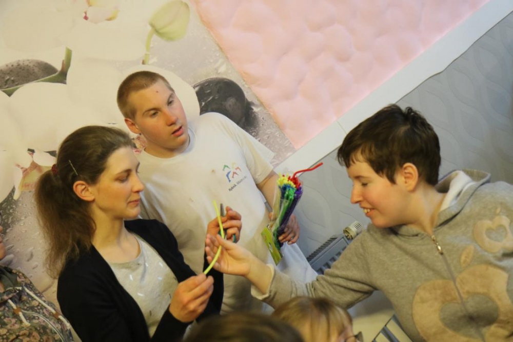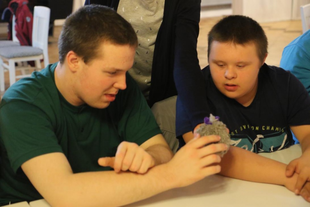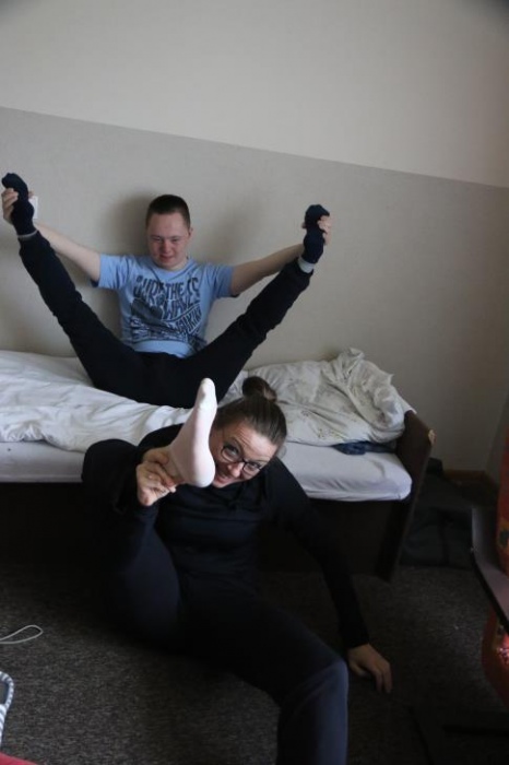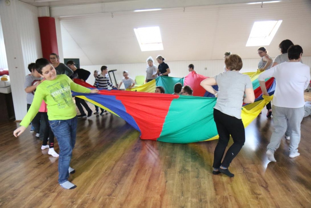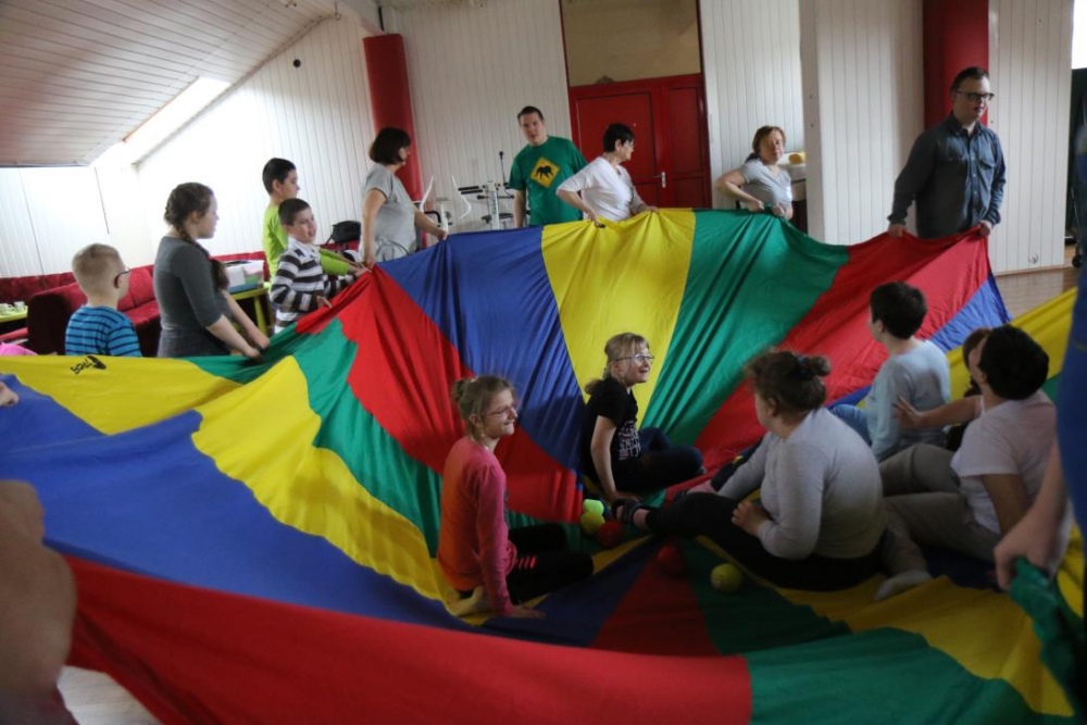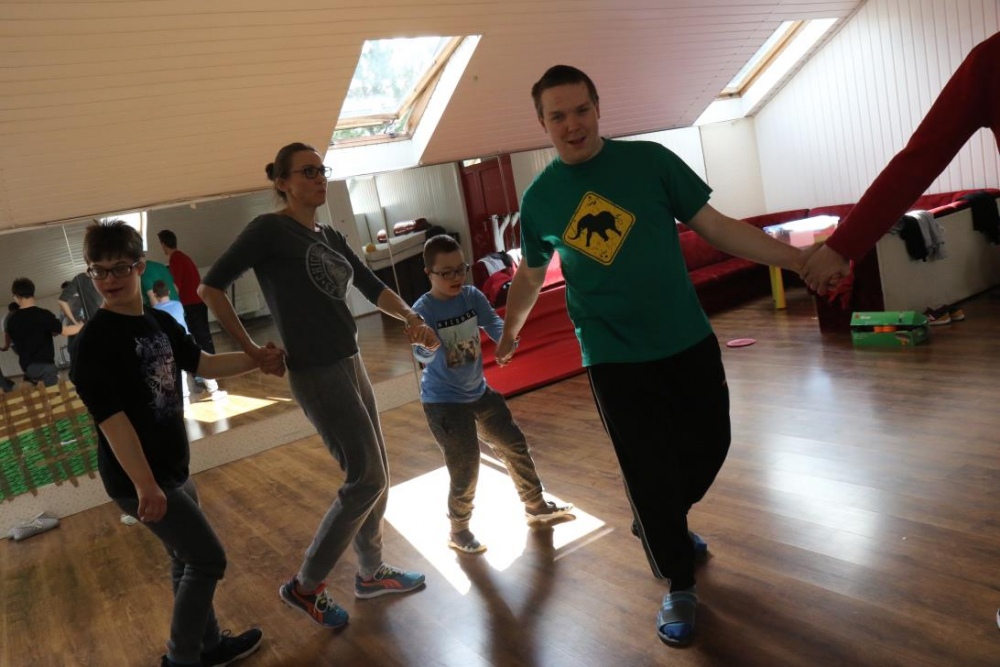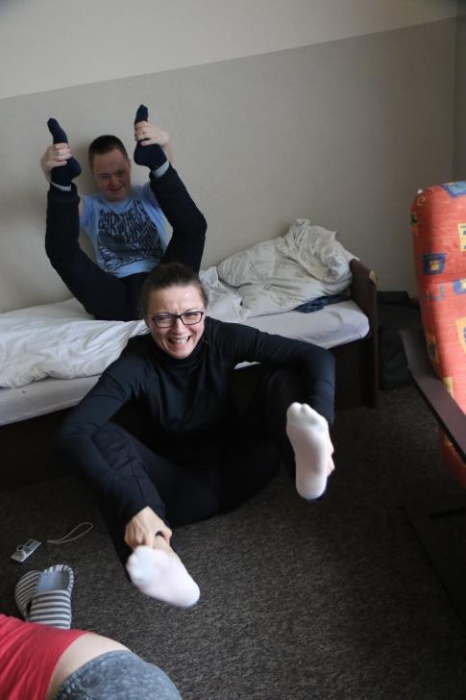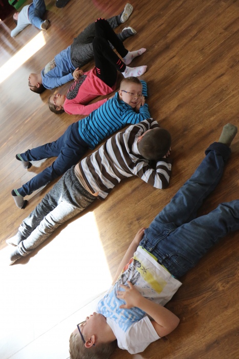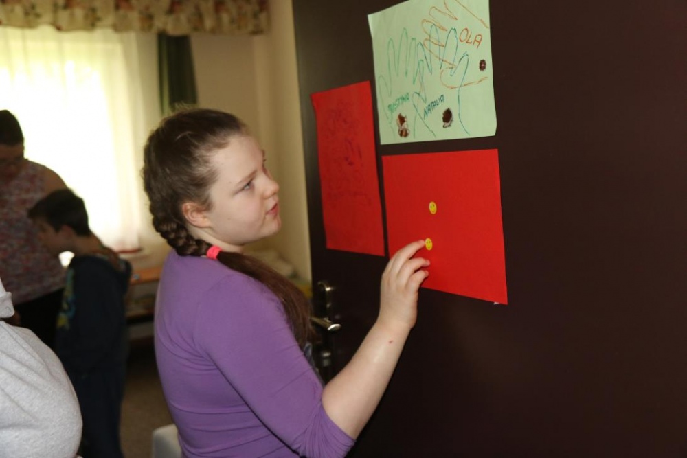 II DZIEŃ - NIEDZIELA - 23 kwietnia 2017r. - to pierwsza poranna pobudka, poranna toaleta, porządki, bo po śniadaniu czekała wszystkich kontrola czystości w pokojach:) Było więc składanie ubrań, ścielenie łóżek, wszystko po to być zdobyć '"uśmiechniętą buźkę". Tego dnia cała ekipa wzięła udział w niedzielnej mszy świętej w pobliskim kościele. Poznawaliśmy też otoczenie i najbliższą okolicę ośrodka podczas spacerów indywidualnych oraz grupowych. Nasi uczniowie mieli też po raz pierwszy możliwość skorzystania z sali gimnastycznej ośrodka, gdzie odbyły się zajęcia muzyczno - ruchowe. Były piosenki z gestami MAKATON oraz nienudzące się naszym uczniom aktywności z chustą KLAZNY. Kilkoro uczniów postanowiło popracować nad kondycją i sylwetką z wykorzystaniem sprzętów fitness. Zajęcia zakończył relaks, a także możliwość ekspresji plastycznej.